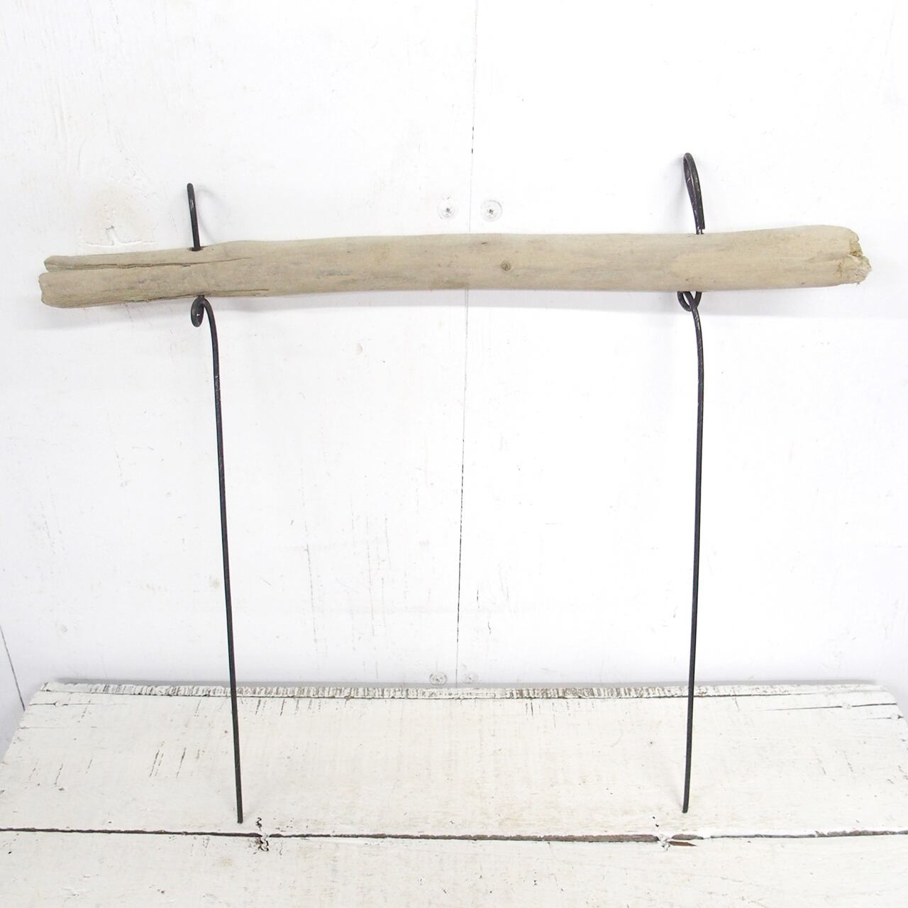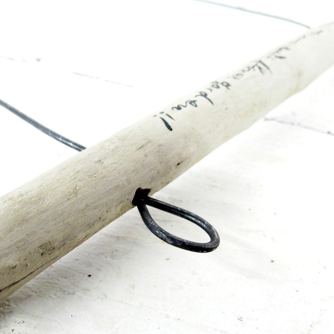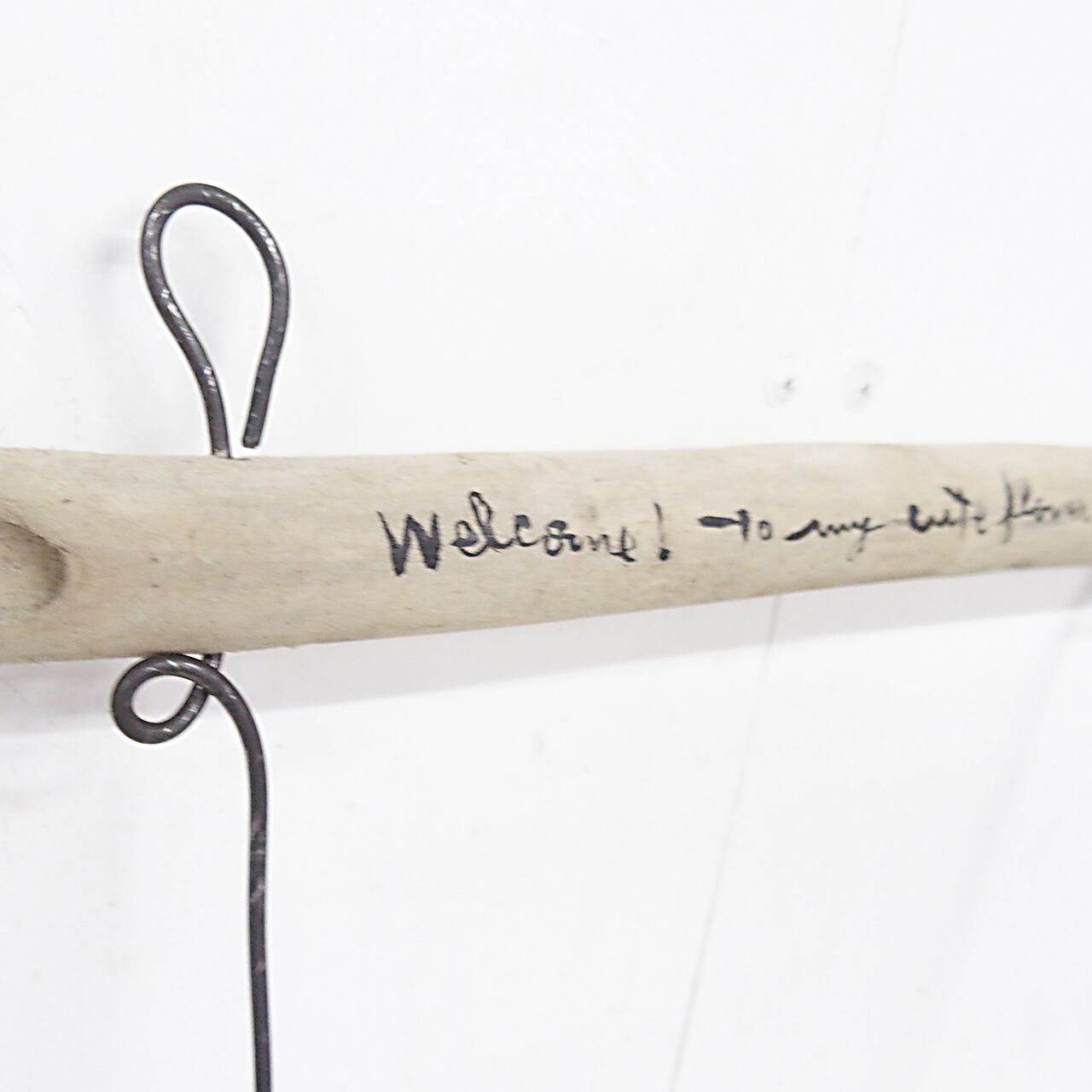 流木に文字を入れ太目の針金を差し込んだ