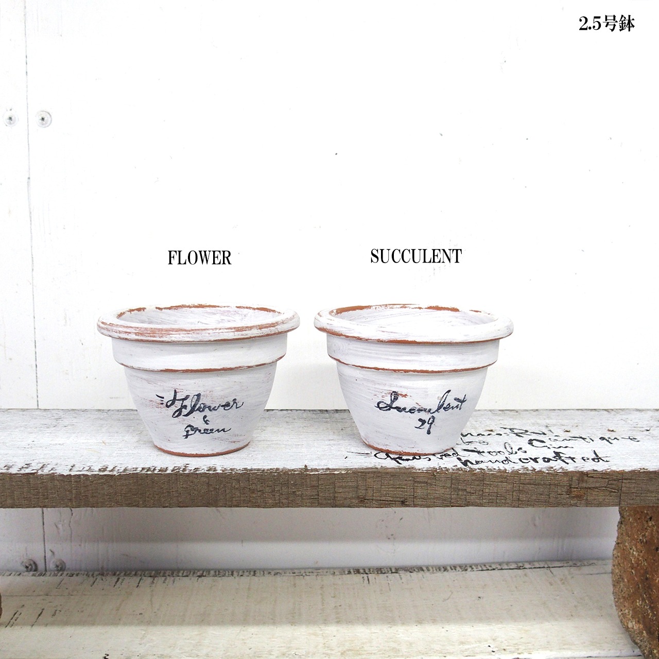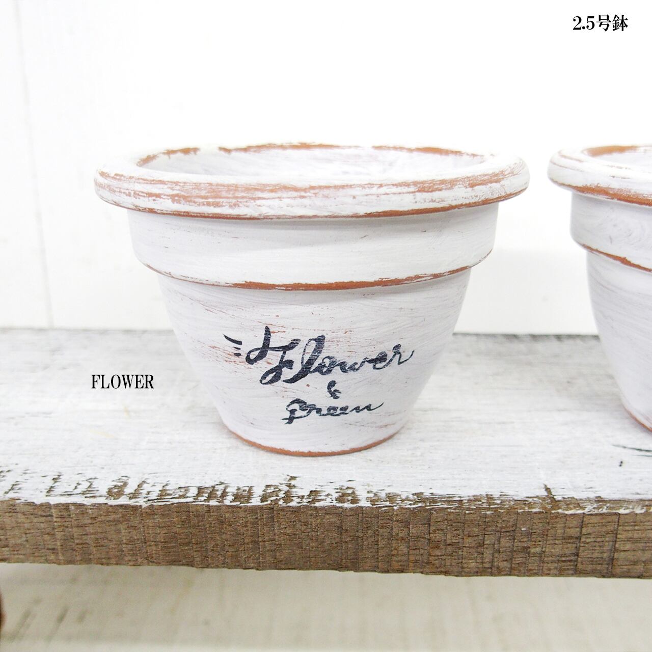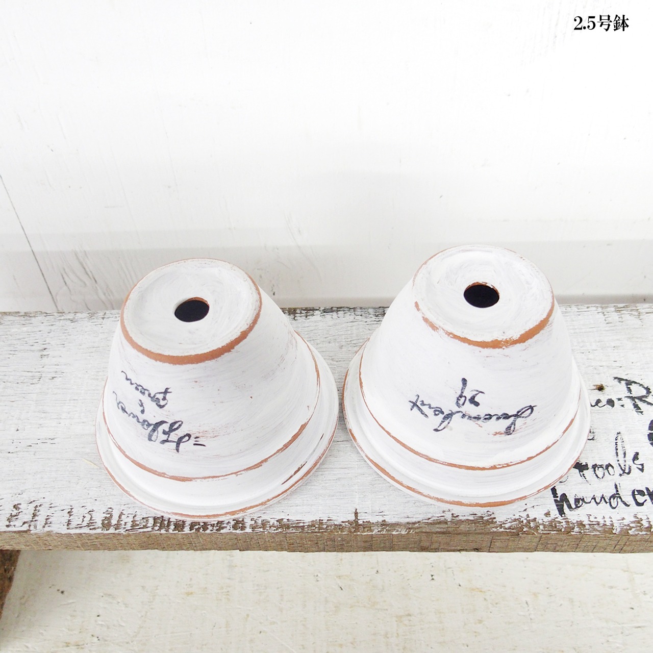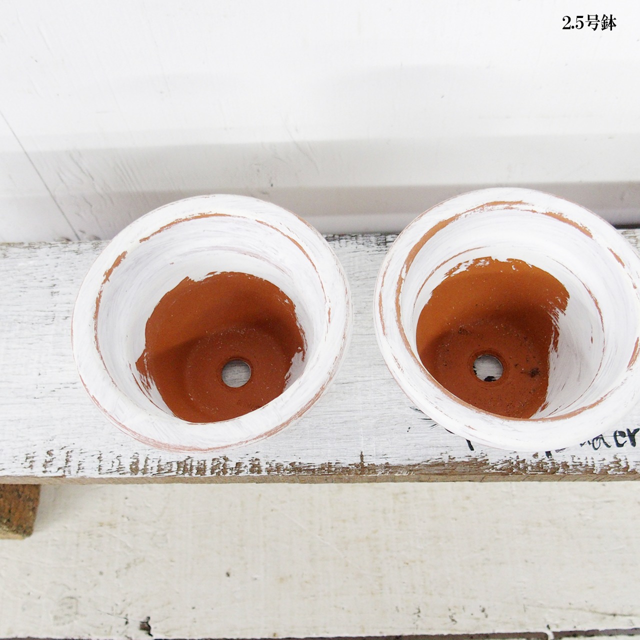 可愛い小さな鉢をホワイトのシャビー塗装で