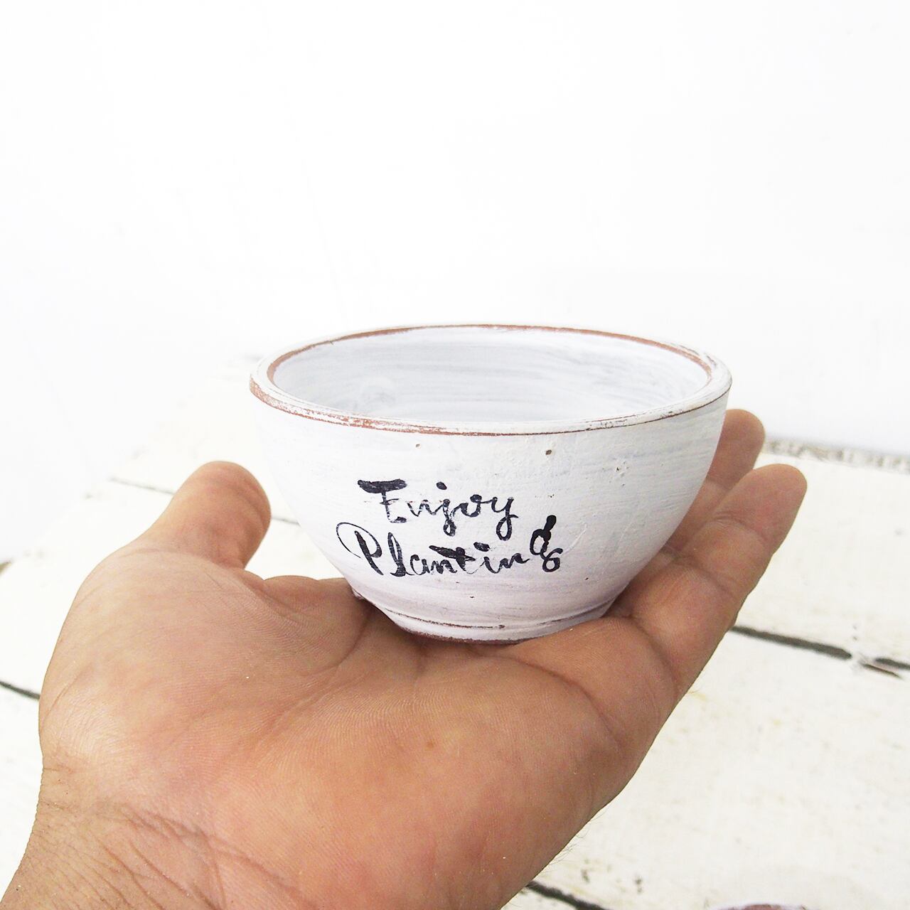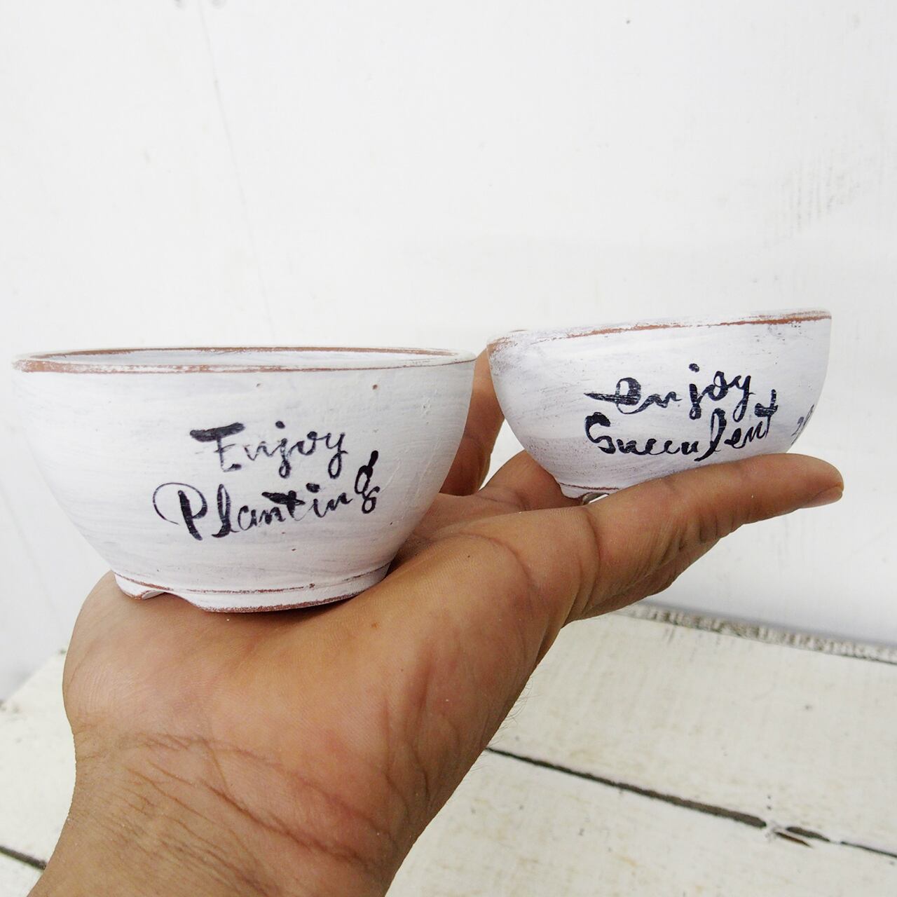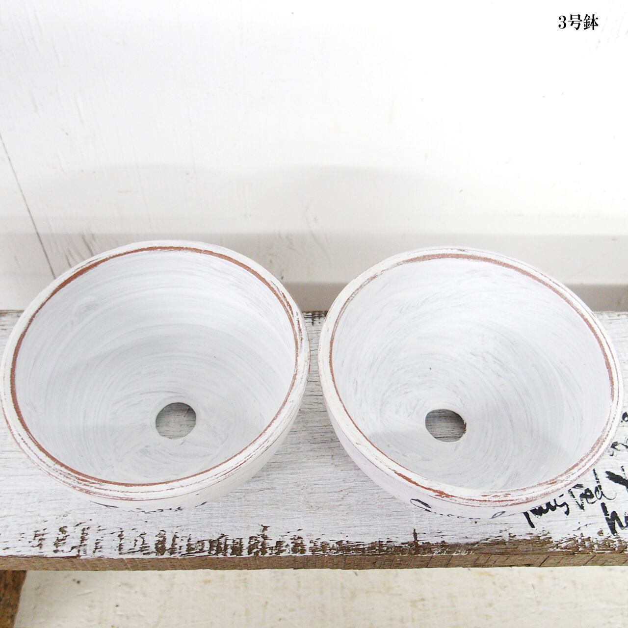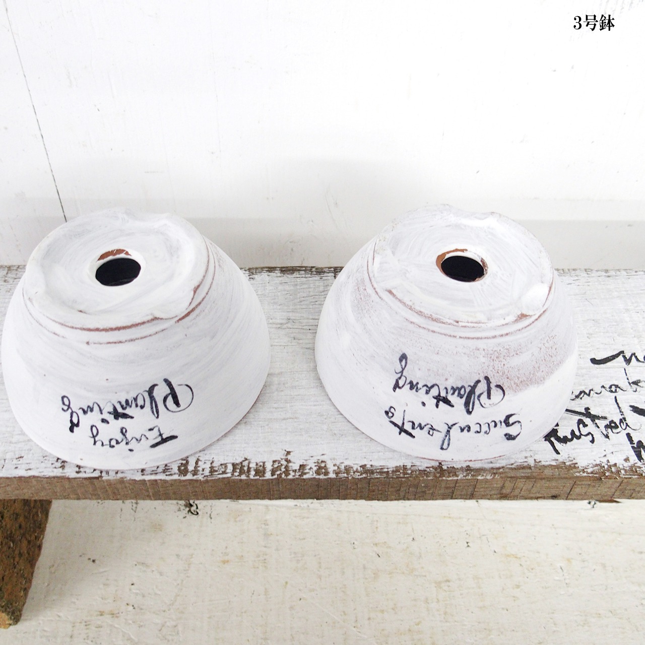 可愛い小さな鉢をホワイトのシャビー塗装で