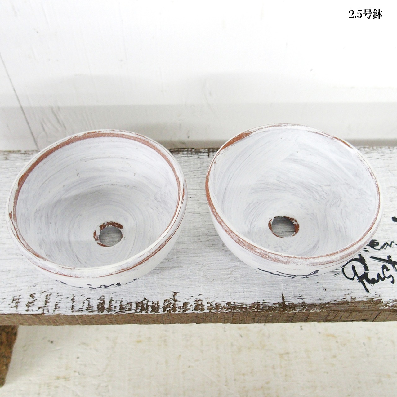 可愛い小さな鉢をホワイトのシャビー塗装で