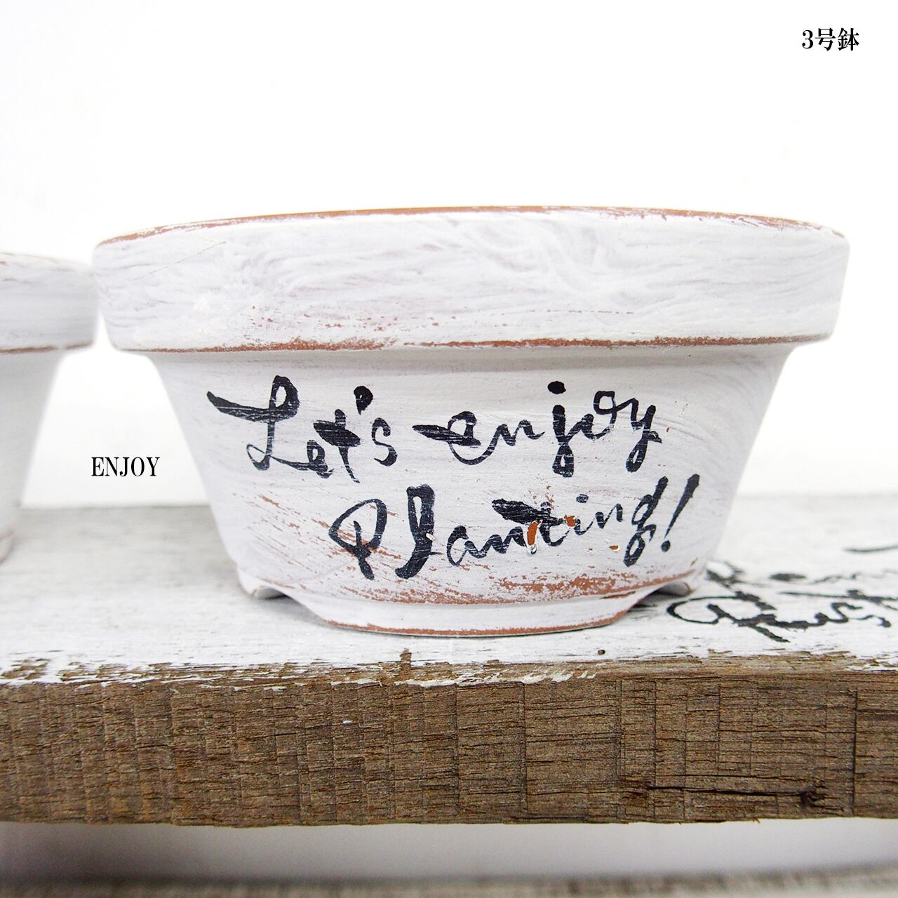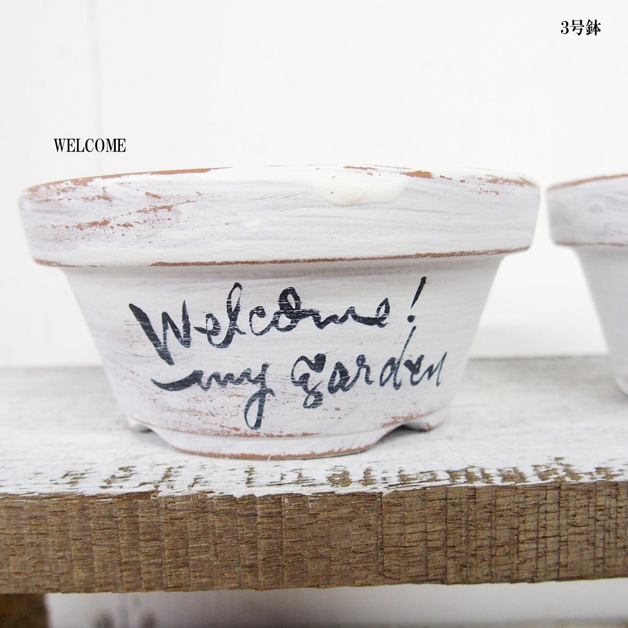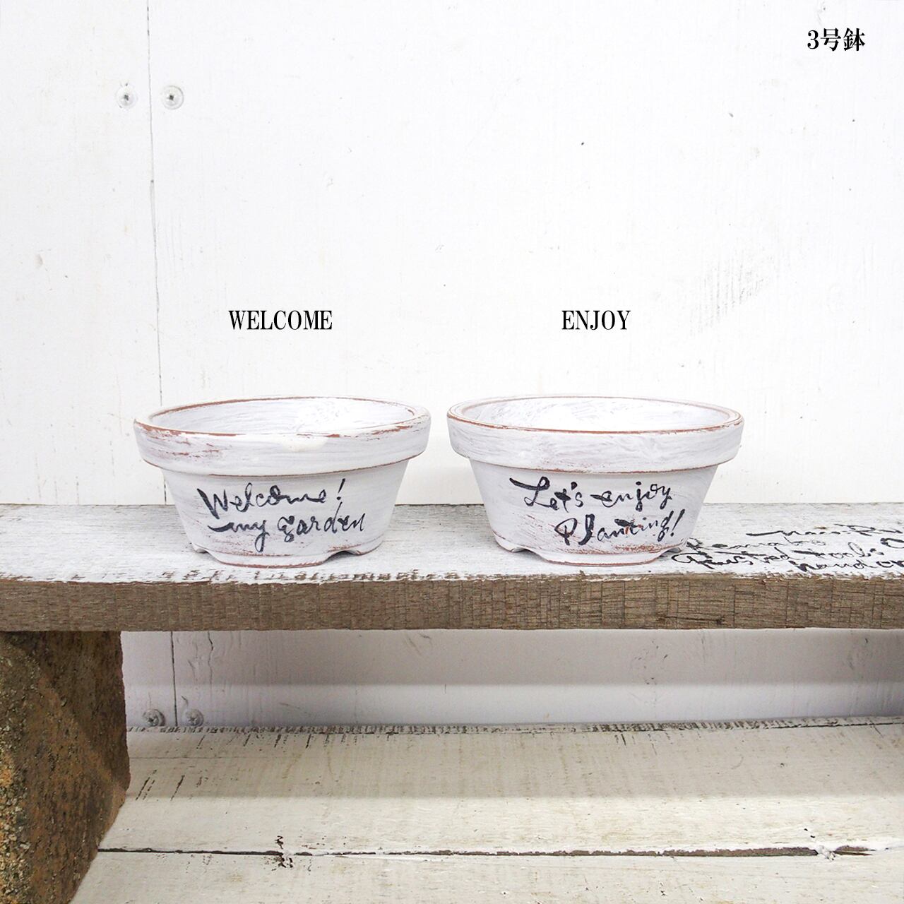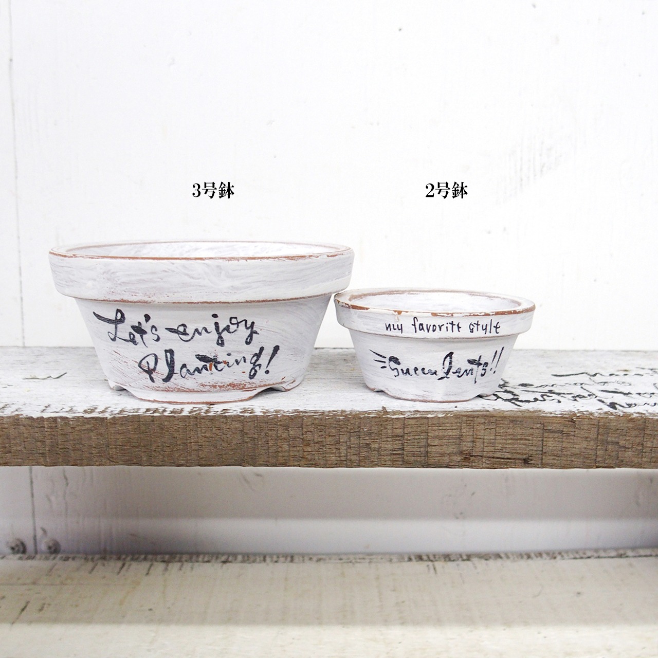 可愛い小さな鉢をホワイトのシャビー塗装で