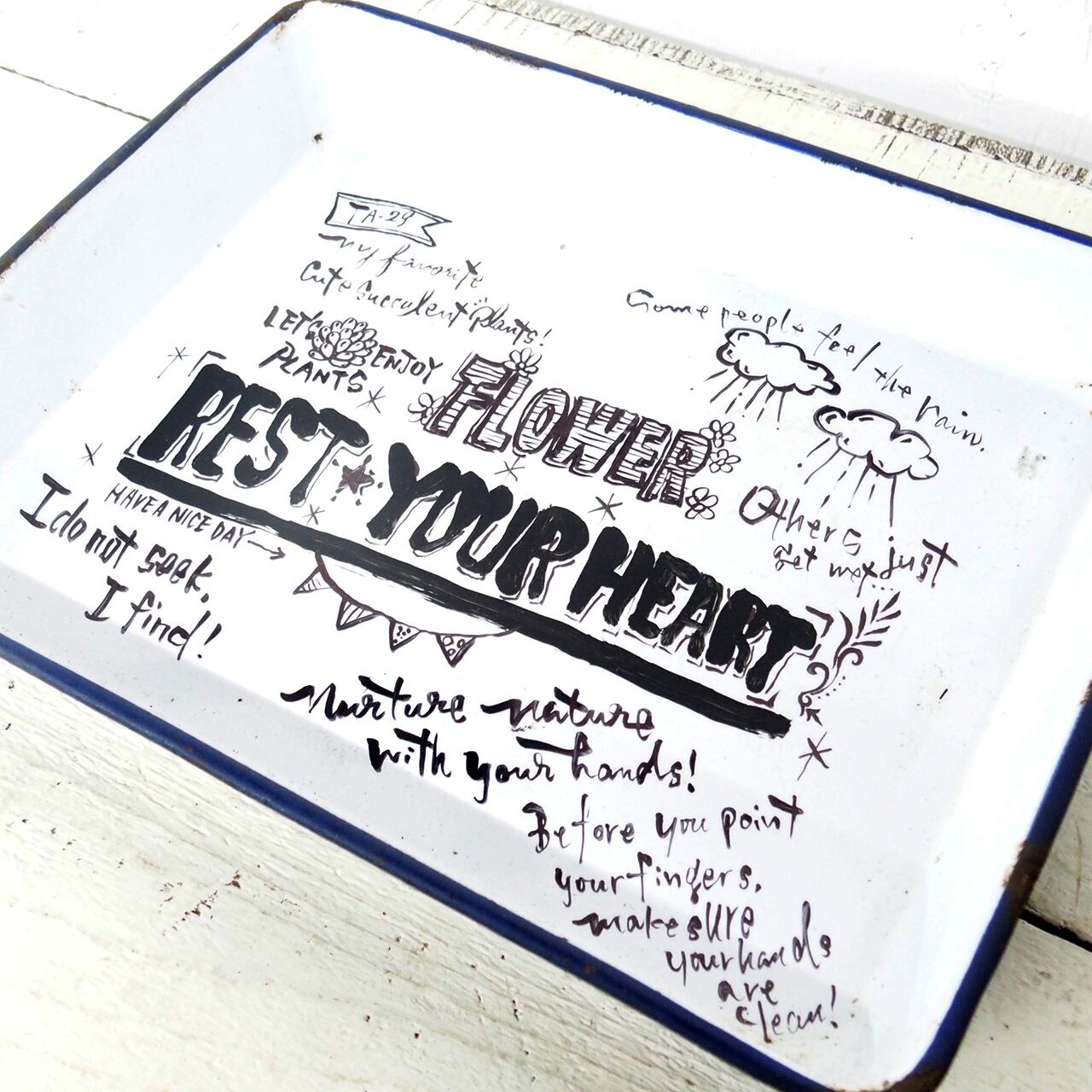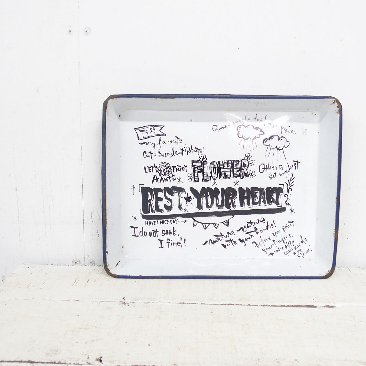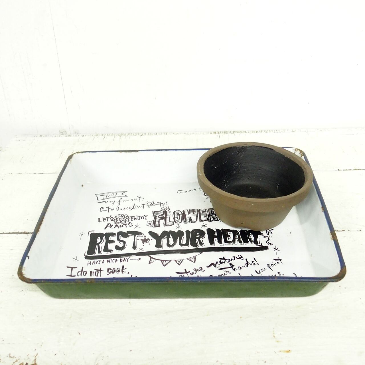 ホーローのバットに文字を入れたアレンジ作品です♪