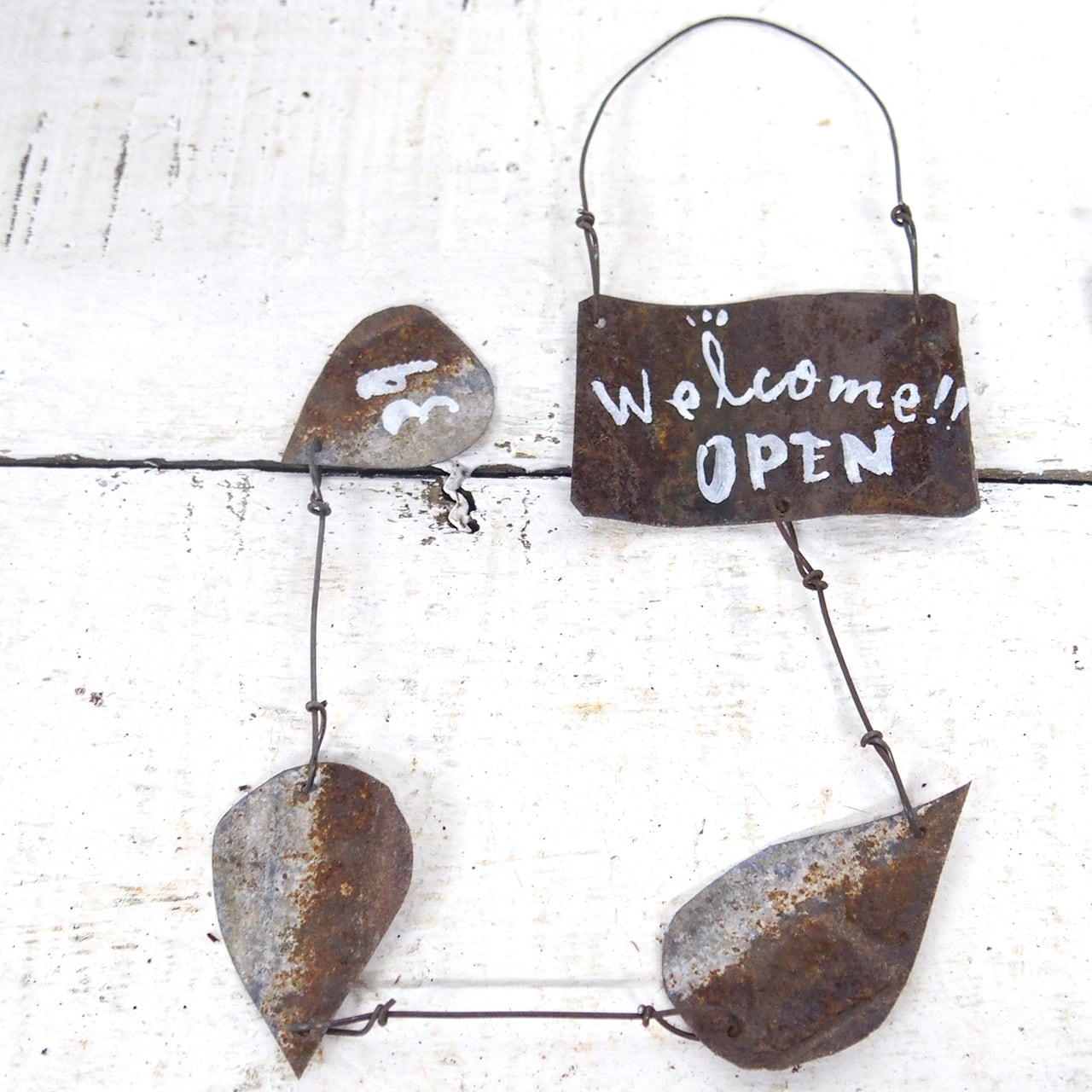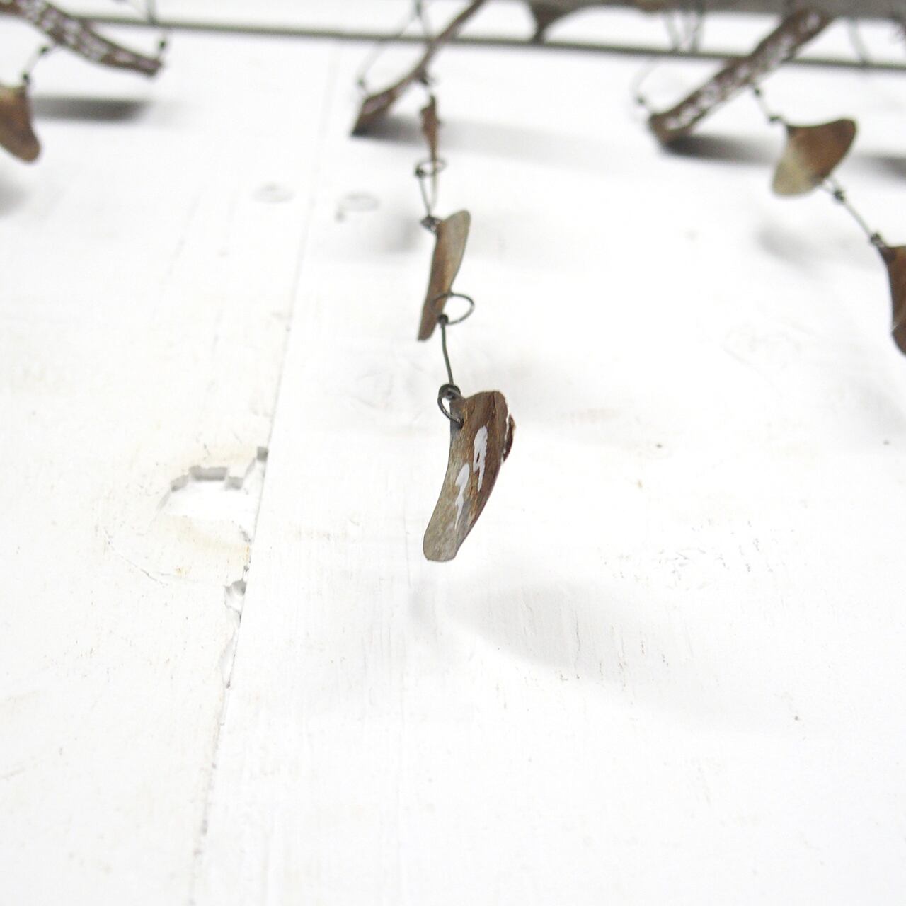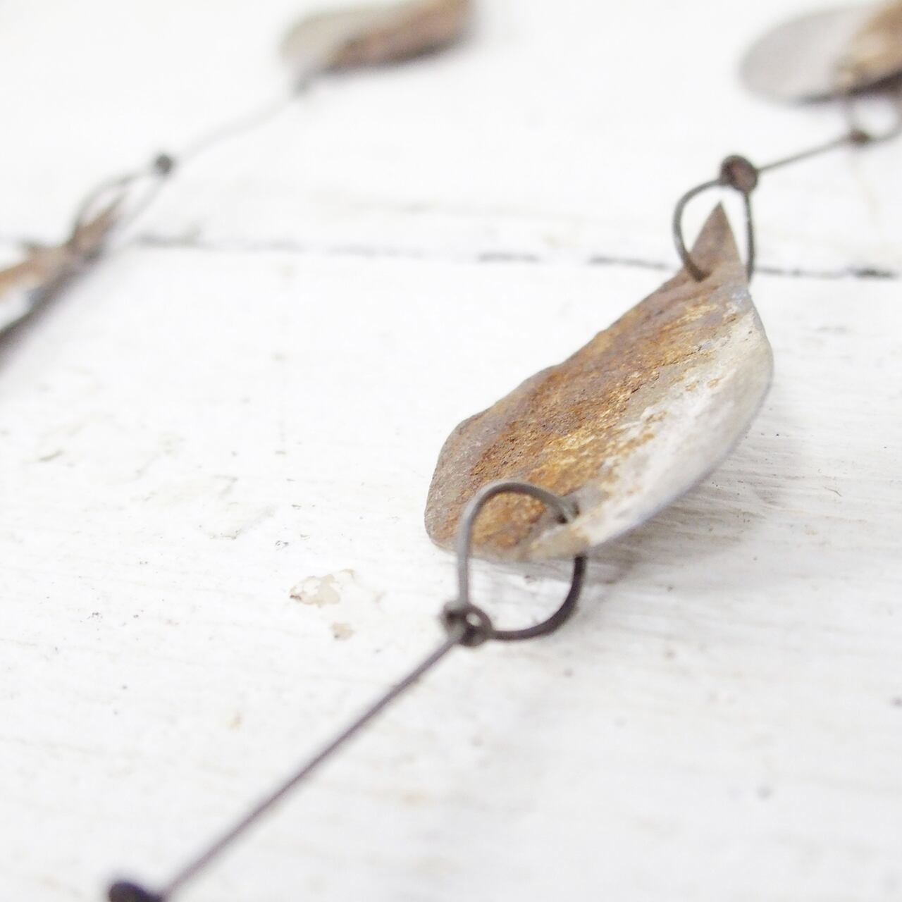 サビサビのブリキを雫型に切り取って繋げた
