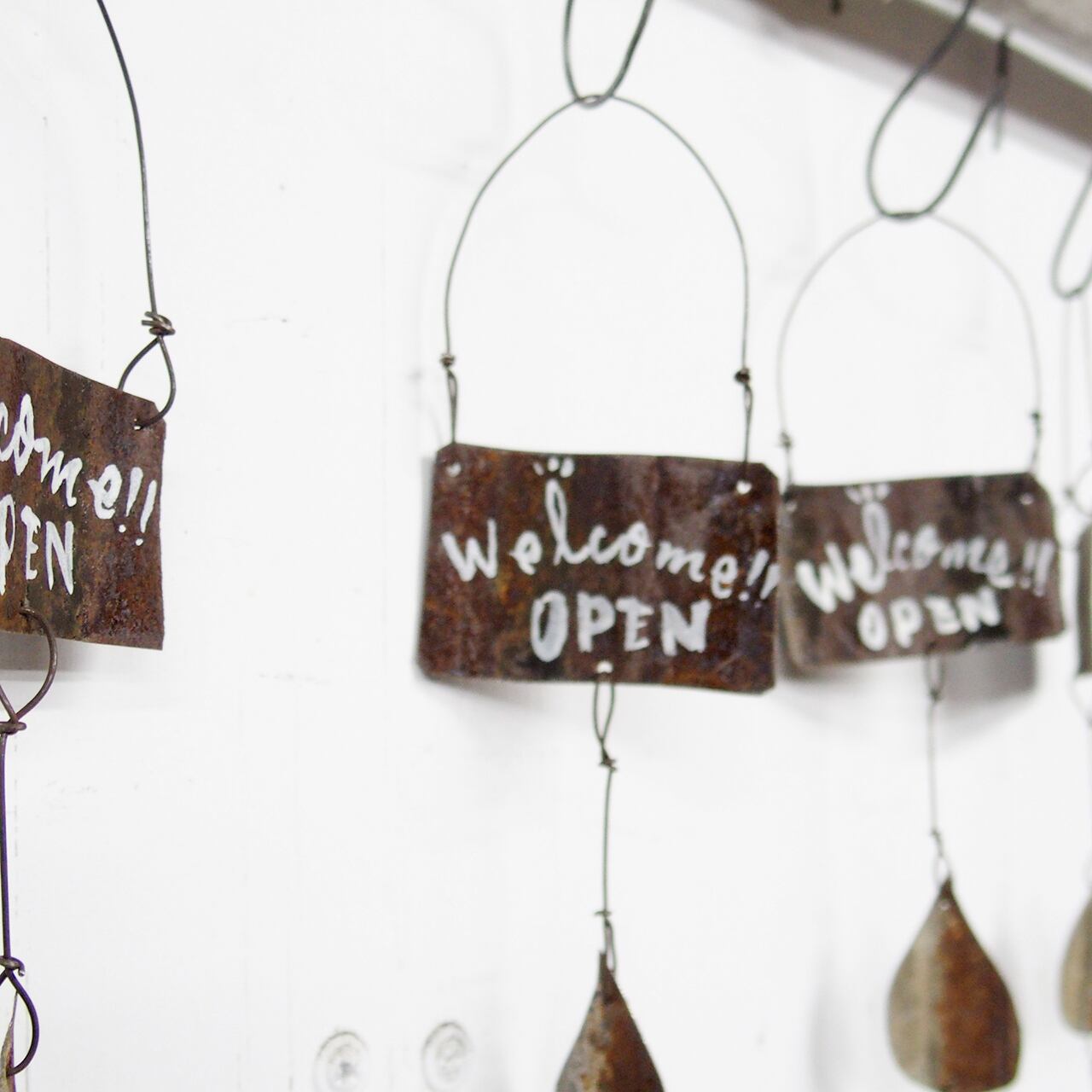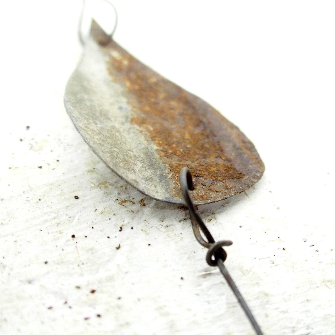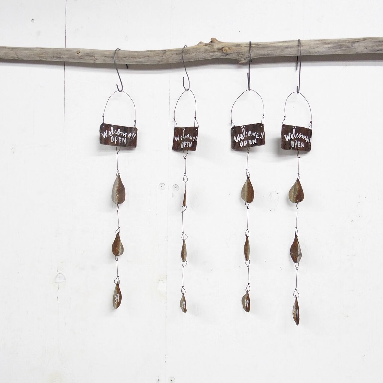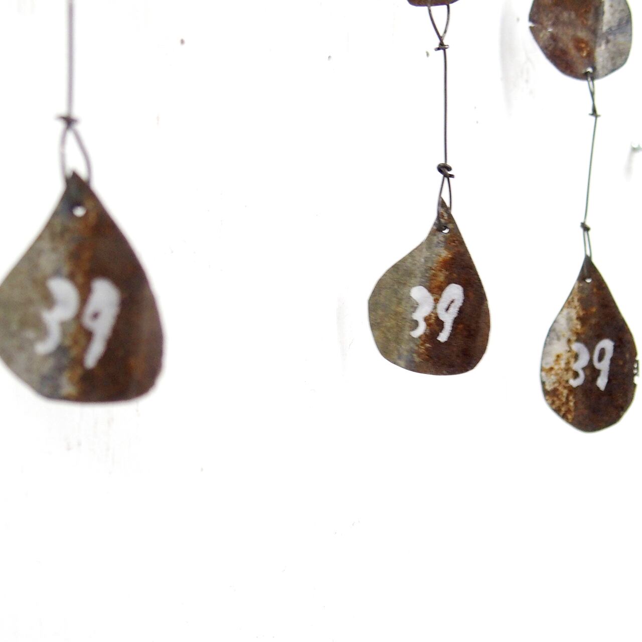 サビサビのブリキを雫型に切り取って繋げた