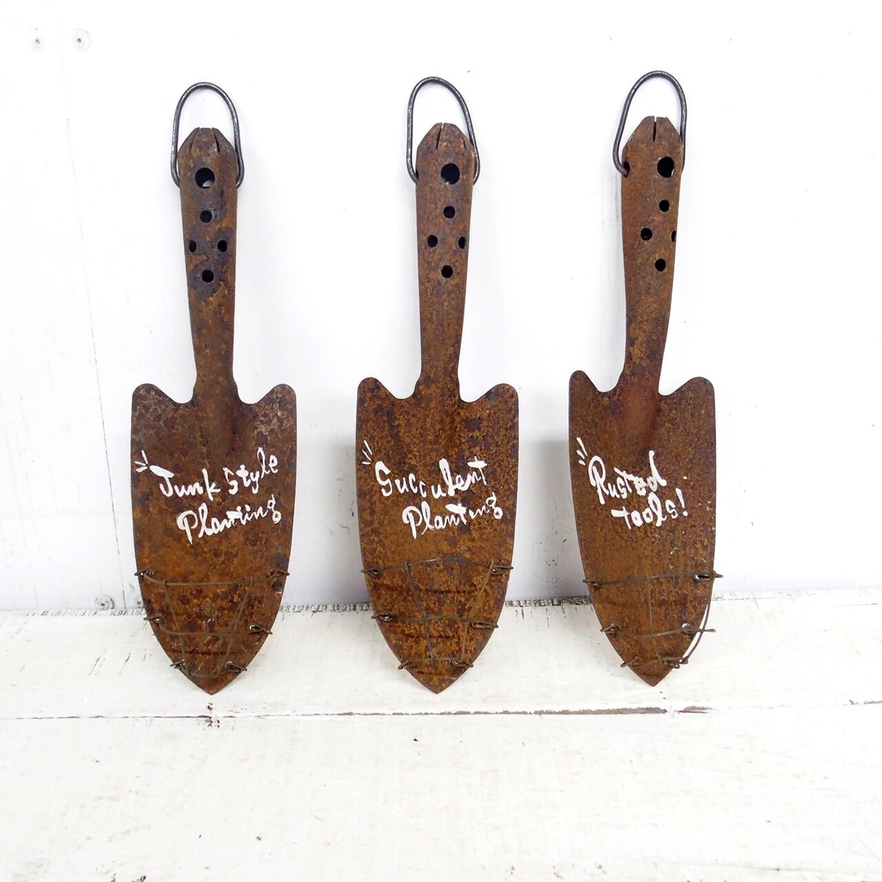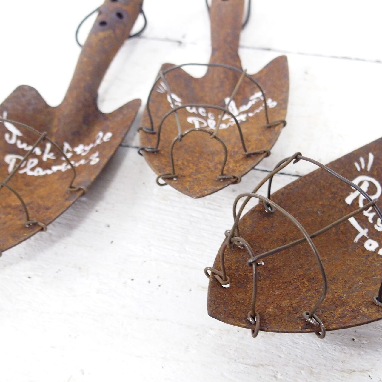 サビサビの移植ごて(小さなスコップ)にワイヤーでバスケットを作ってみました♪