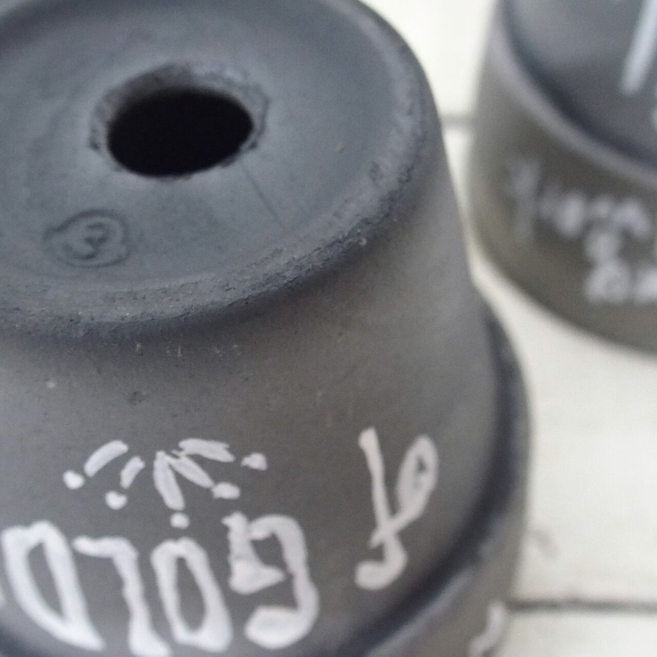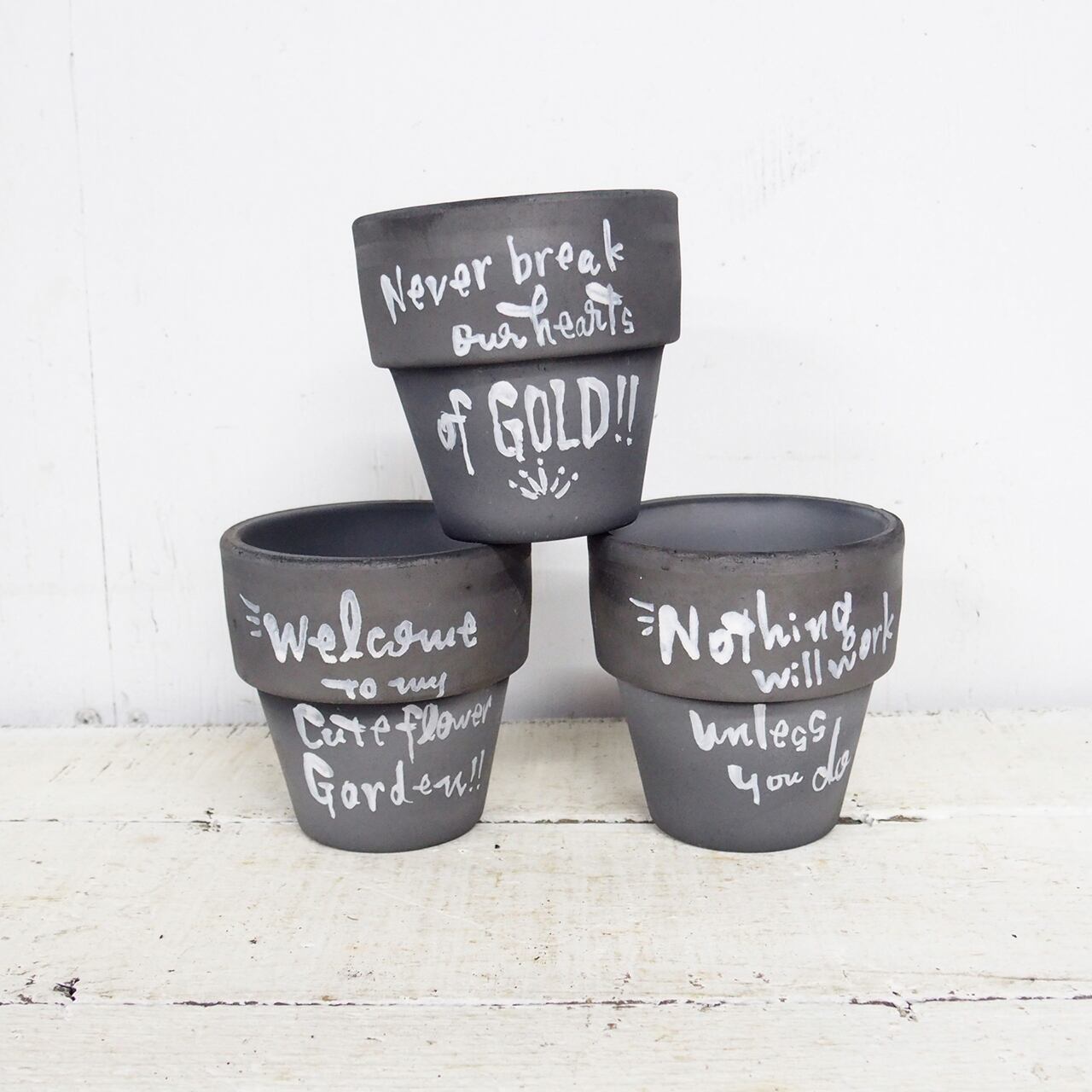 リムの太い可愛い鉢に文字を入れたアレンジ鉢です♪