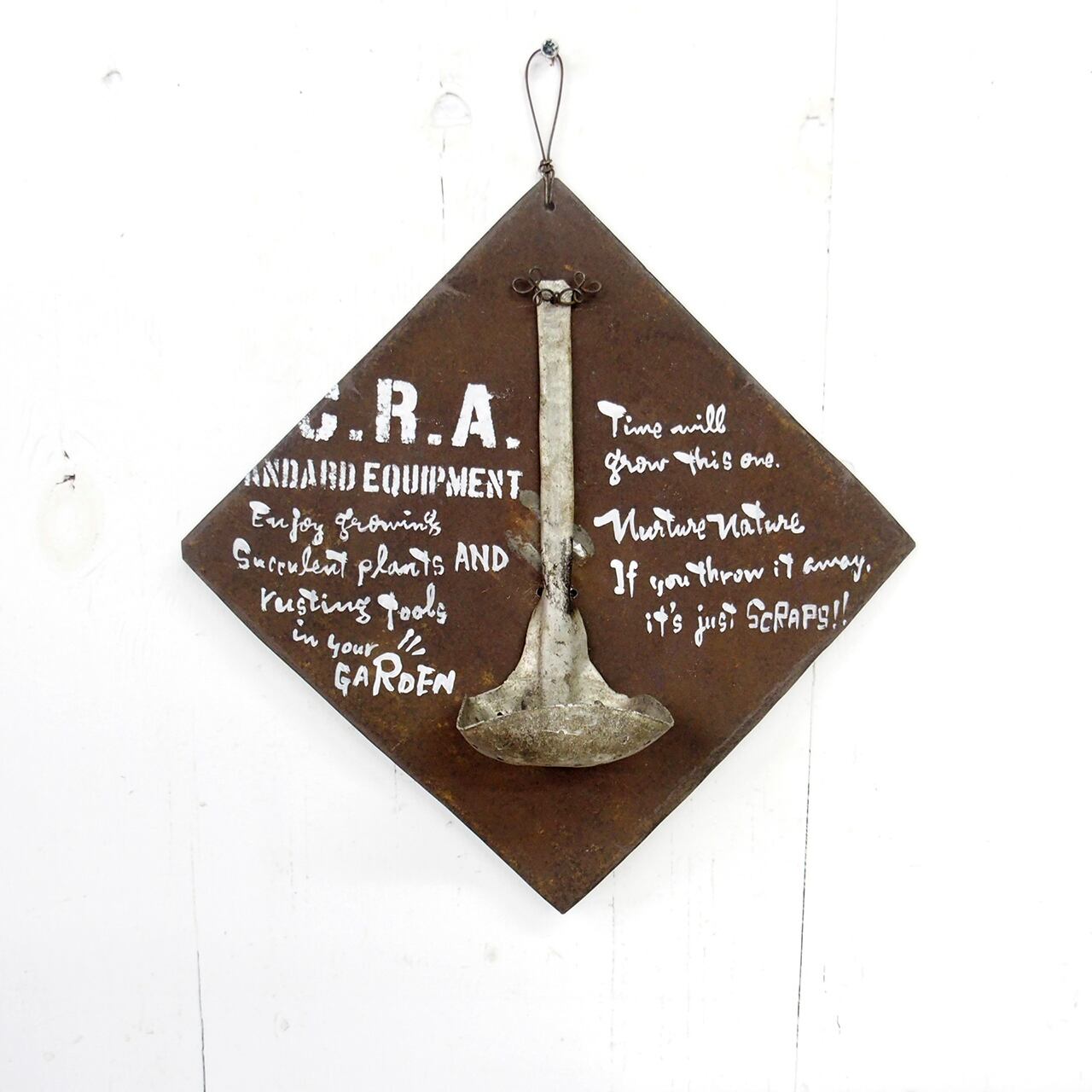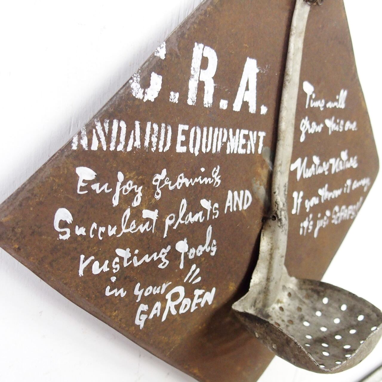 【リメイク古道具】あく取りおたまプランター付き四角サイン