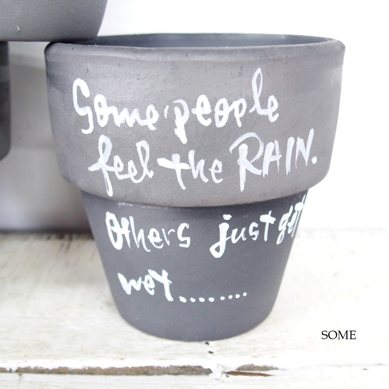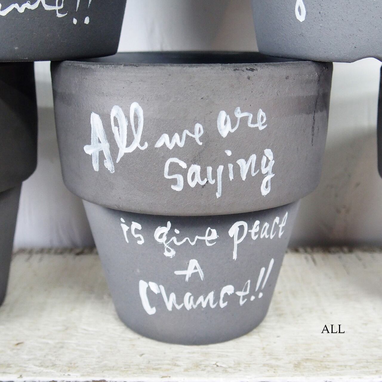 リムの太い可愛い鉢に文字を入れたアレンジ鉢です♪