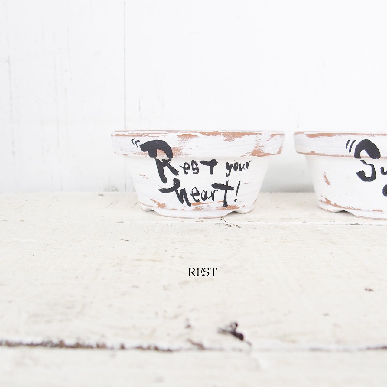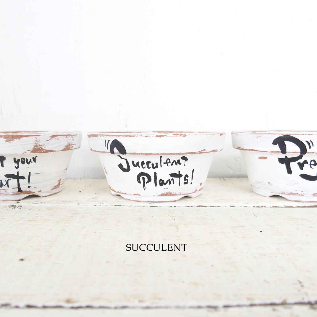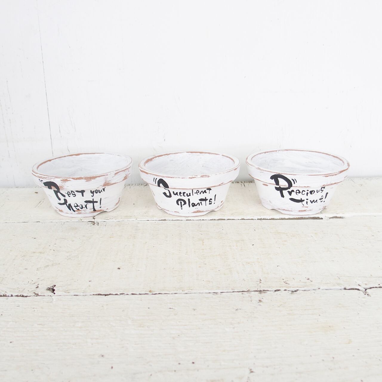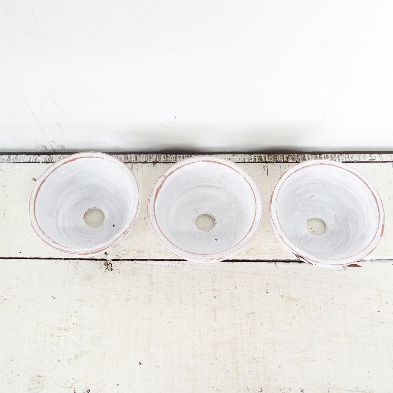可愛い小さな鉢をホワイトのシャビー塗装で