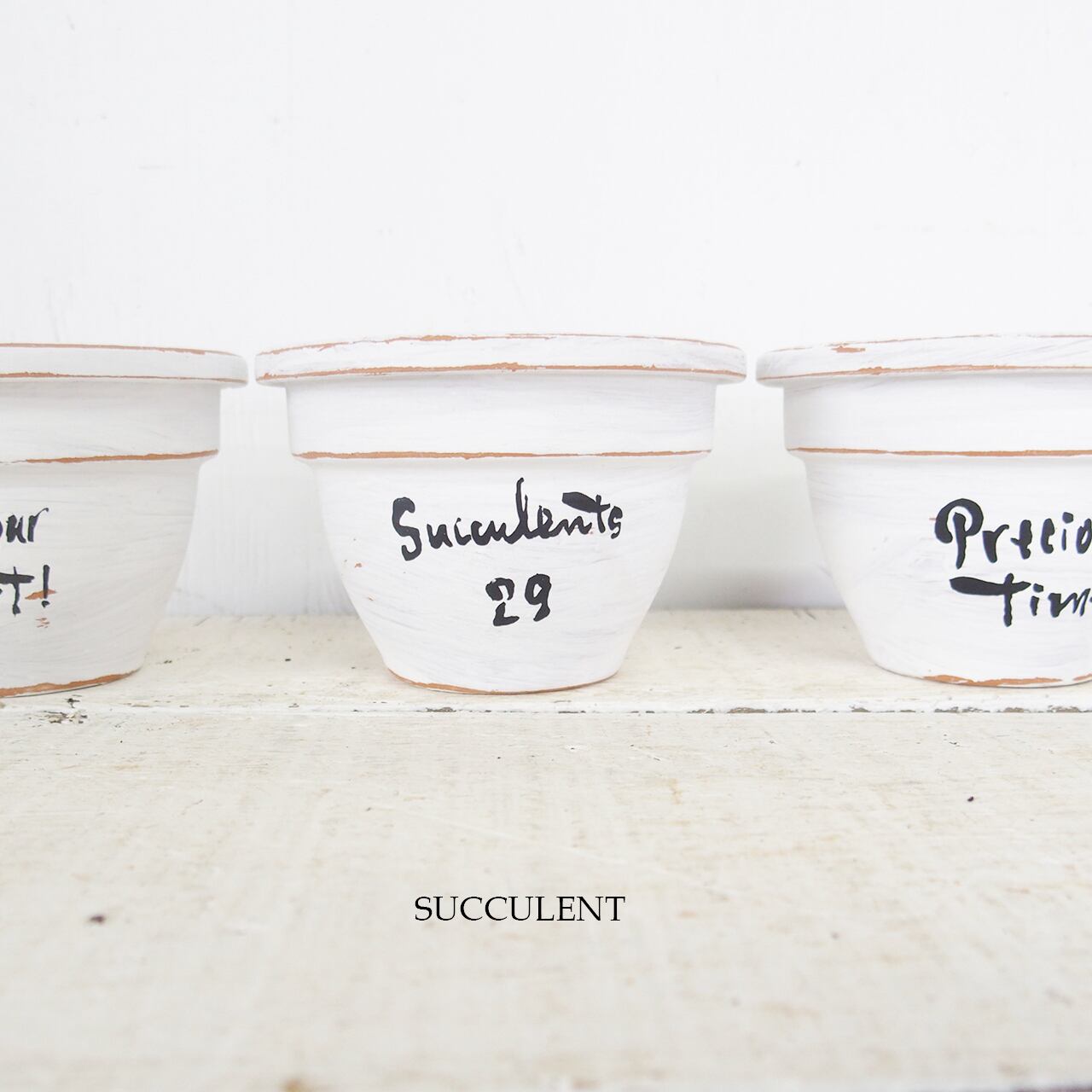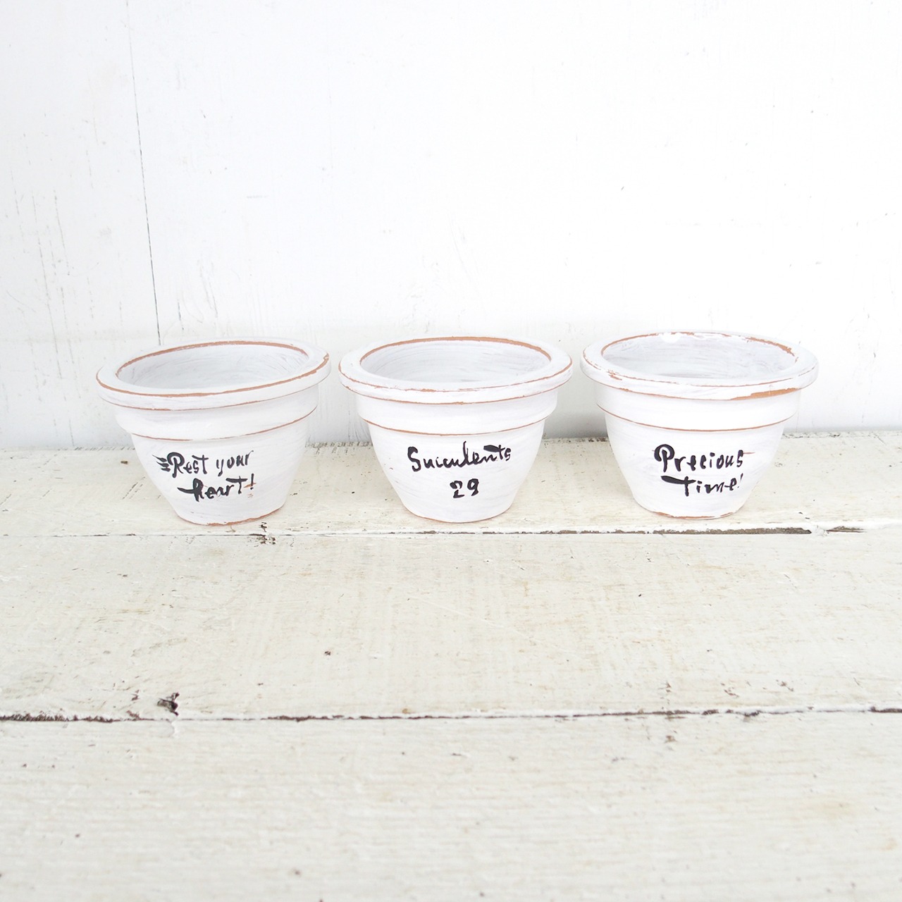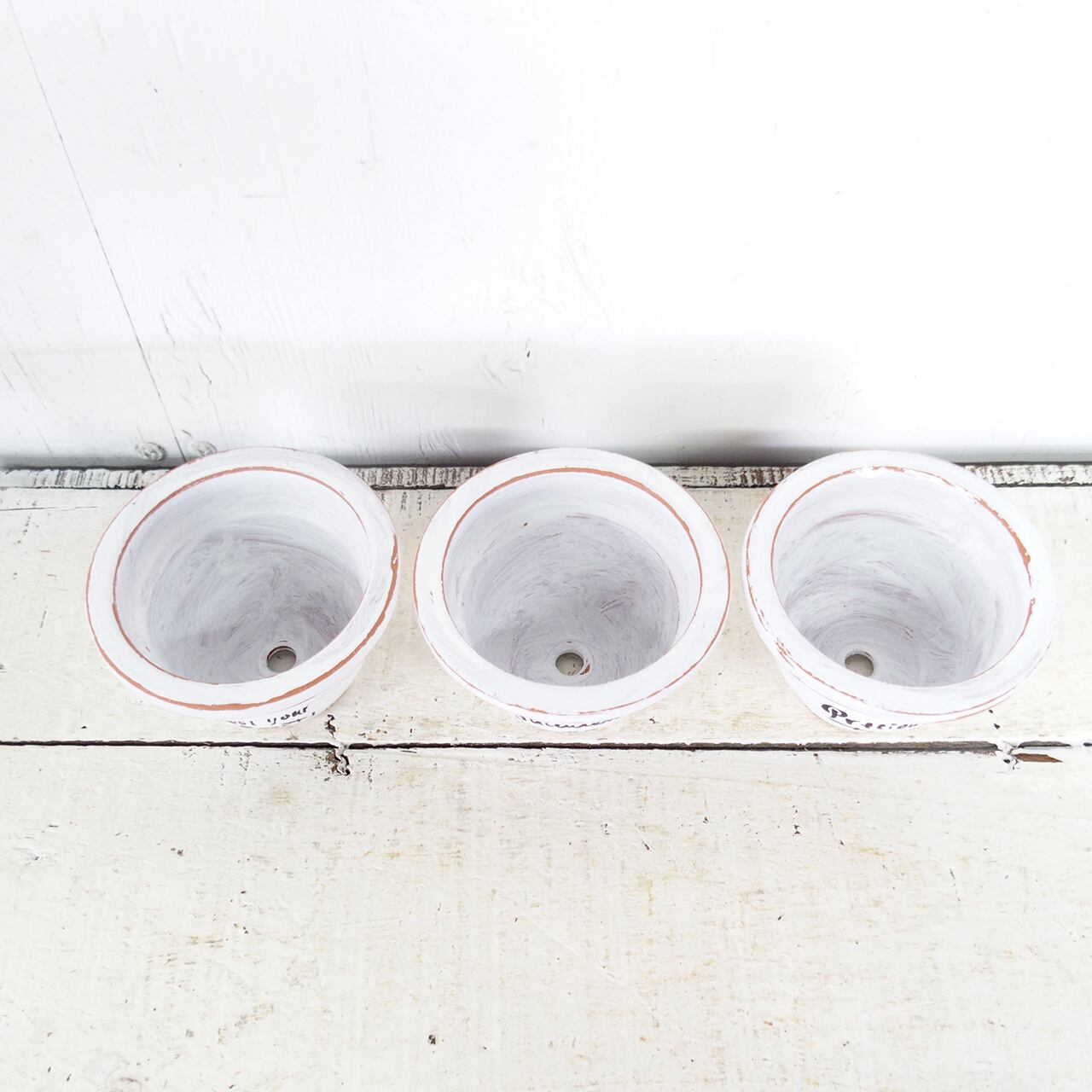 可愛い小さな鉢をホワイトのシャビー塗装で