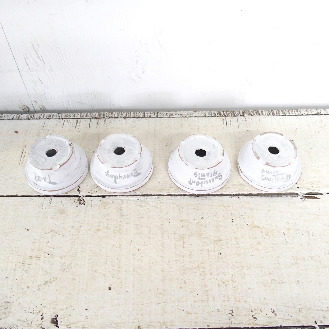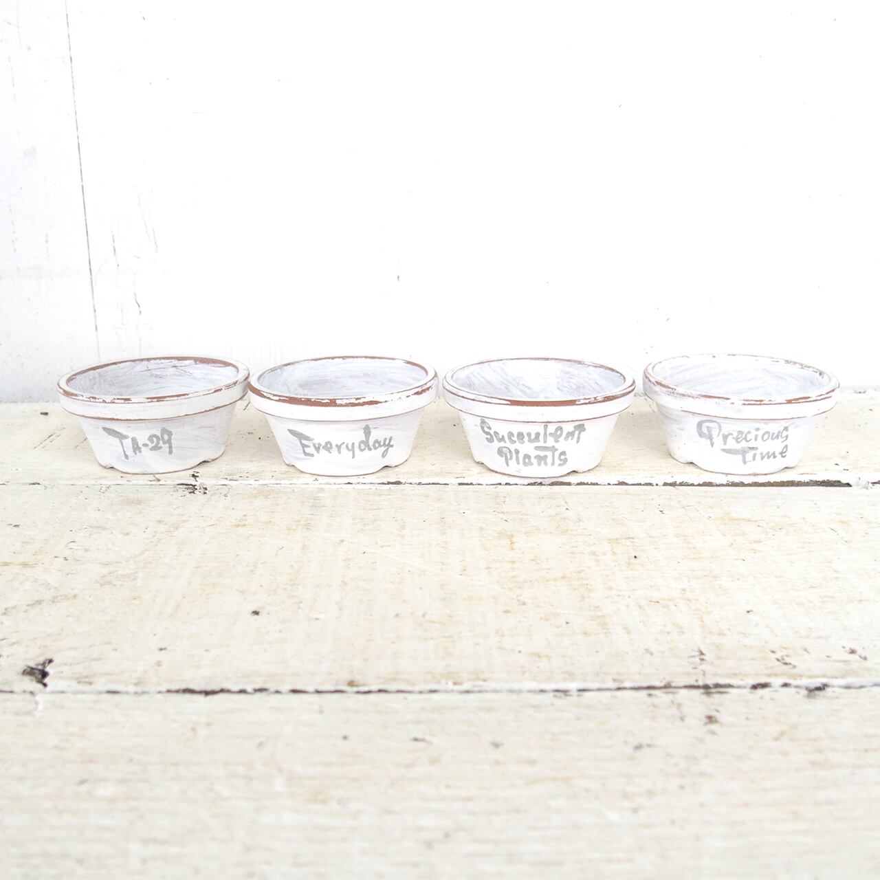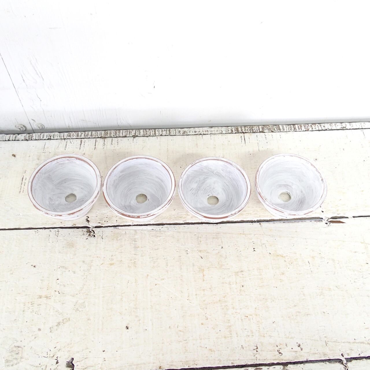 可愛い小さな鉢をホワイトのシャビー塗装で