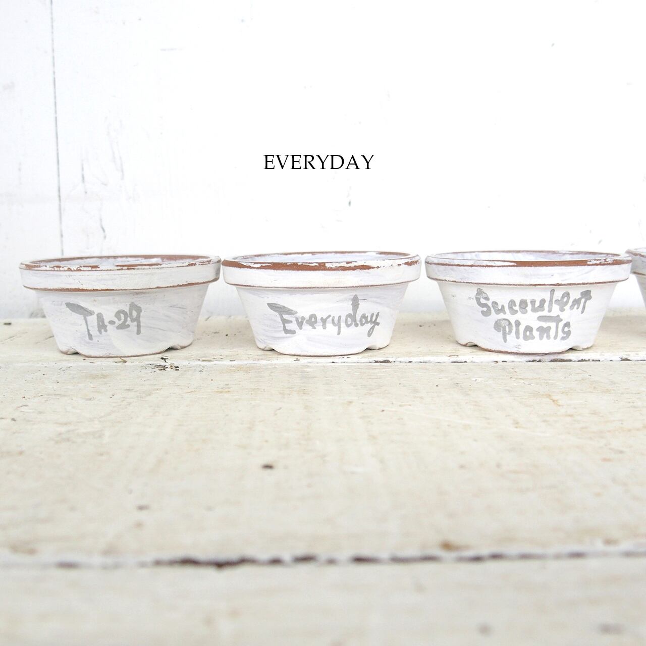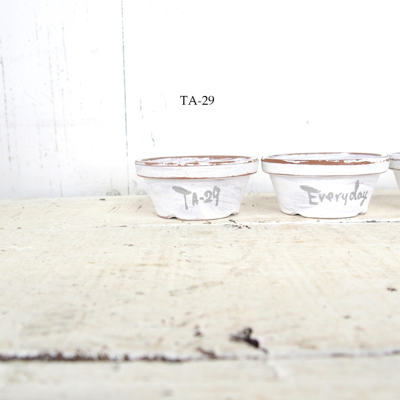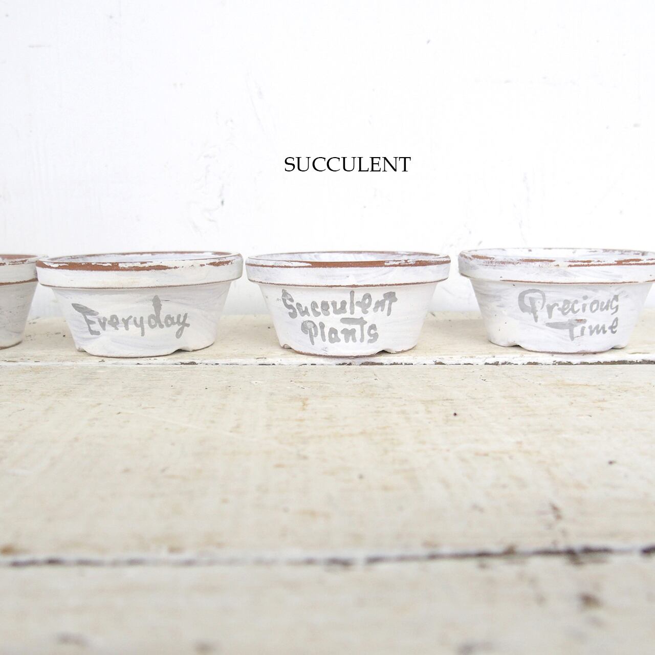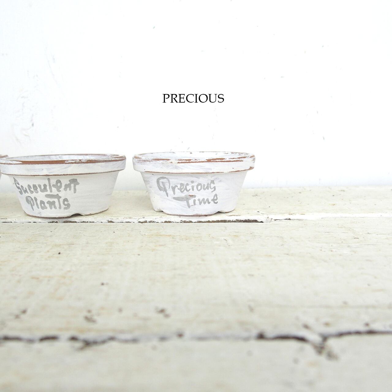 可愛い小さな鉢をホワイトのシャビー塗装で