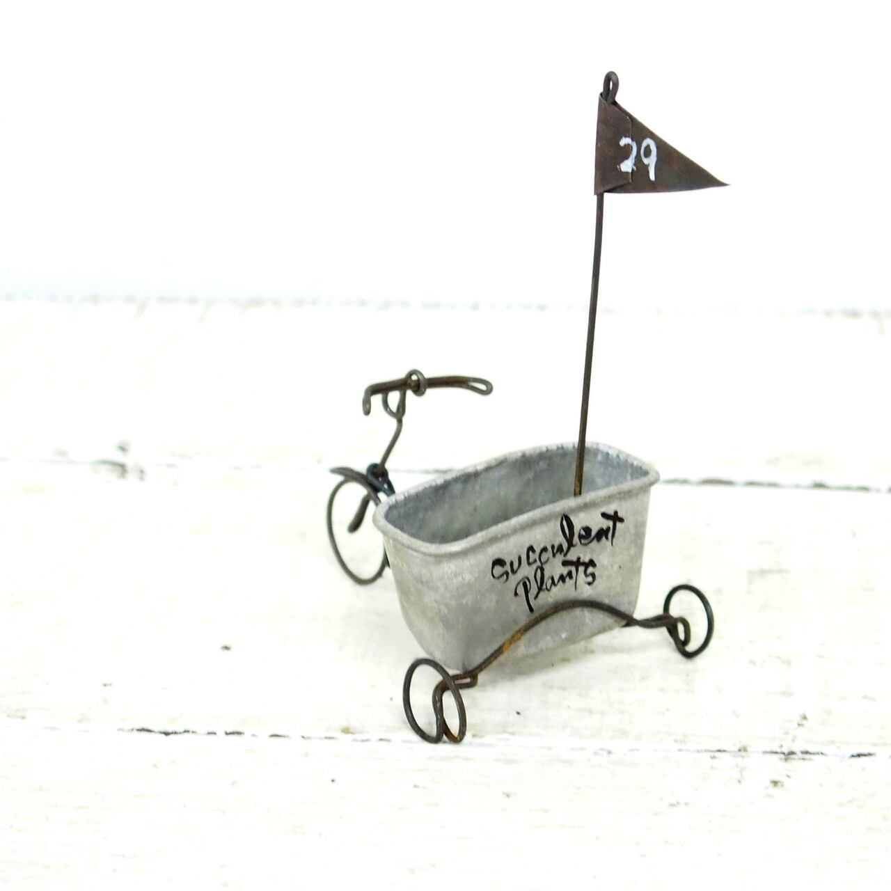 【リメイクミニ缶】三輪車プランター 多肉用ミニミニアルミ缶付き