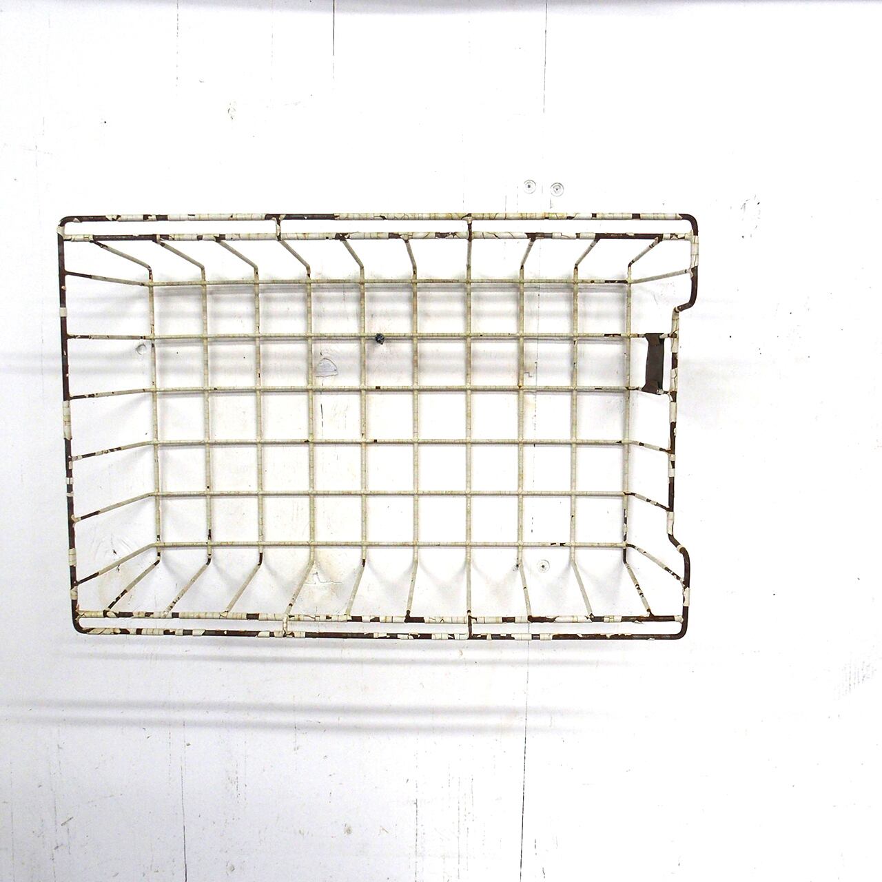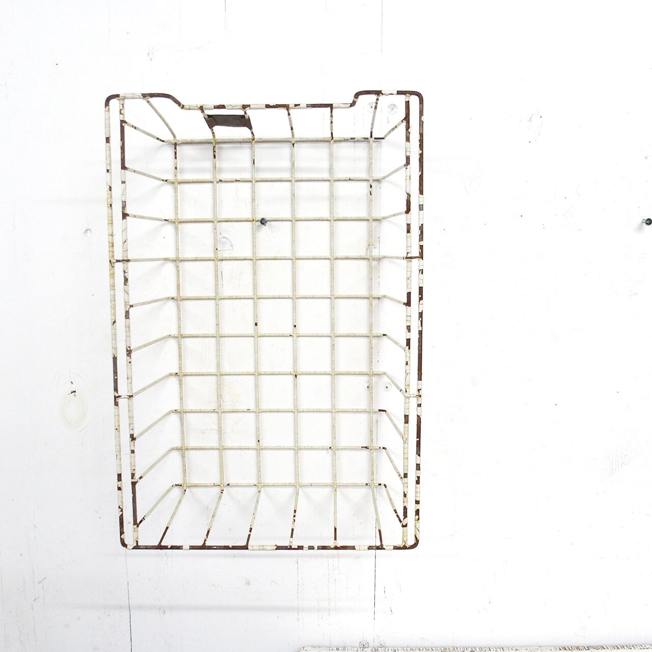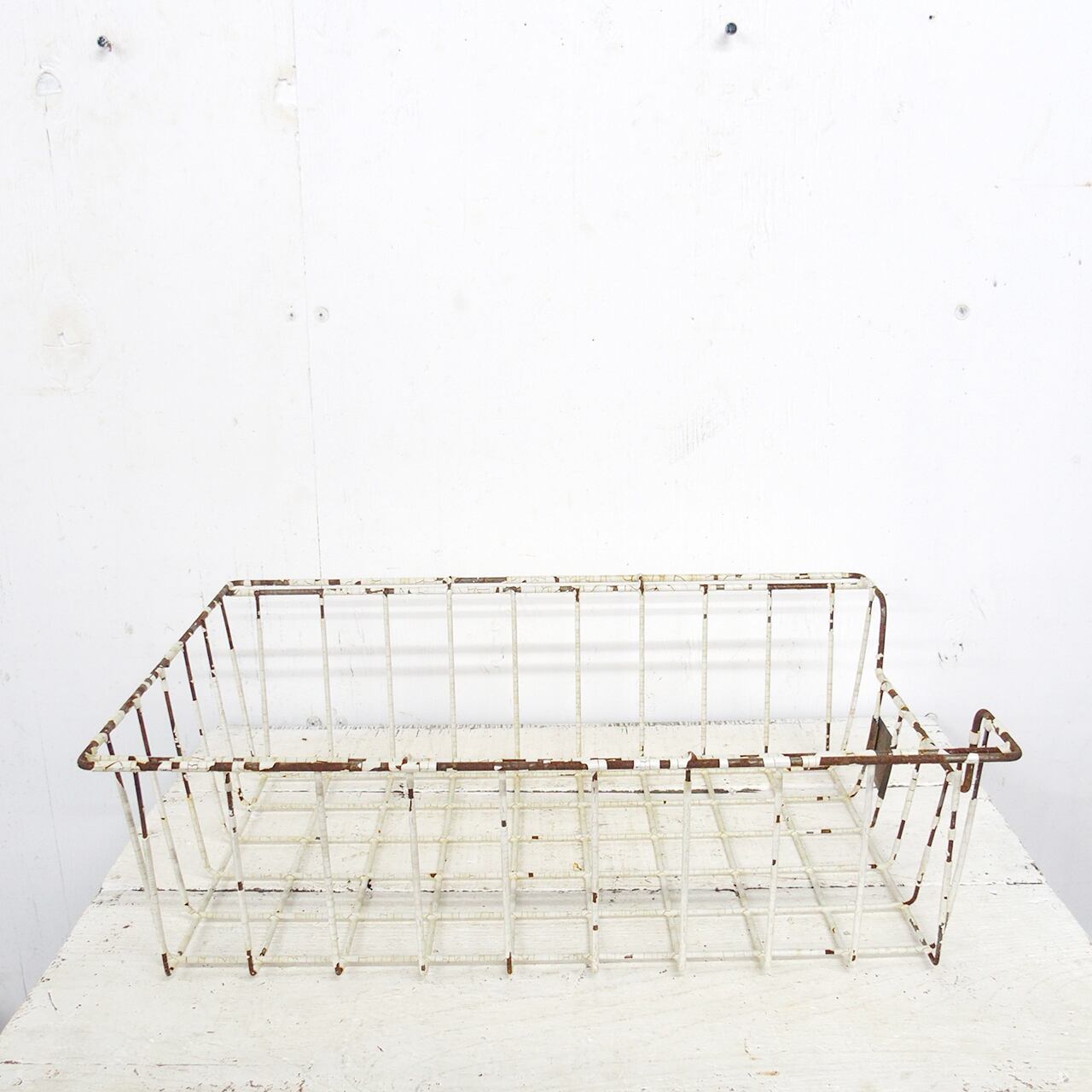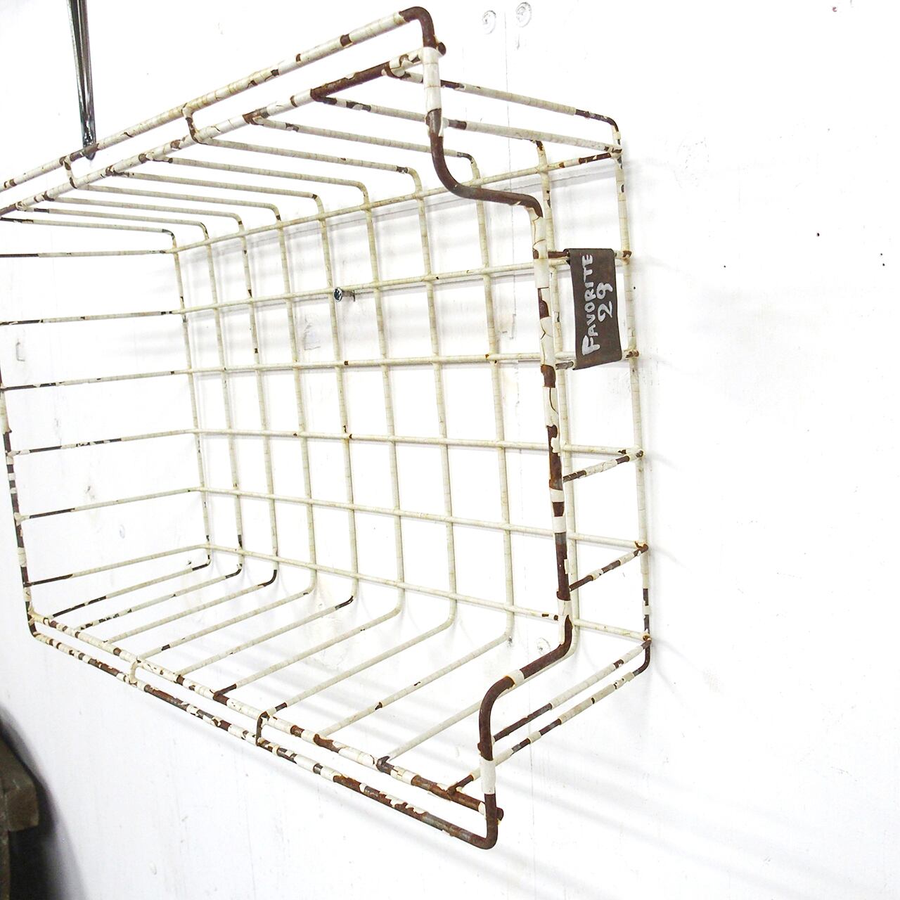 古いメッシュのかごにサビサビのネームプレートを