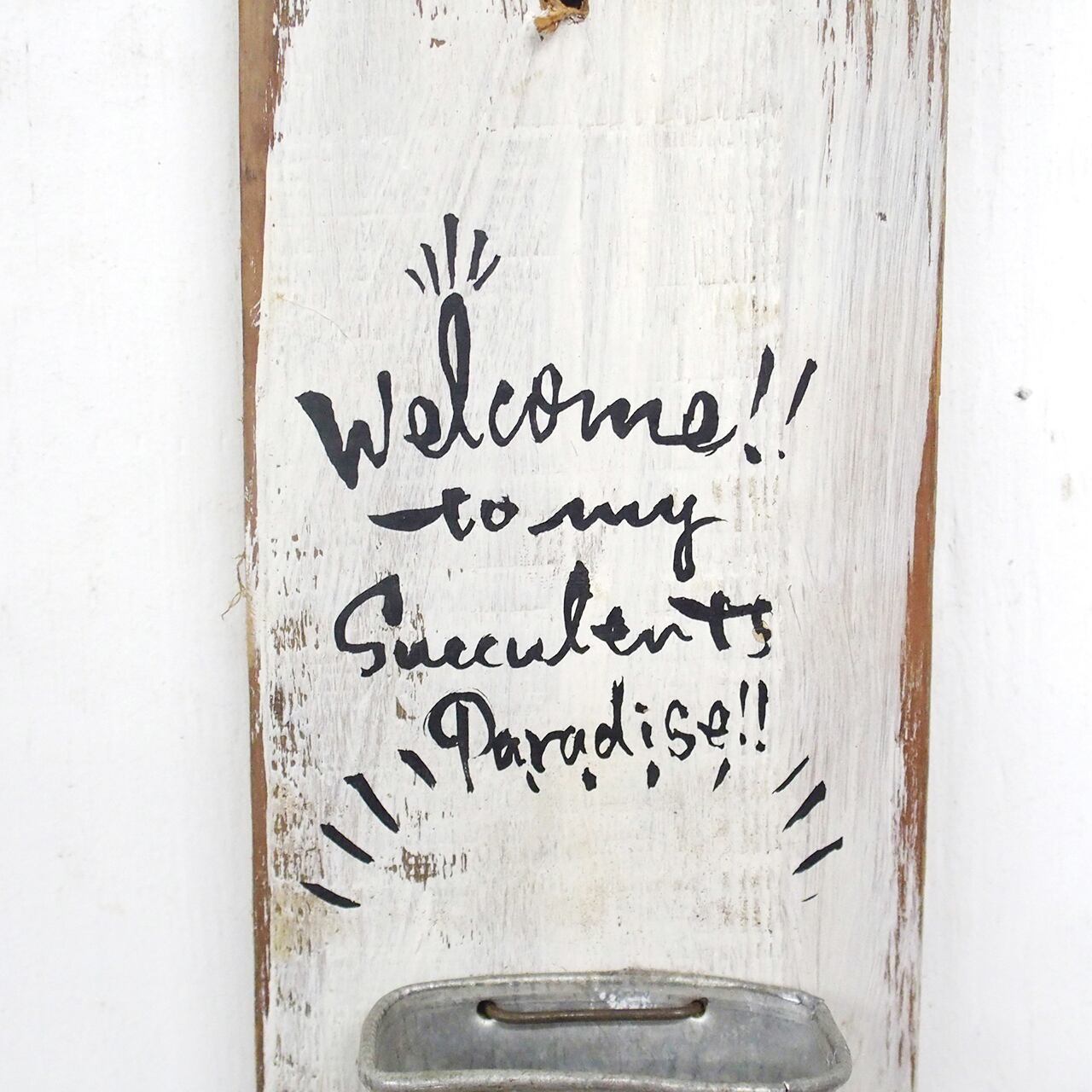 【古材リメイク】多肉用ミニ缶付き 古材サイン PARADISE