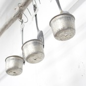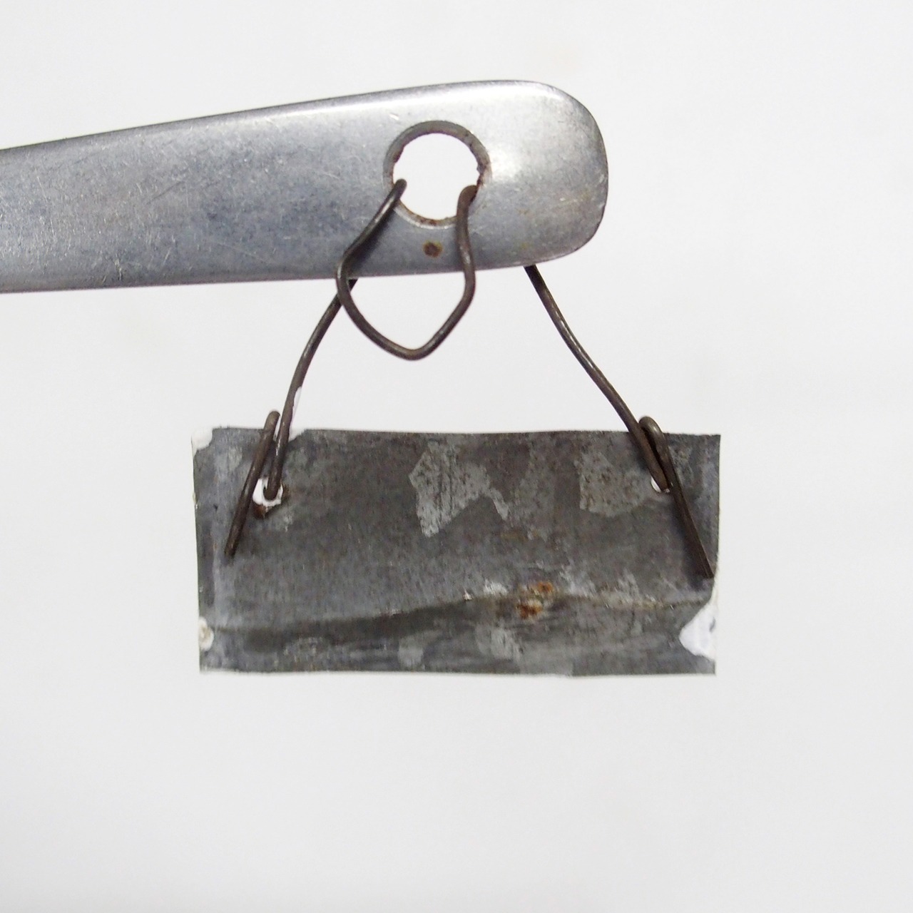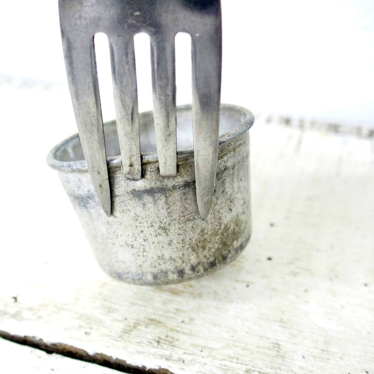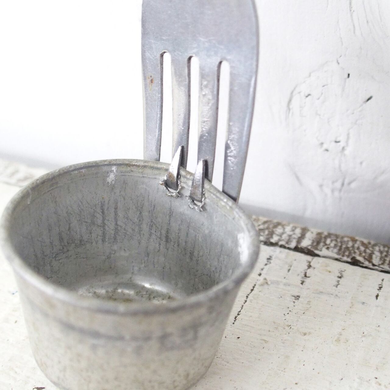 古い給食用フォークに小さなアルミ缶をくっつけた