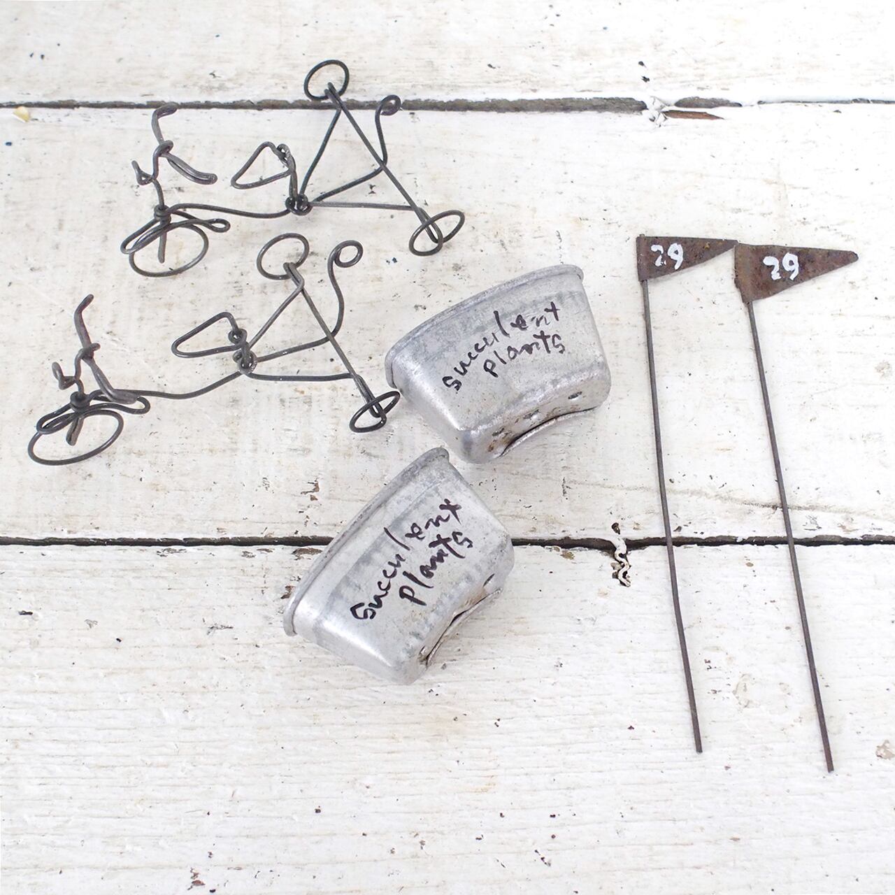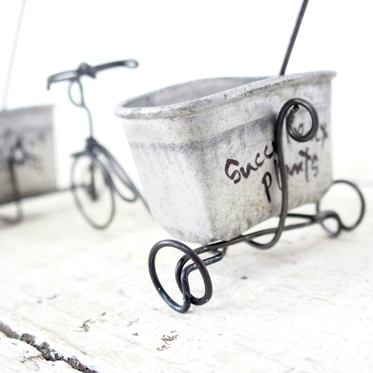 【リメイクミニ缶】三輪車プランター 多肉用ミニミニアルミ缶付き