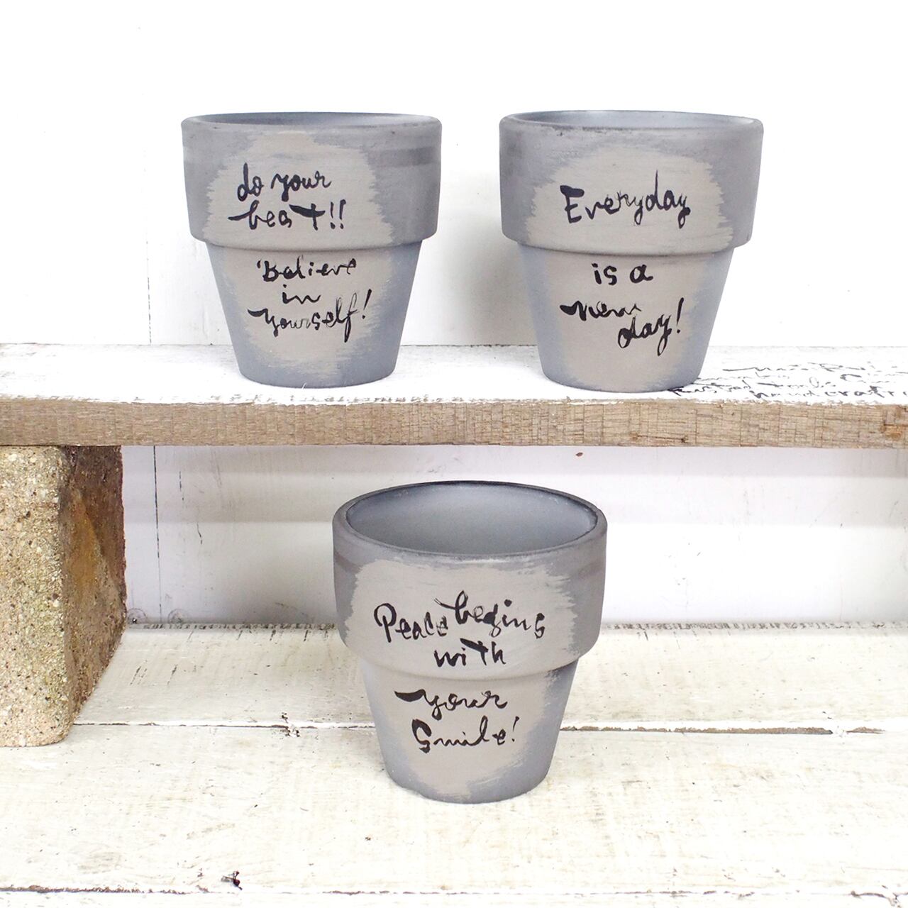 リムの太い可愛い鉢に文字を入れたアレンジ鉢です♪