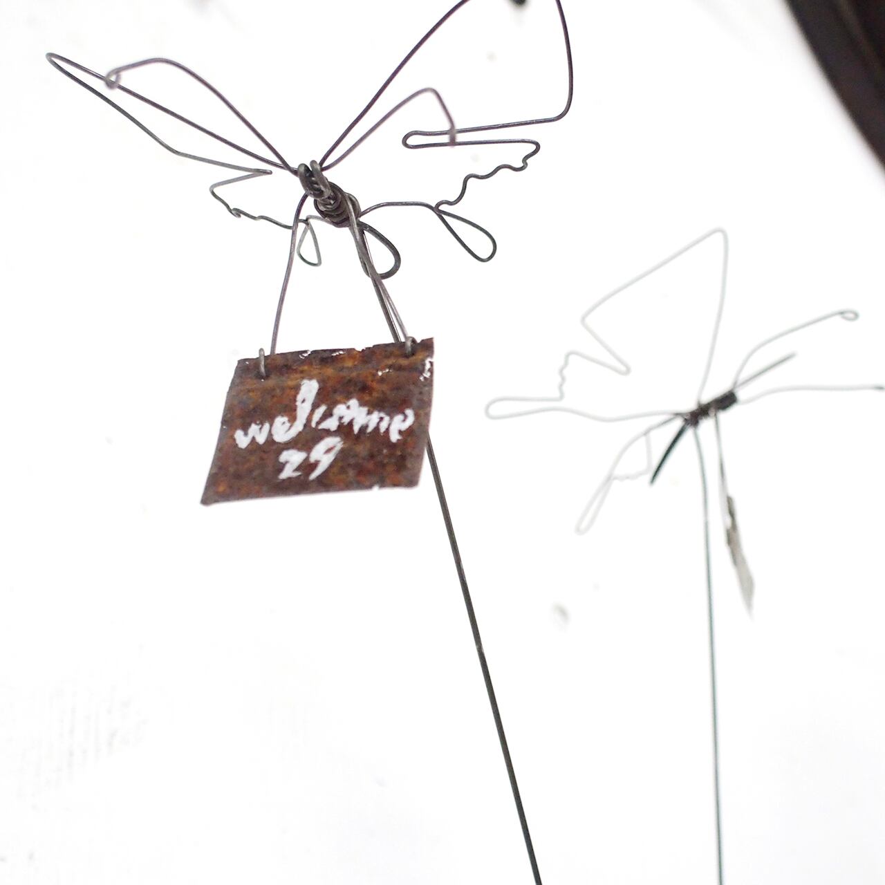 【ハンドメイド・ワイヤーワーク】サイン付きバタフライピック <寄せ植え用>