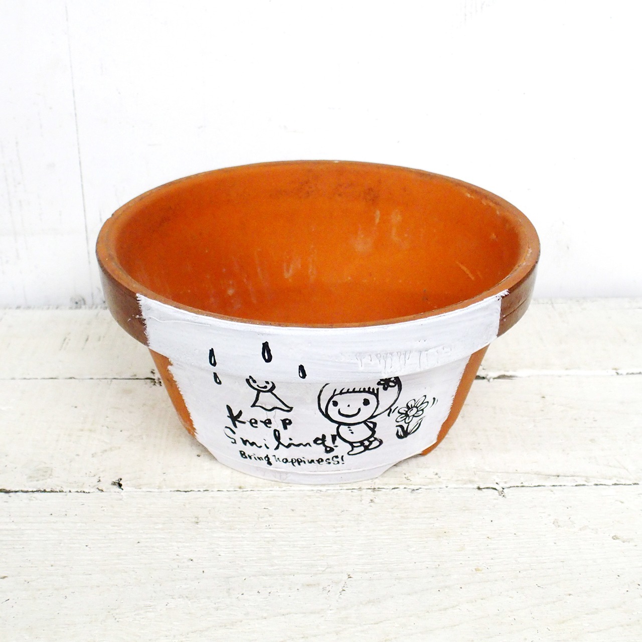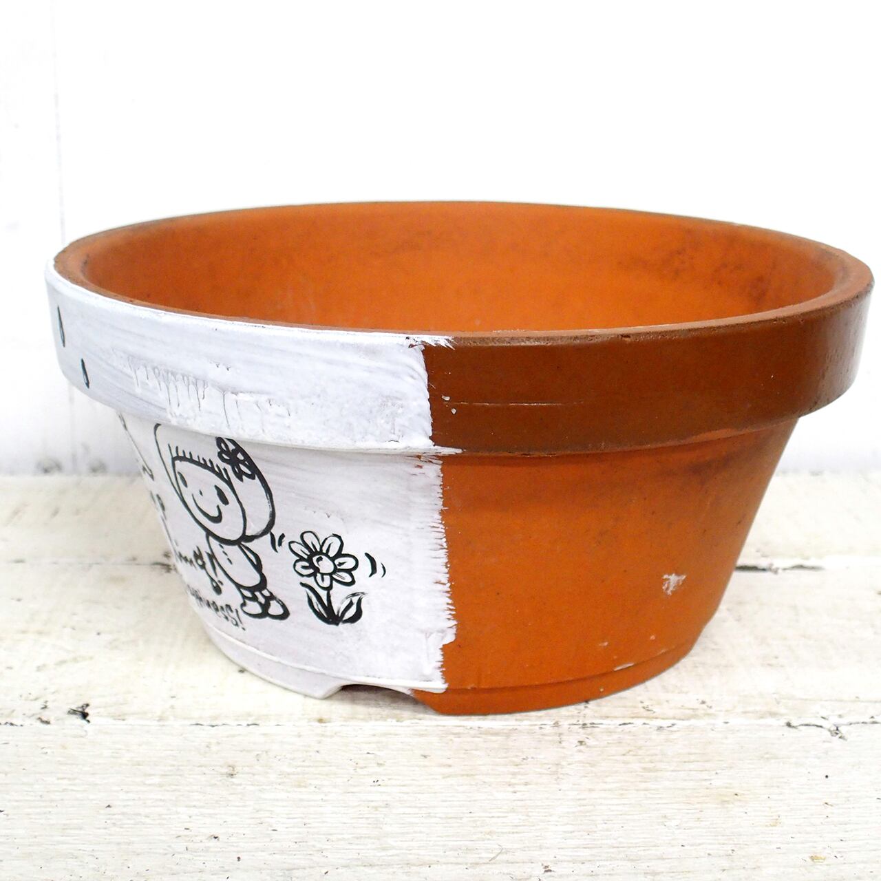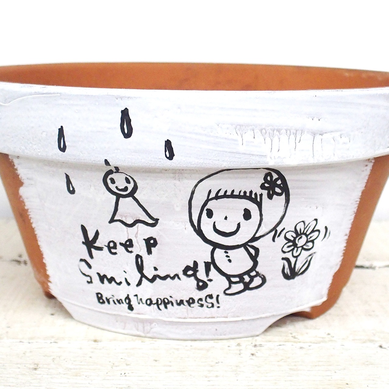【リメイク鉢】イラストアレンジ鉢 浅鉢8号 rain