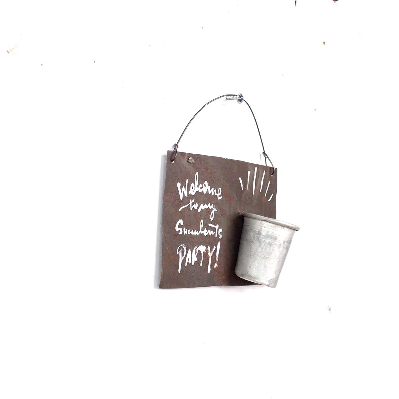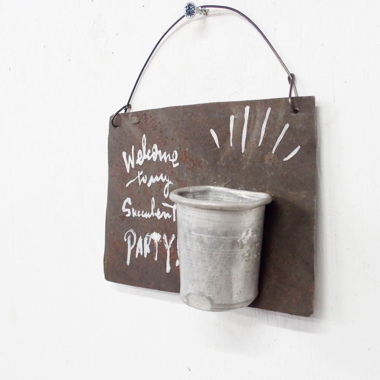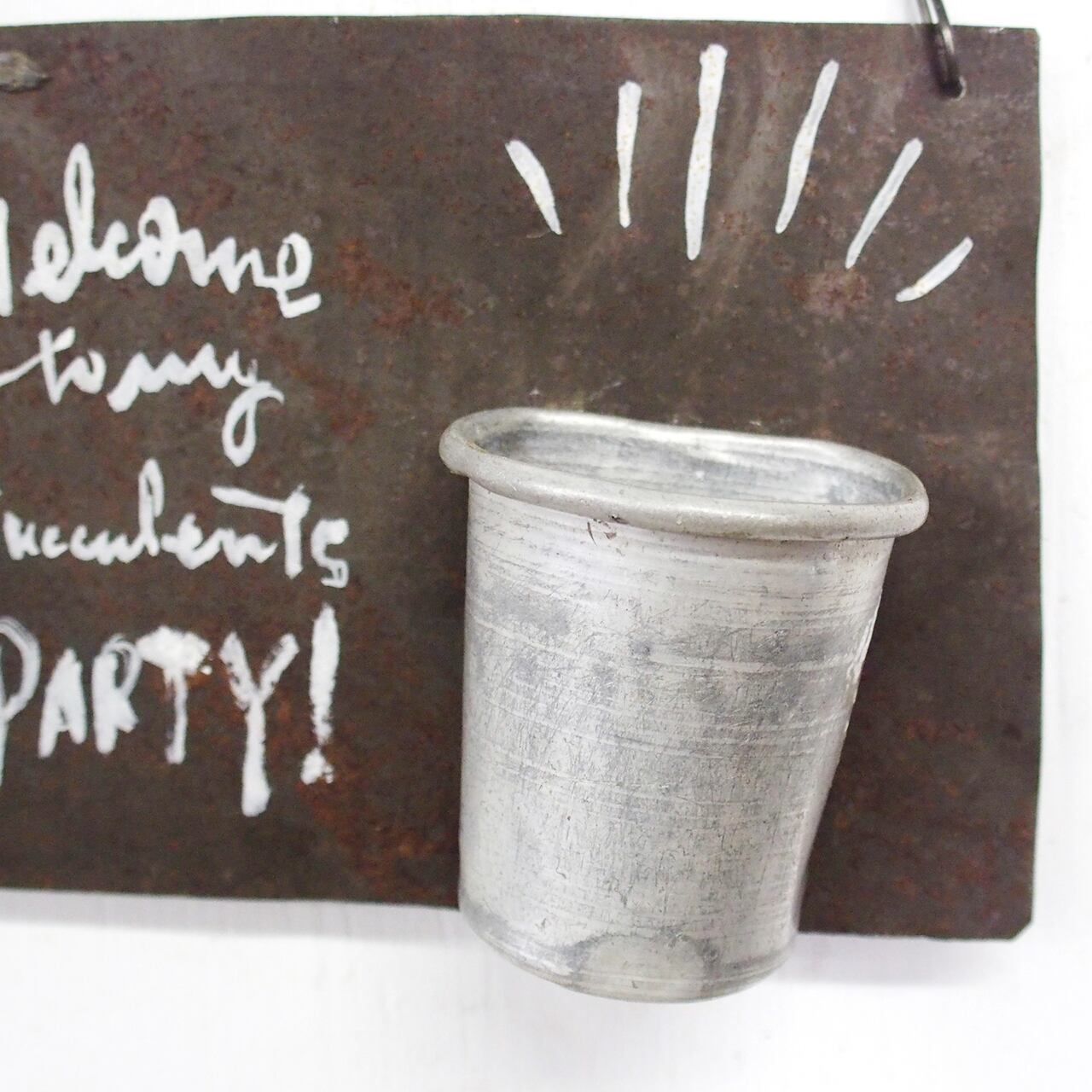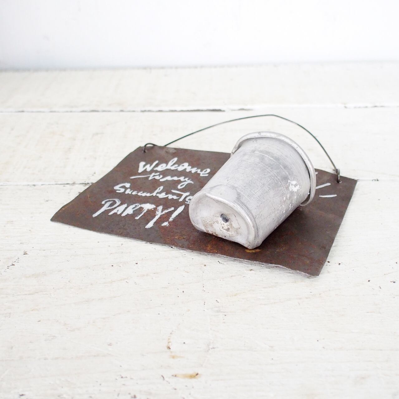 【古材リメイク】多肉用アルミカップ付き ブリキサイン