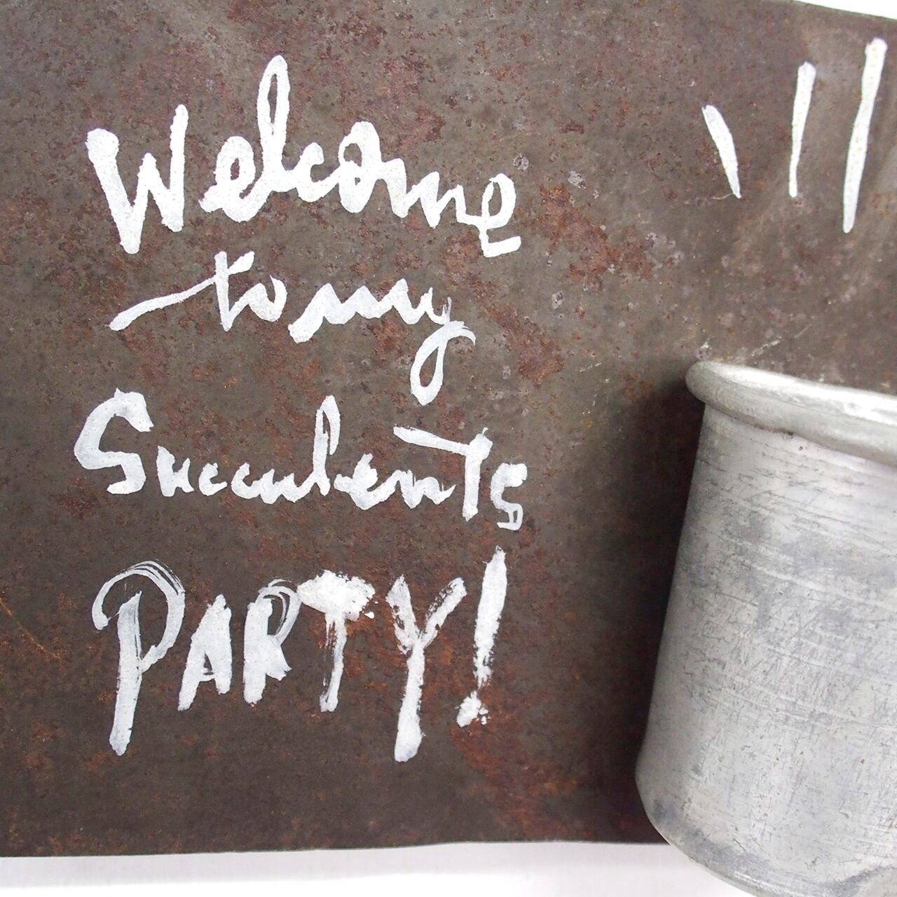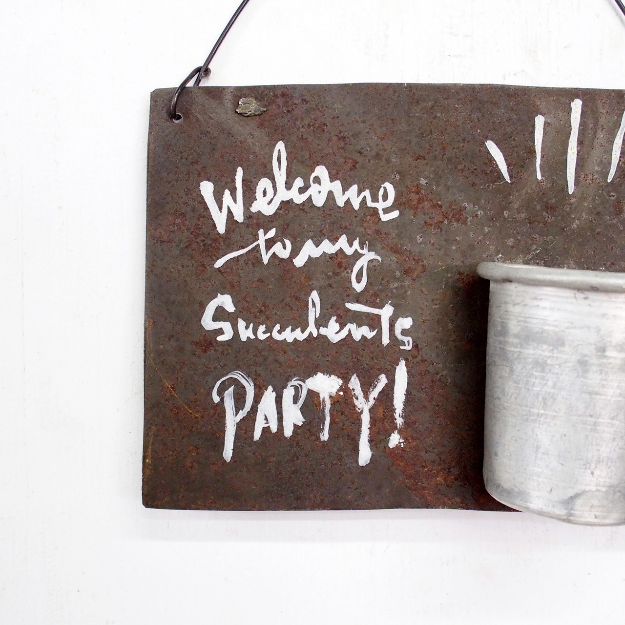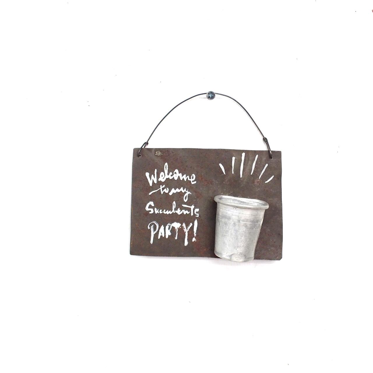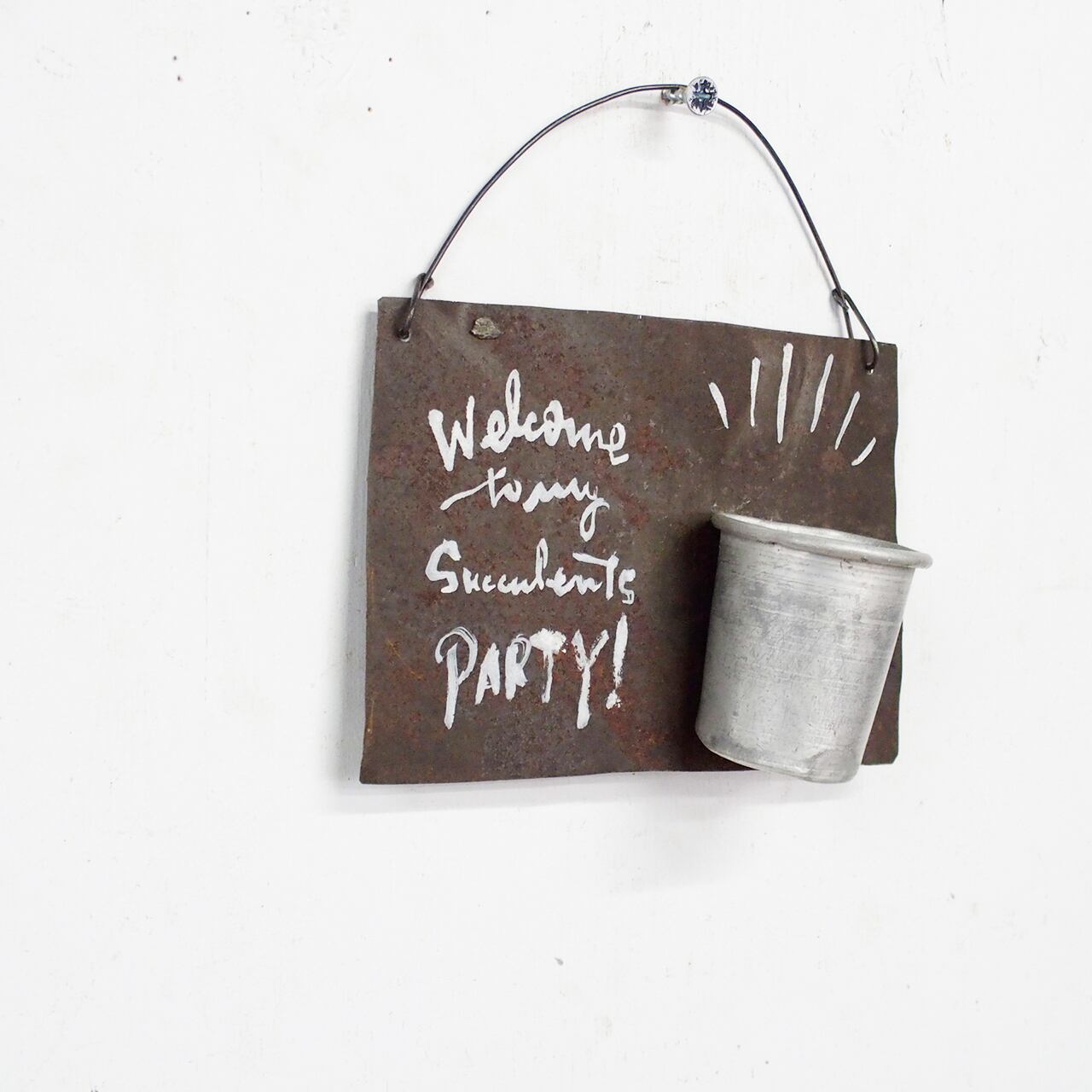 【古材リメイク】多肉用アルミカップ付き ブリキサイン