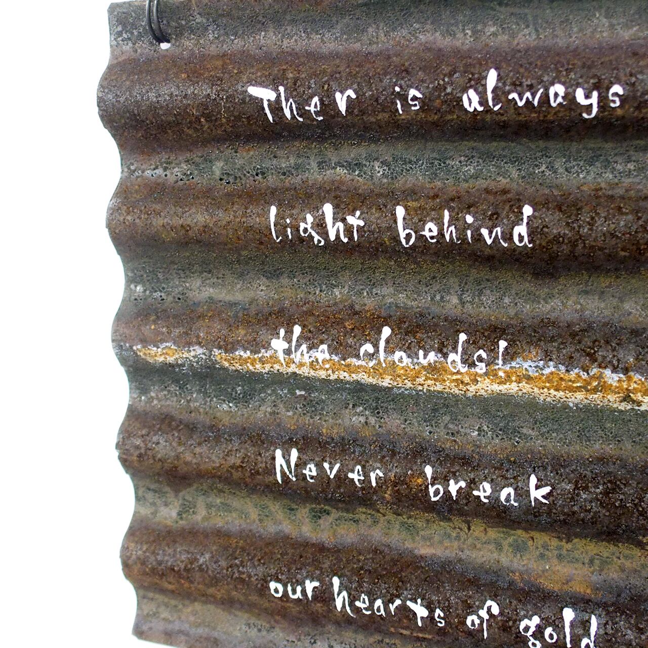 古いサビサビの波板トタンに文字を入れたガーデンサインです♪