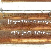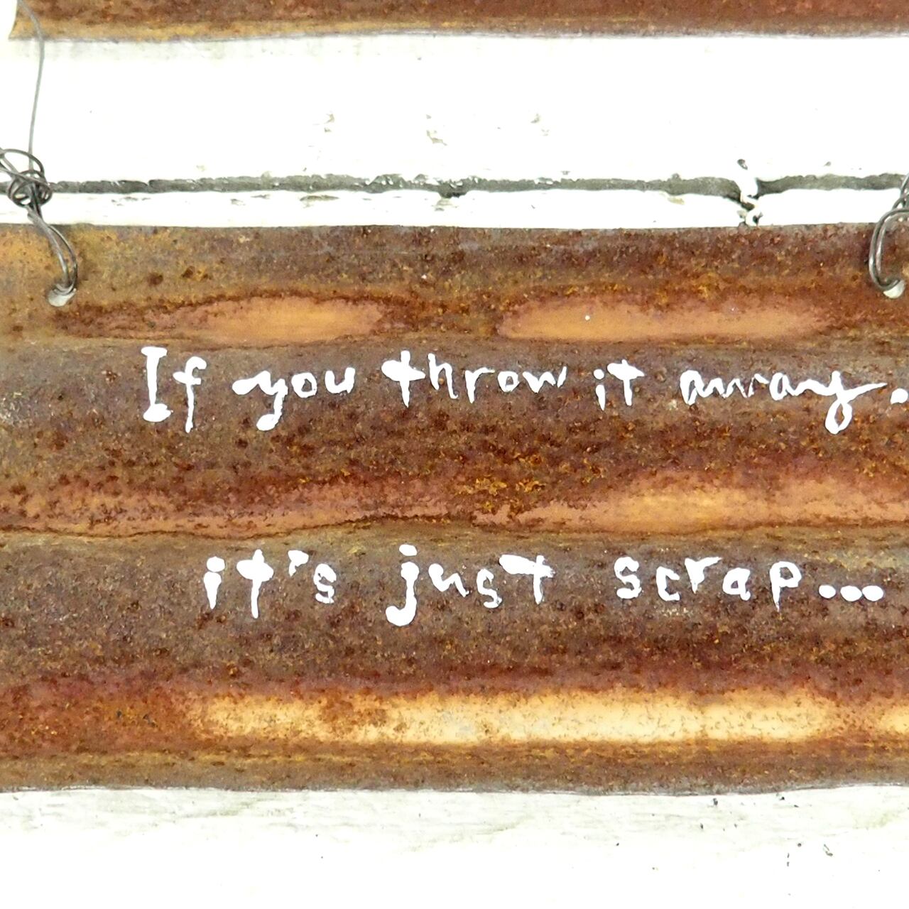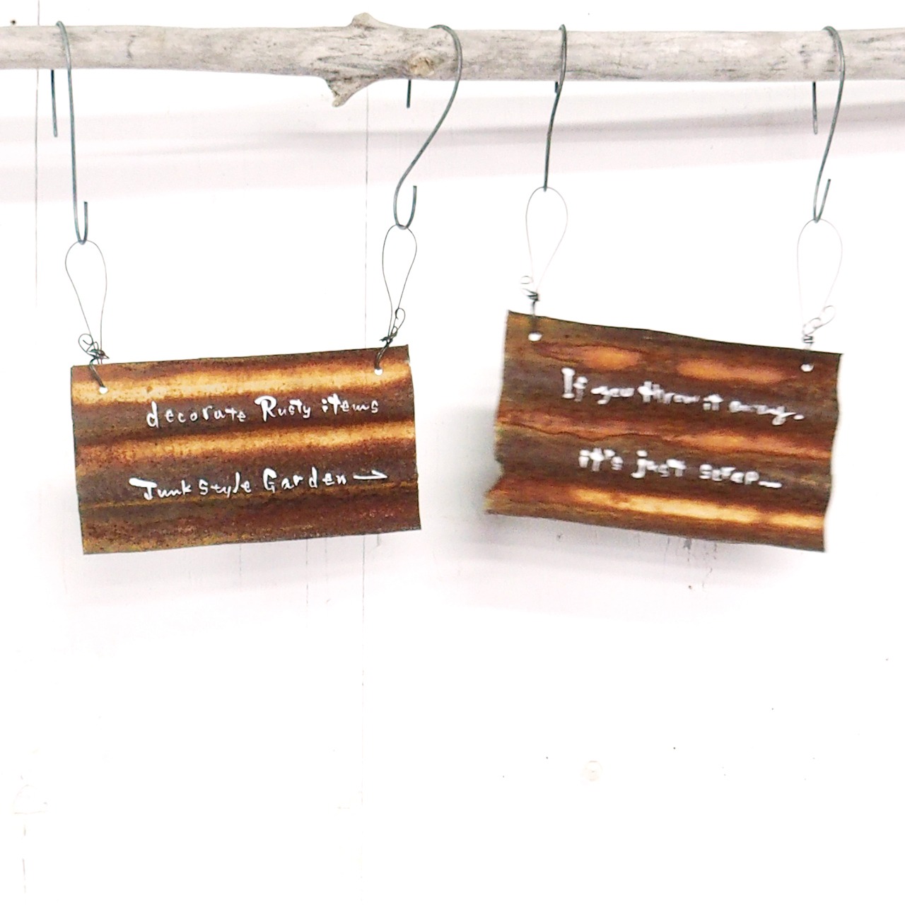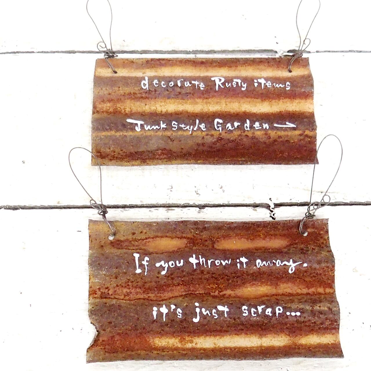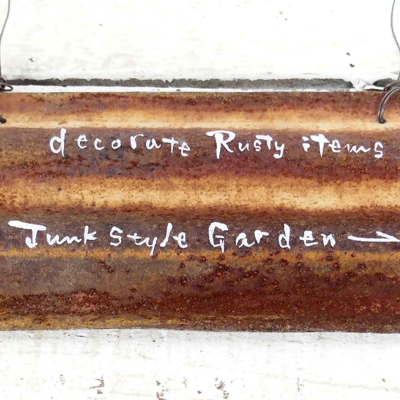 古いサビサビの波板トタンに文字を入れたガーデンサインです♪