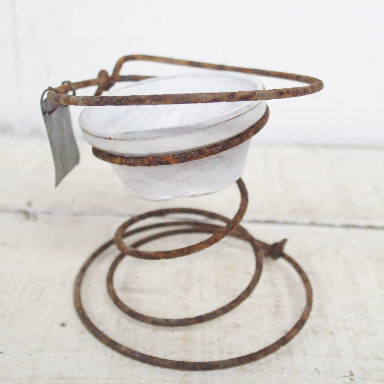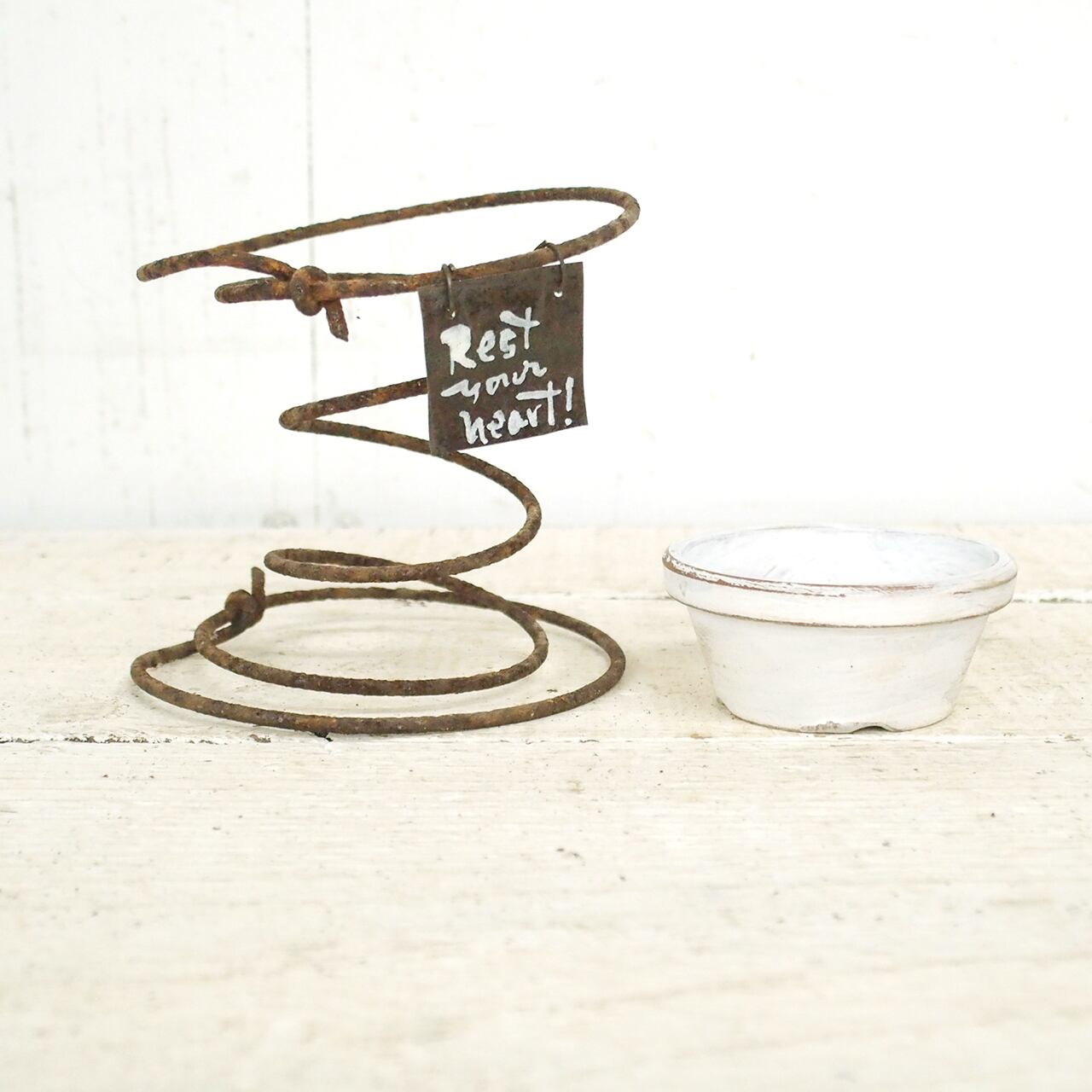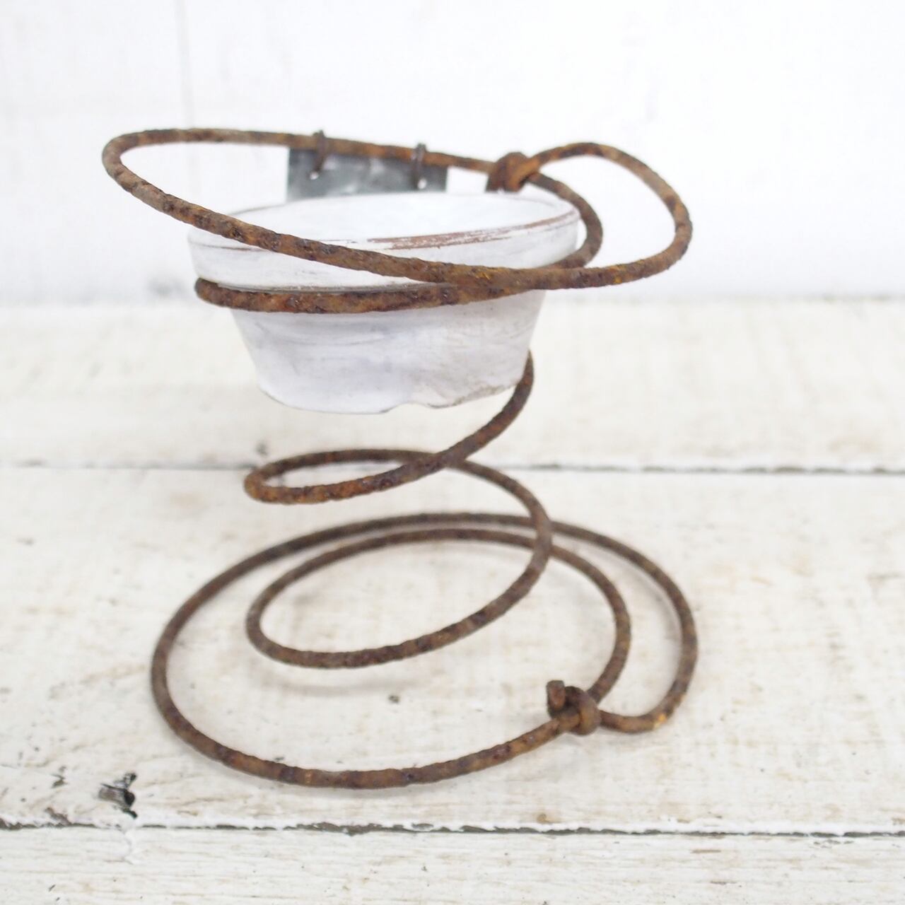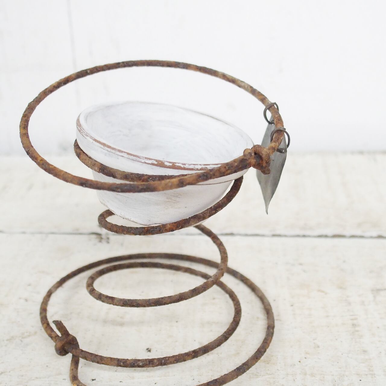 サビサビのスプリングに2号の浅鉢を乗せたプランターです♪