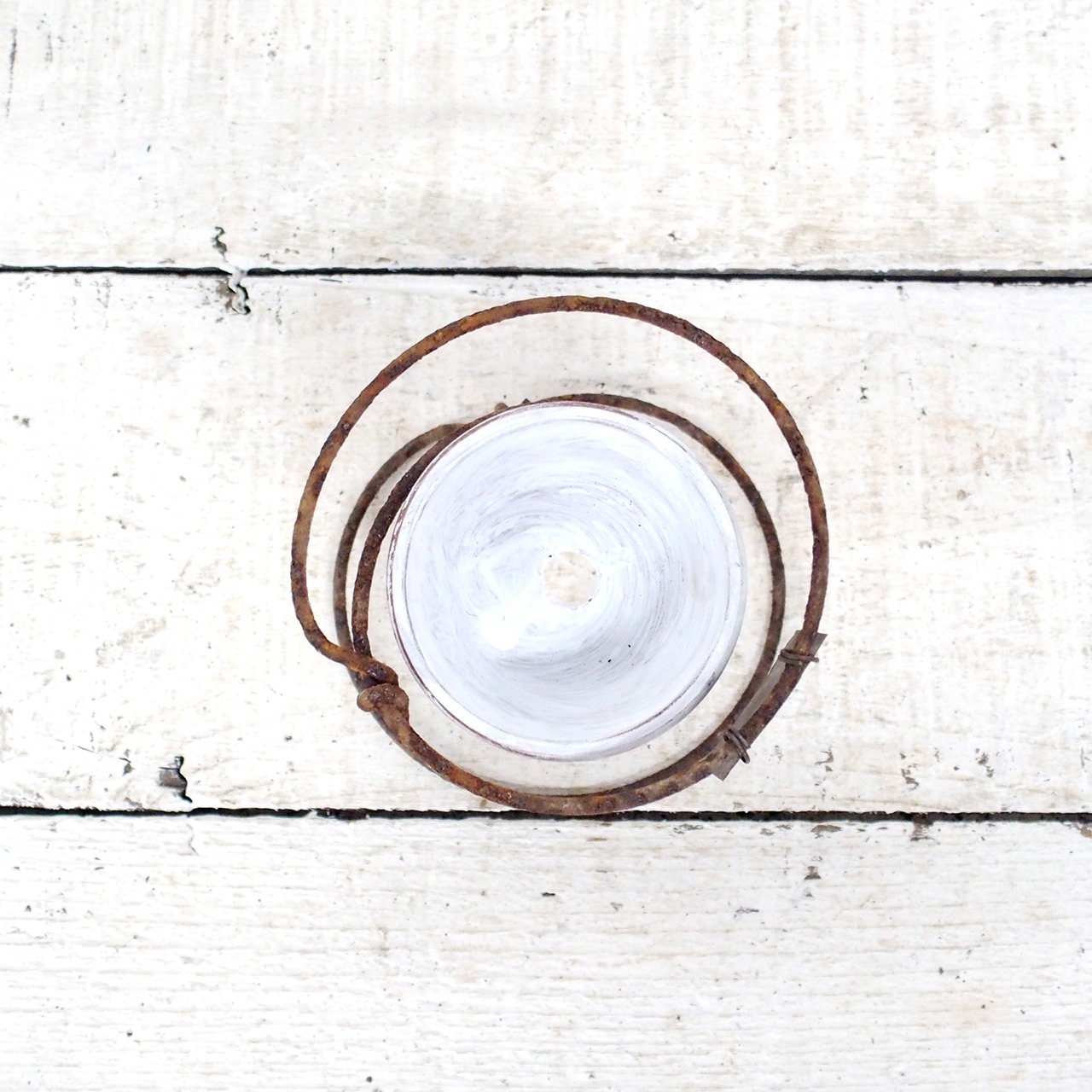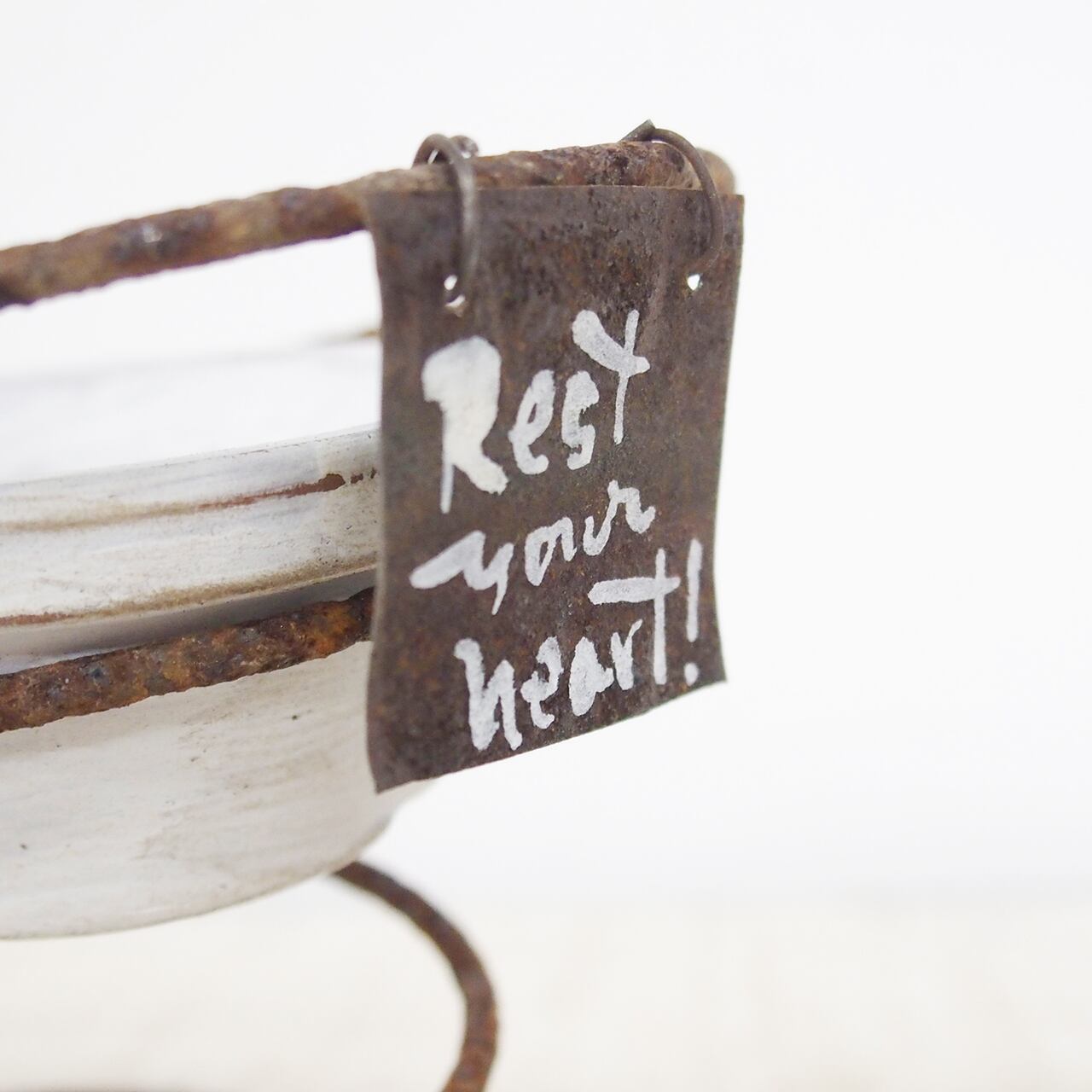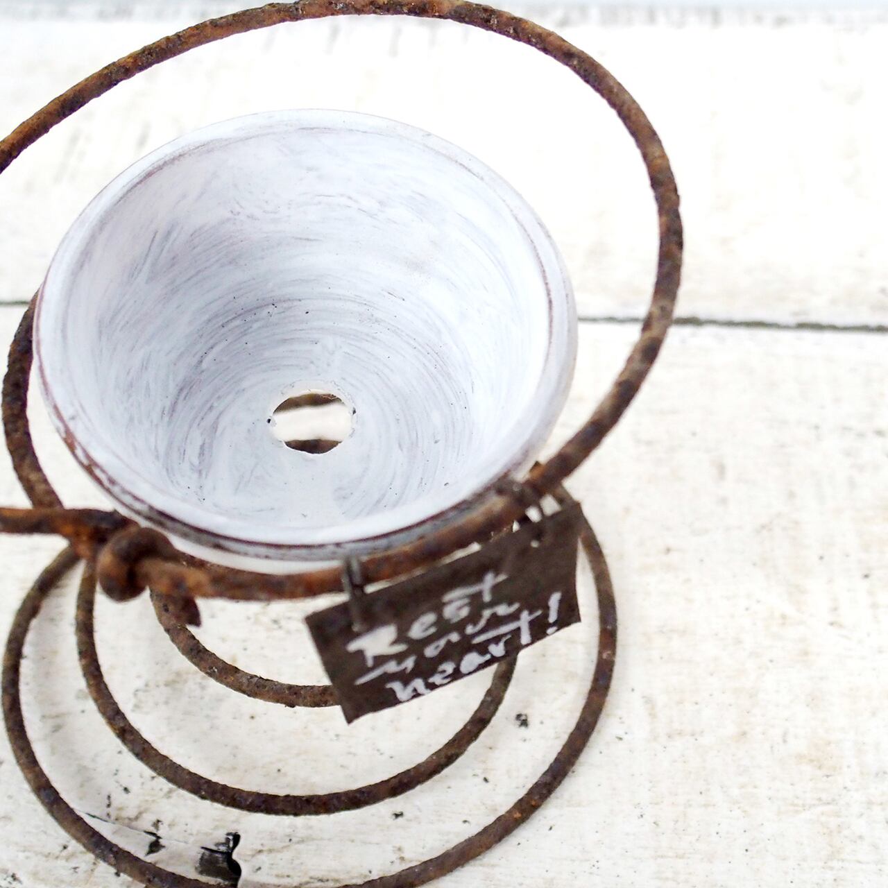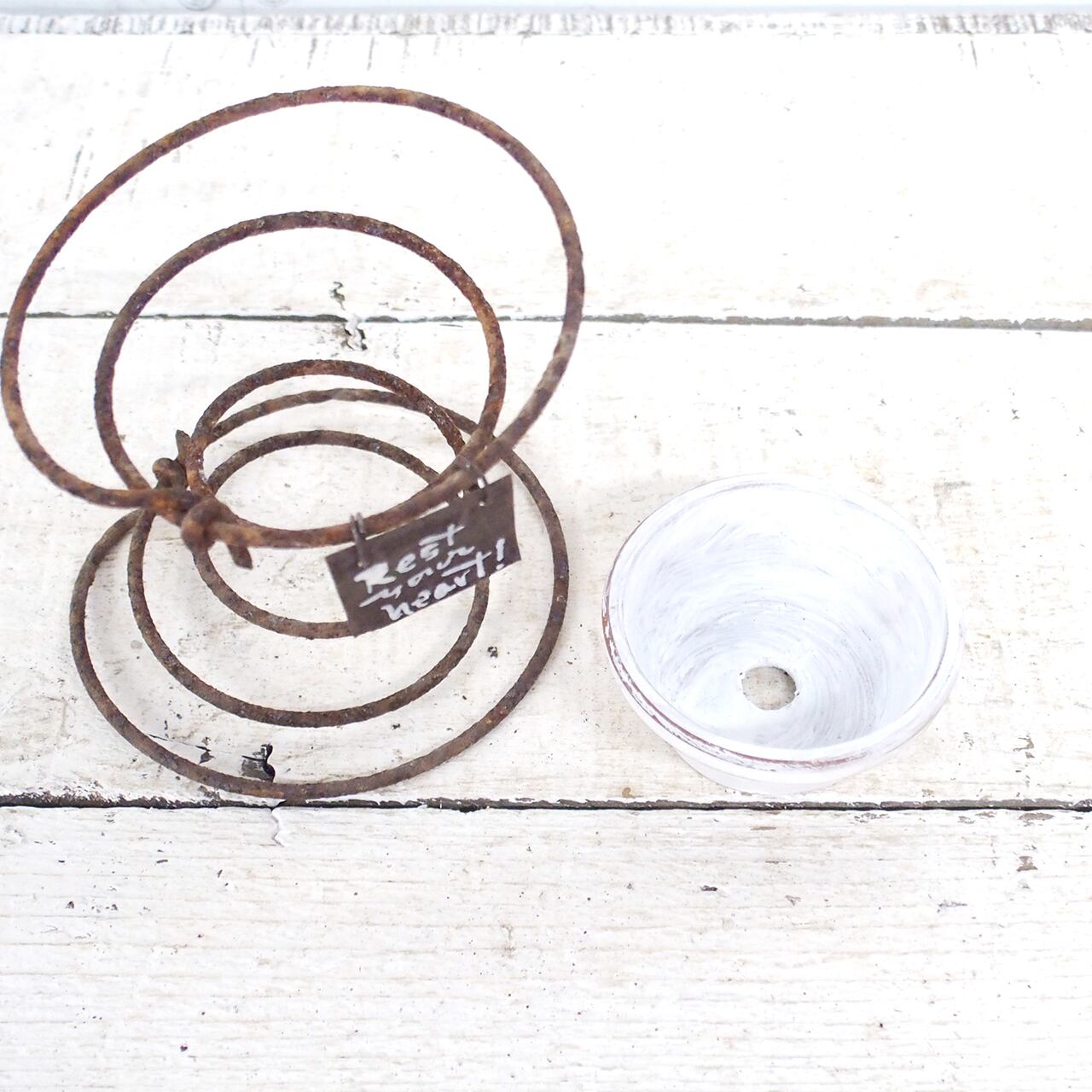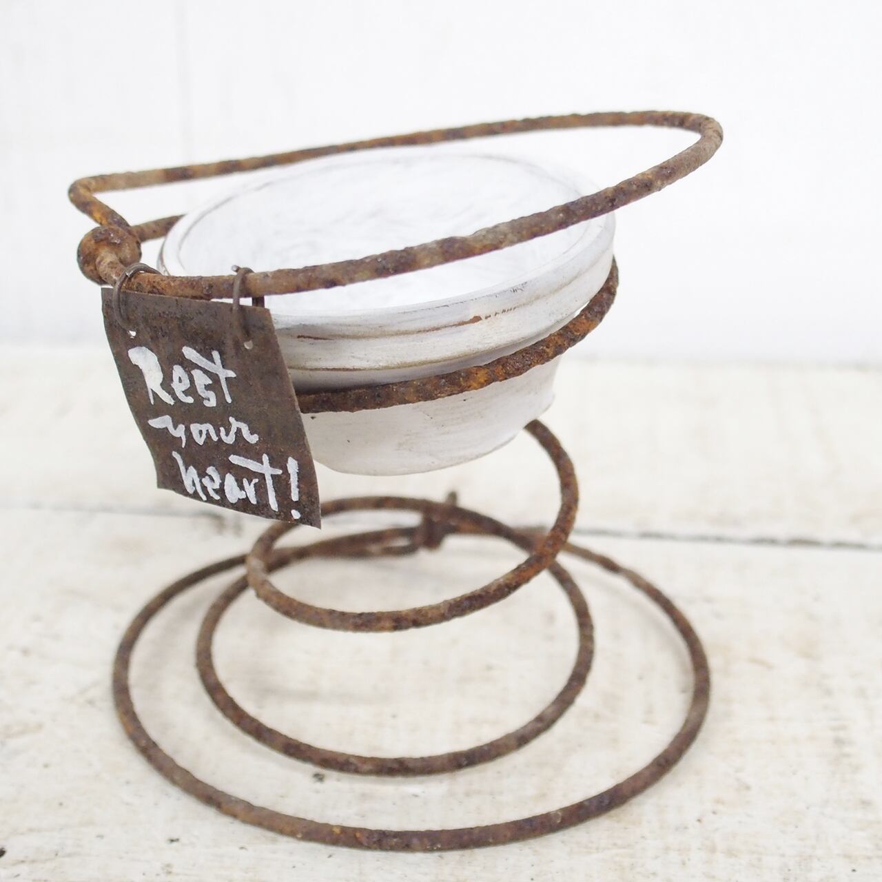サビサビのスプリングに2号の浅鉢を乗せたプランターです♪