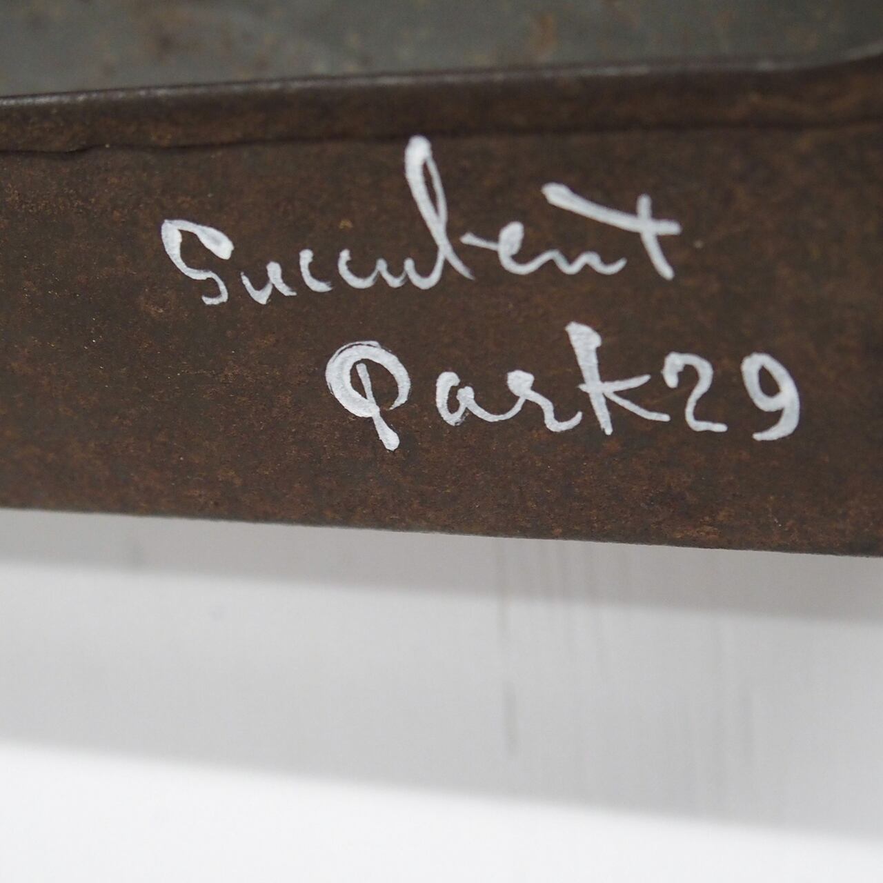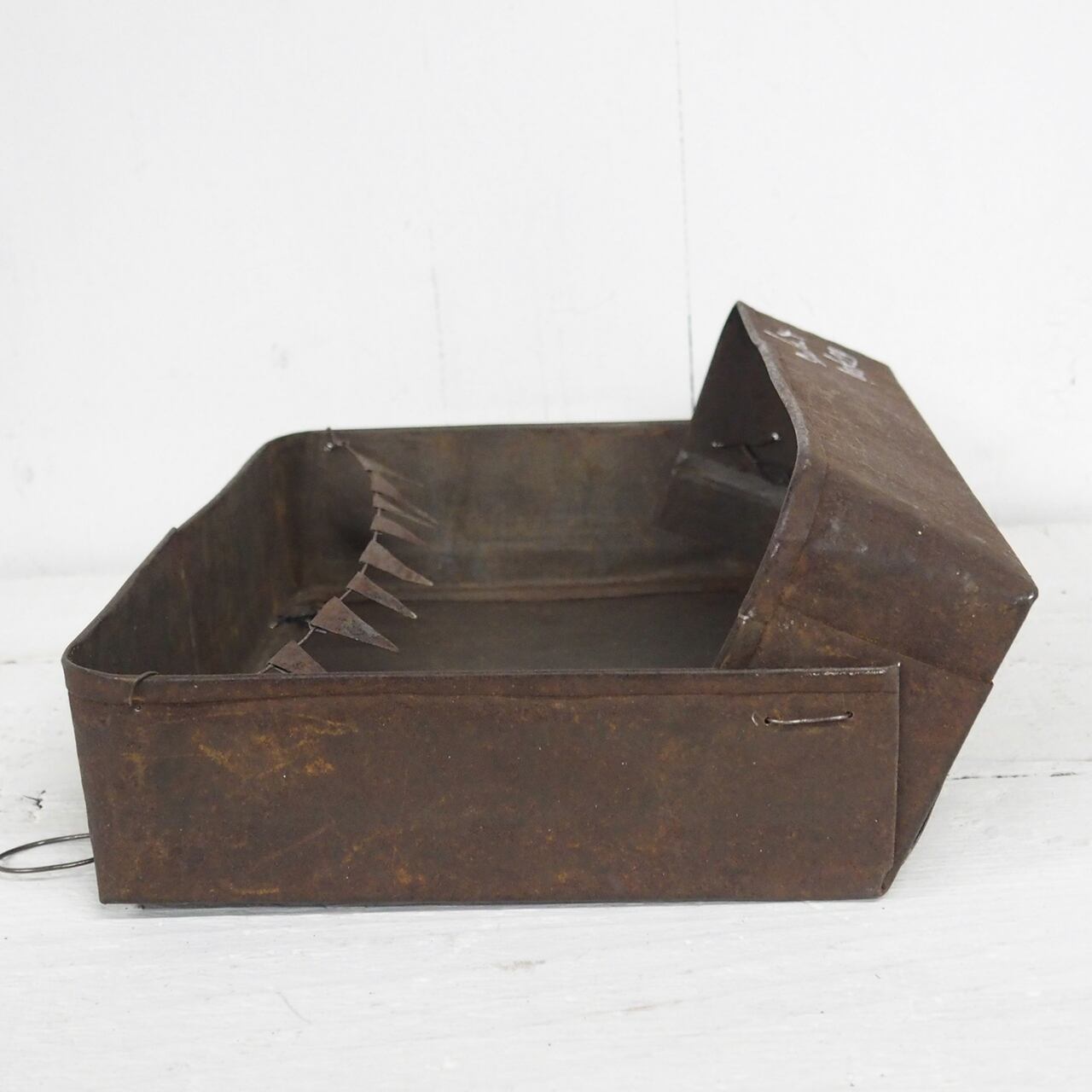 四角いブリキの缶の蓋を折り曲げて作ったプランターです♪