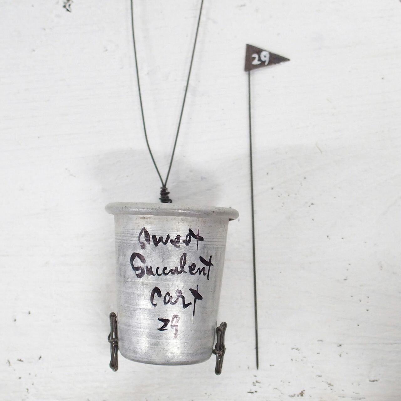【リメイクミニ缶】アルミカップカートのプランター 多肉用 ミニピック付き
