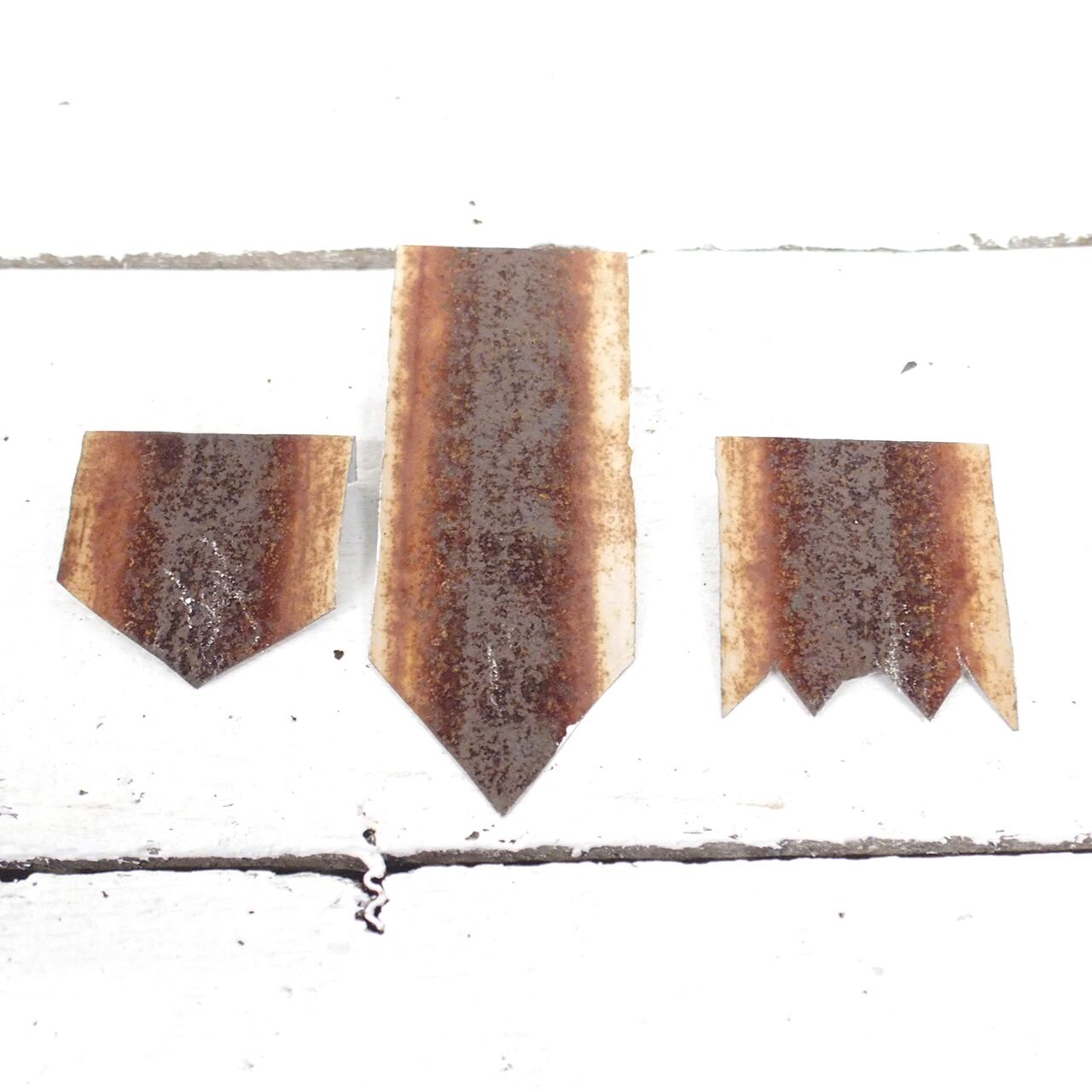 叩いて伸ばした波板トタンを切って作った