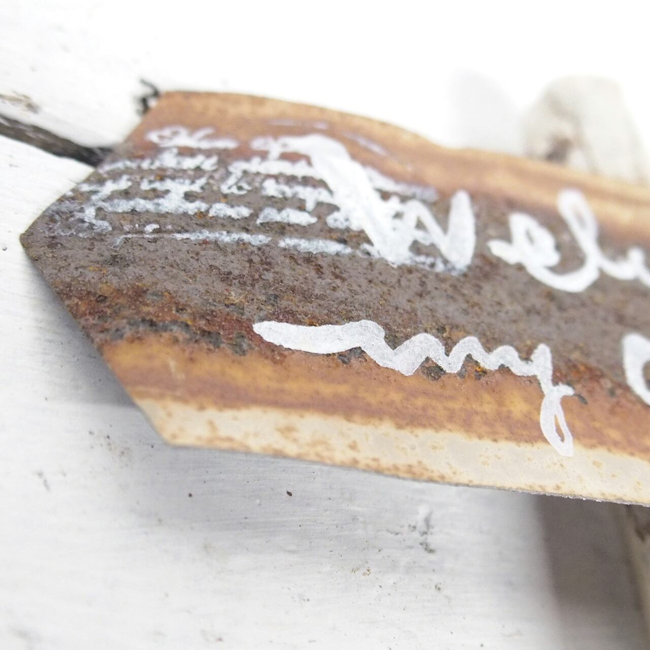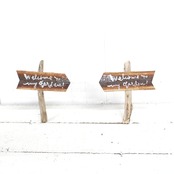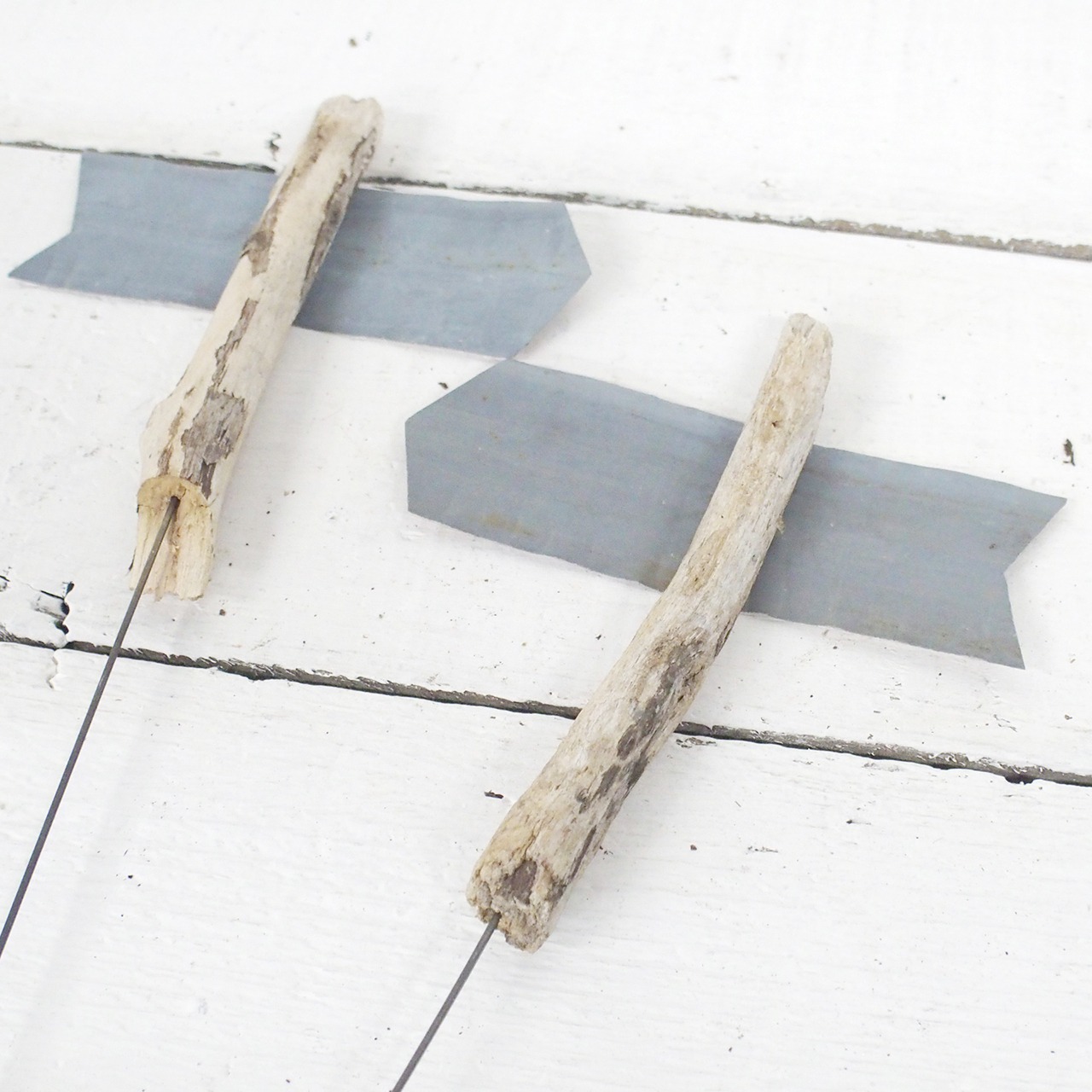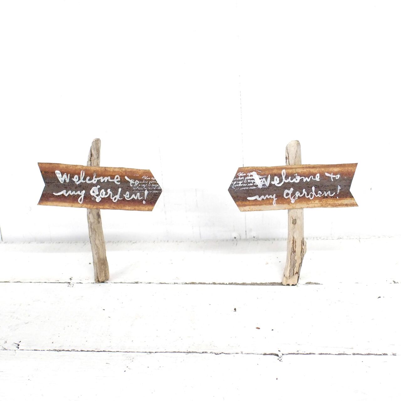 流木にブリキの矢印サインを付けた小さめのピックです♪