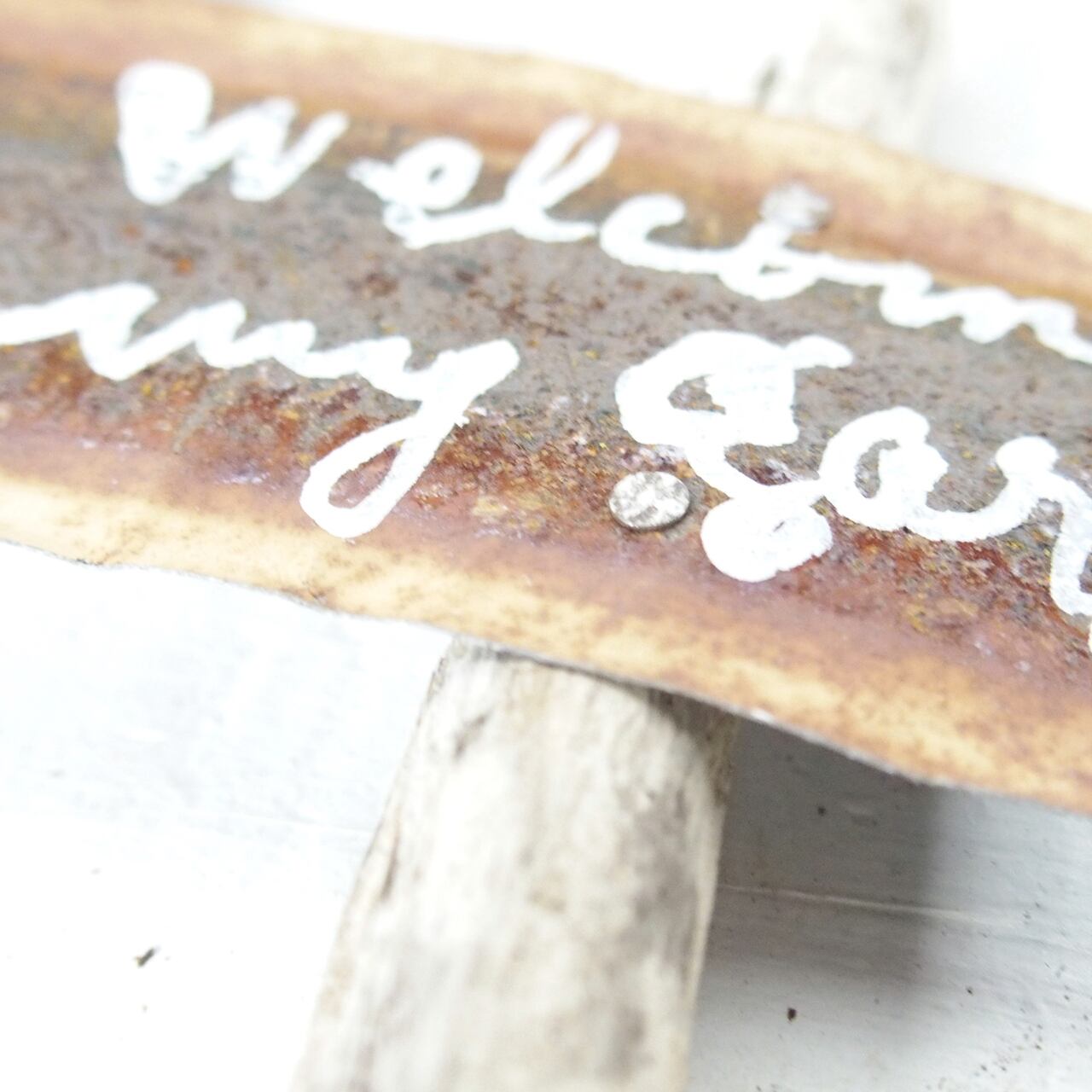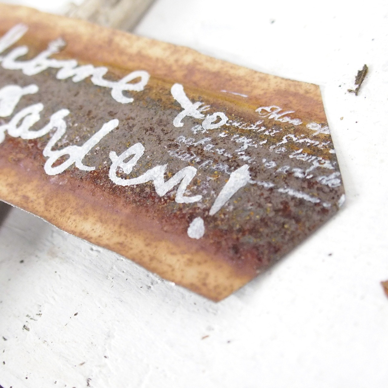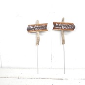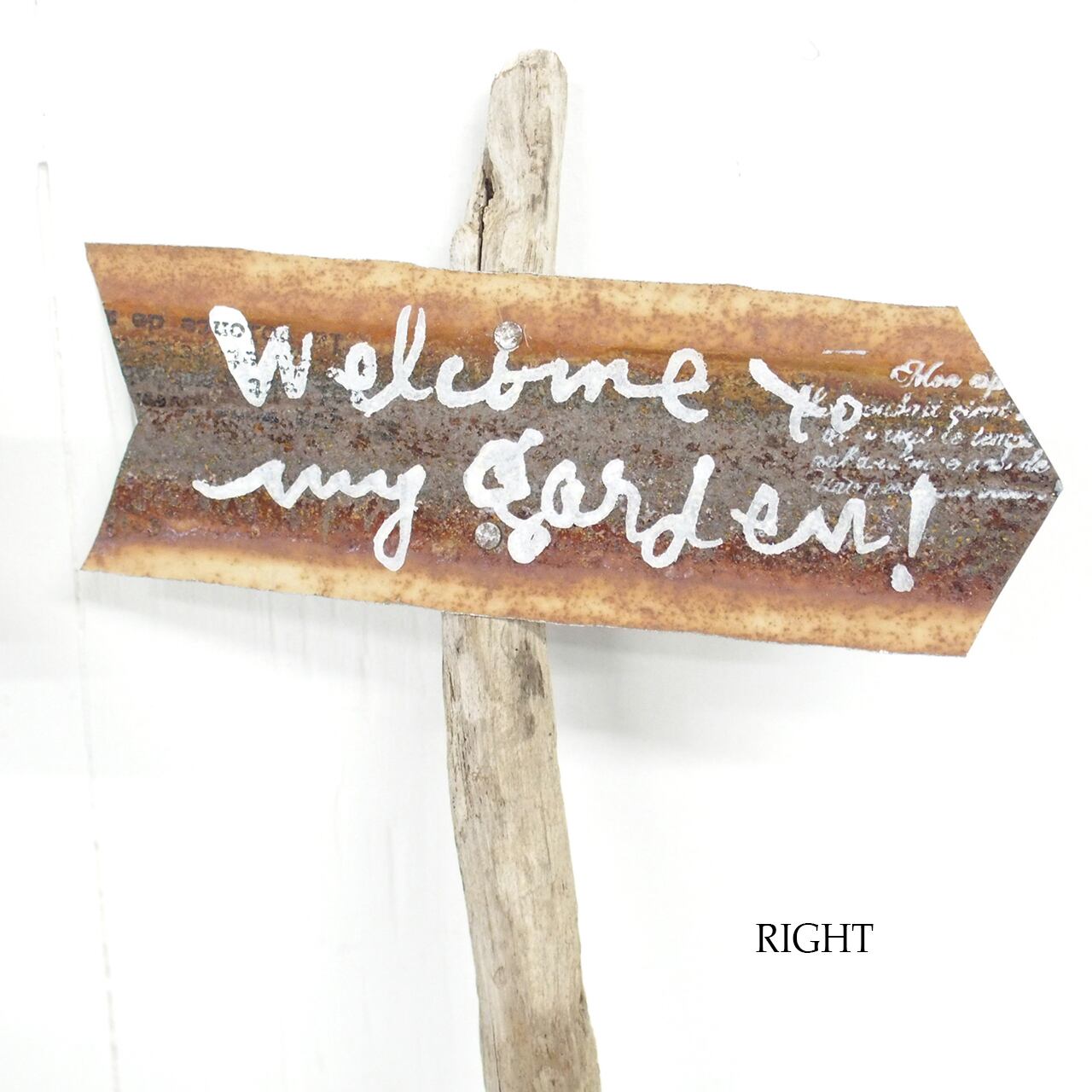 流木にブリキの矢印サインを付けた小さめのピックです♪
