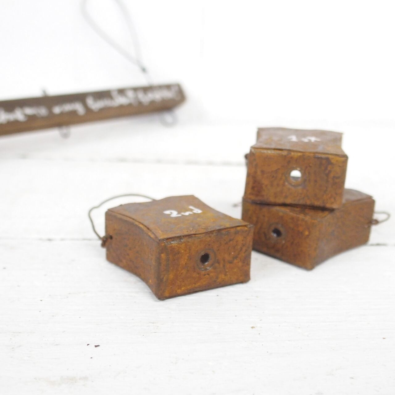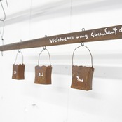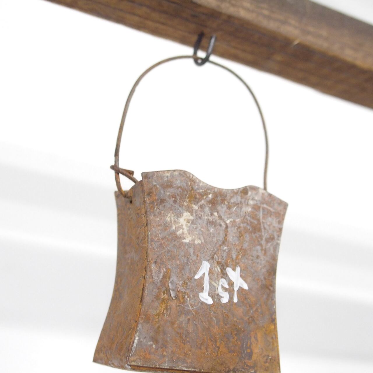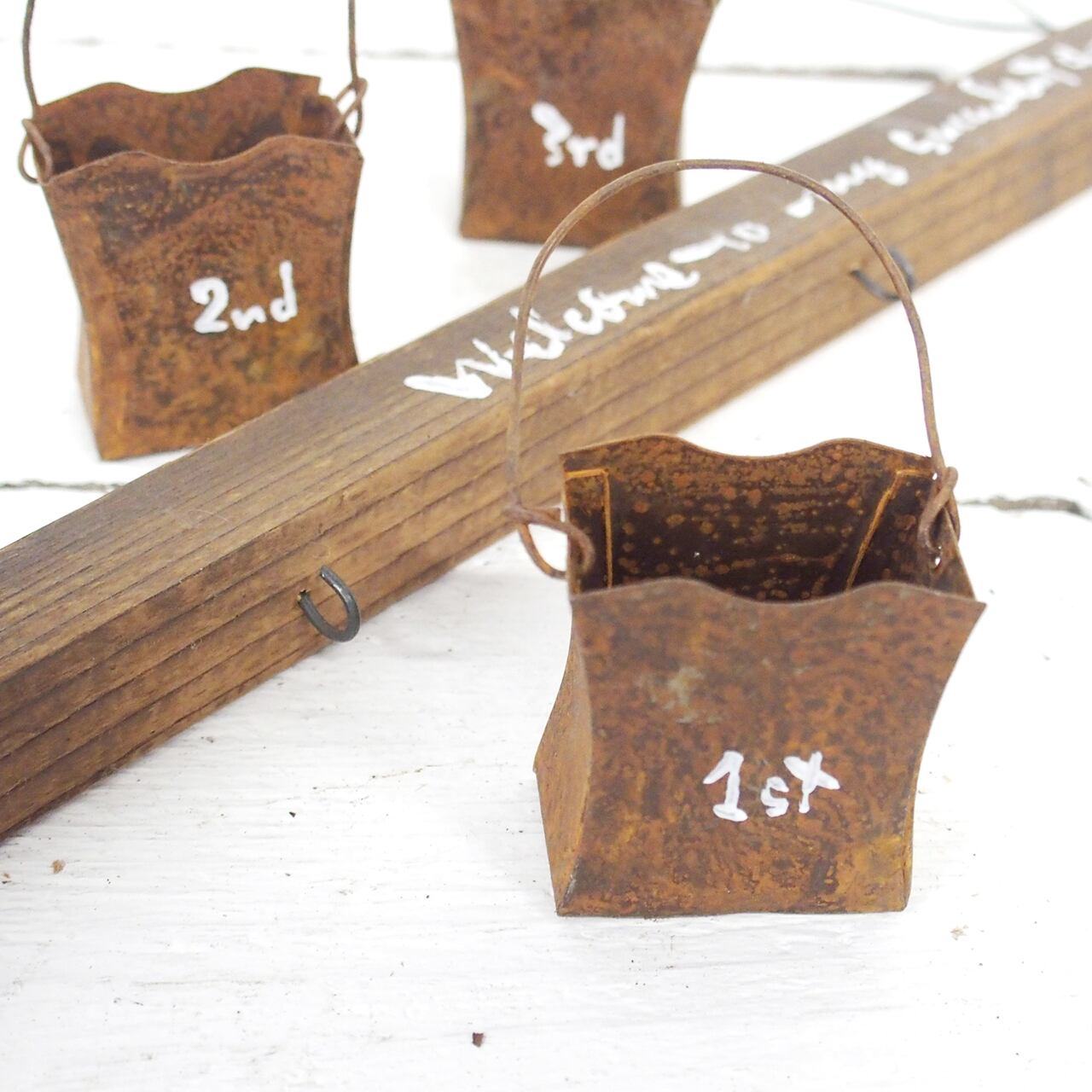 古材の棒に3個吊るしたハンギングミニプランターです♪
