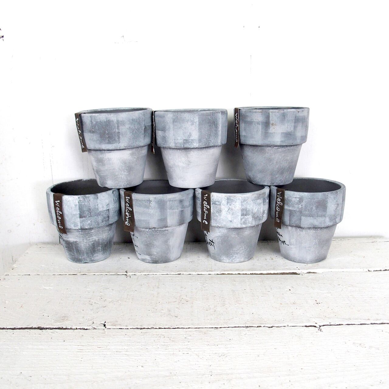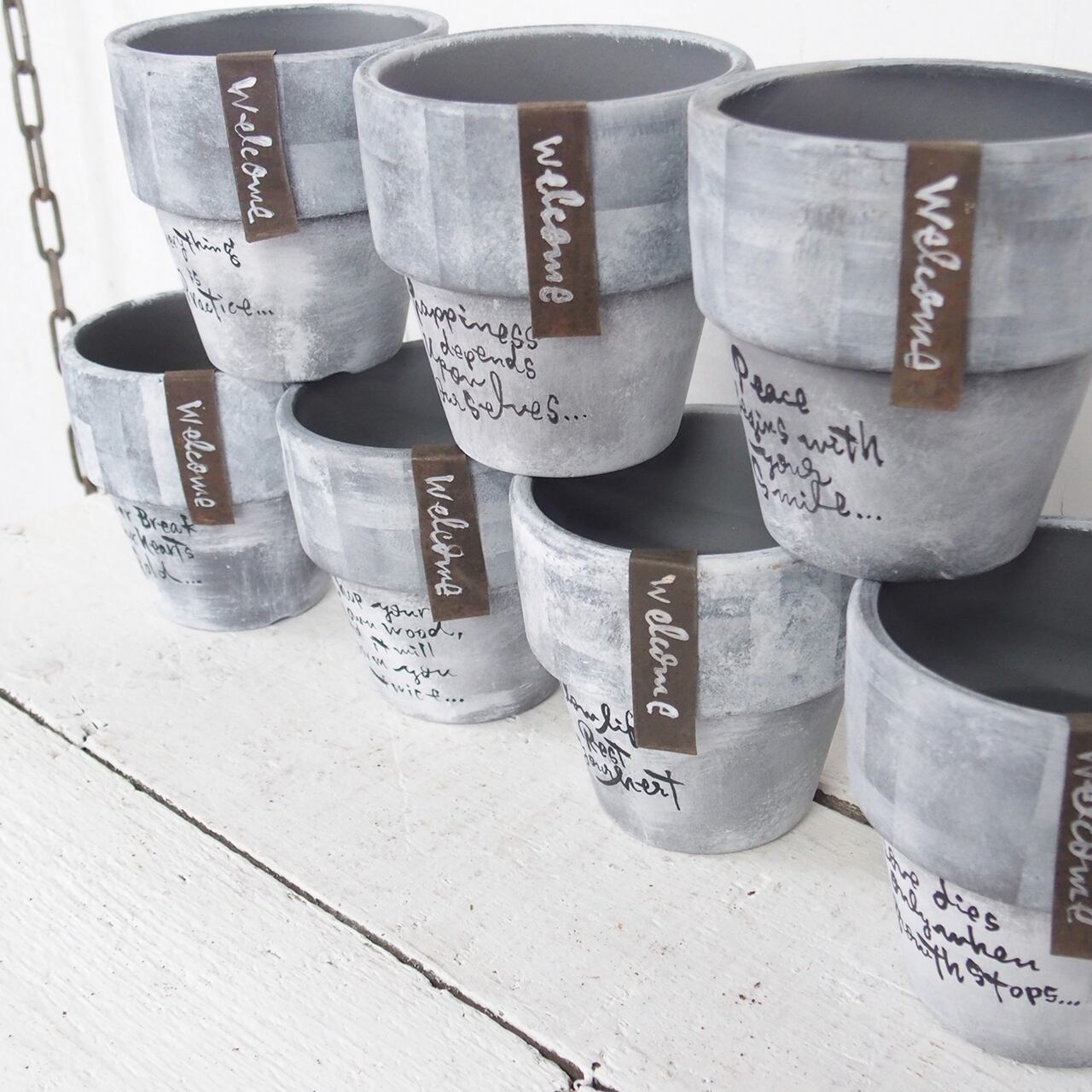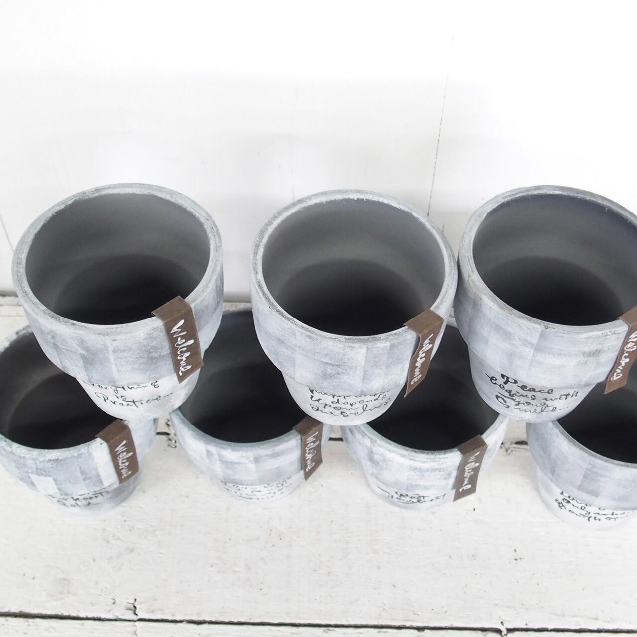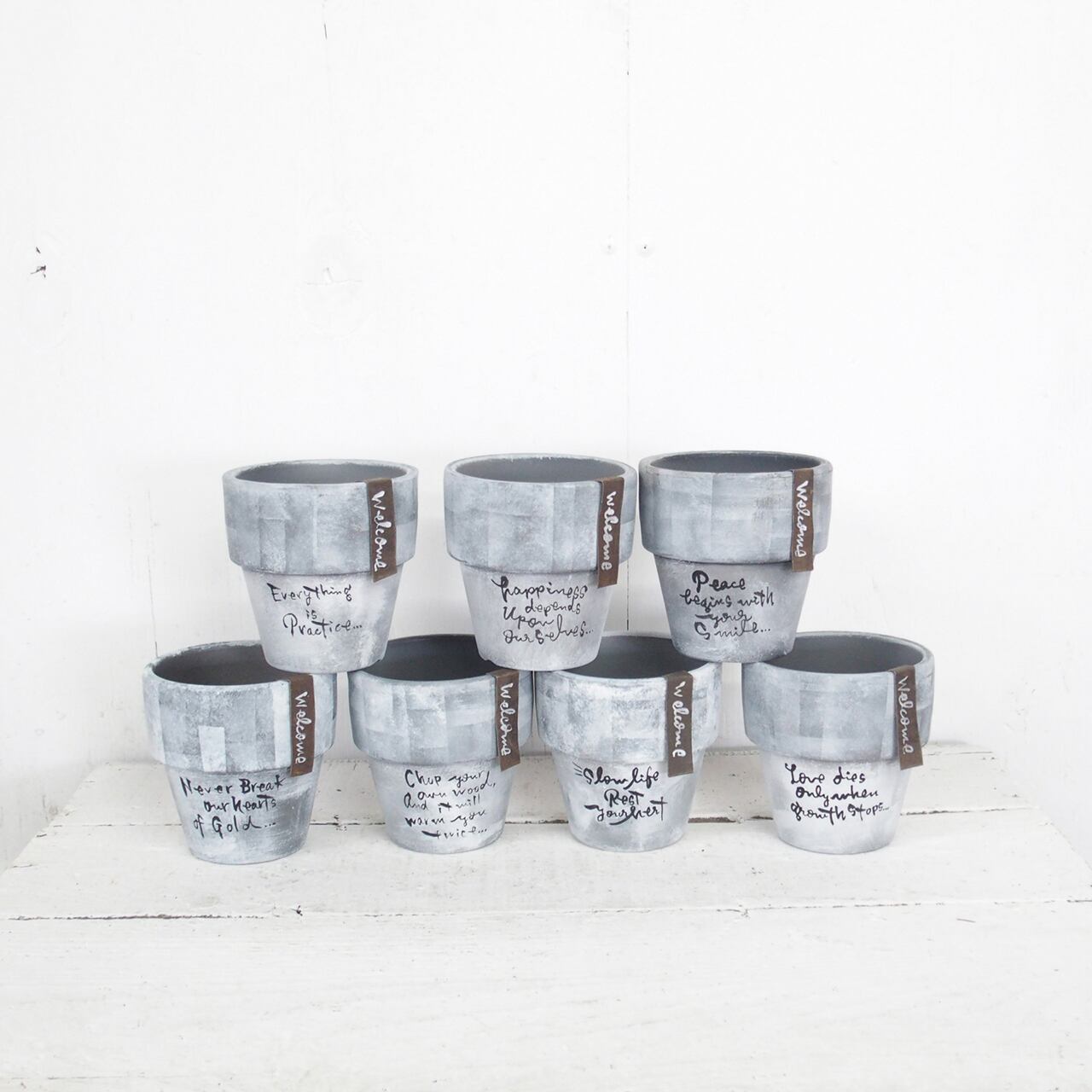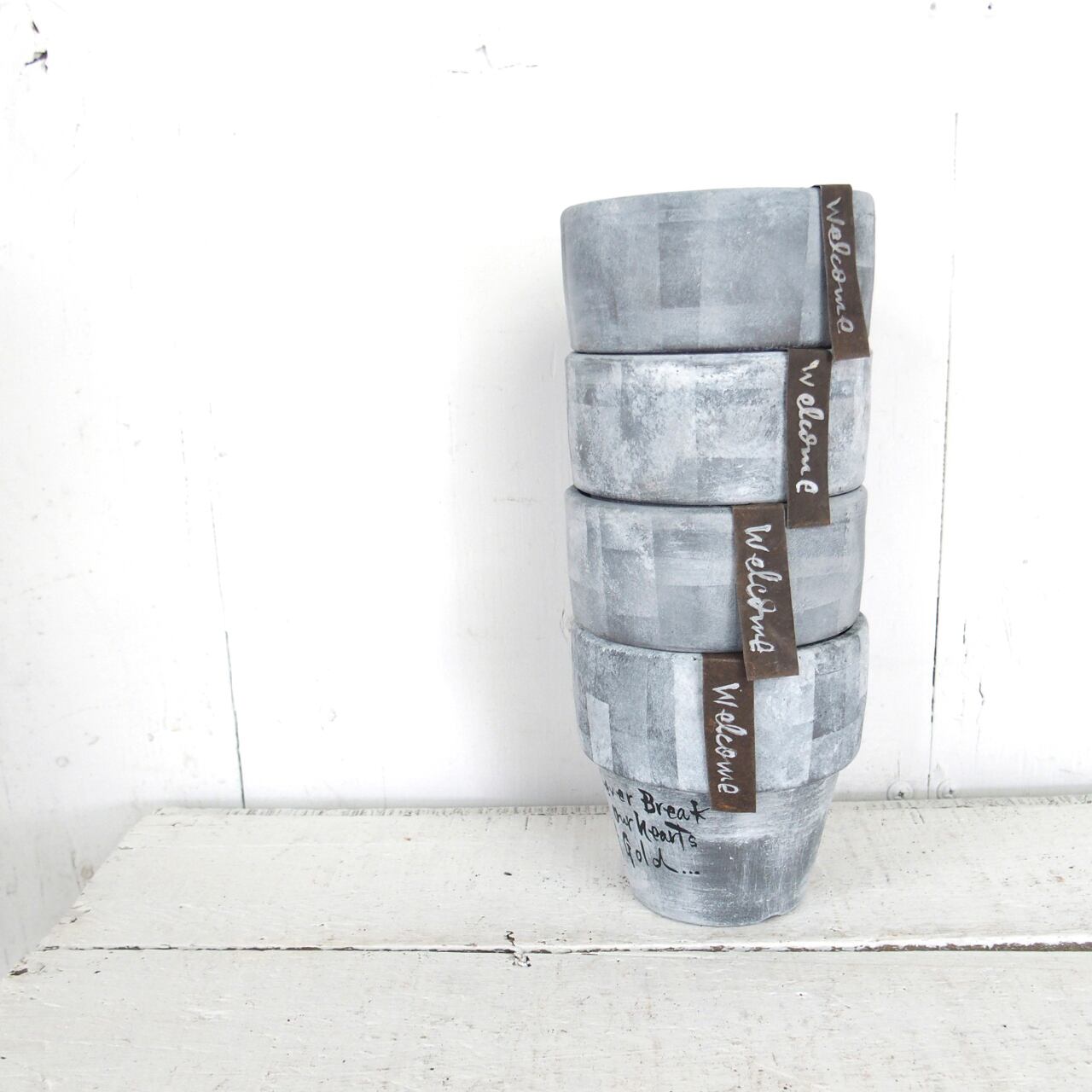 シルバーの鉢をベースに白のモザイクペイントです。