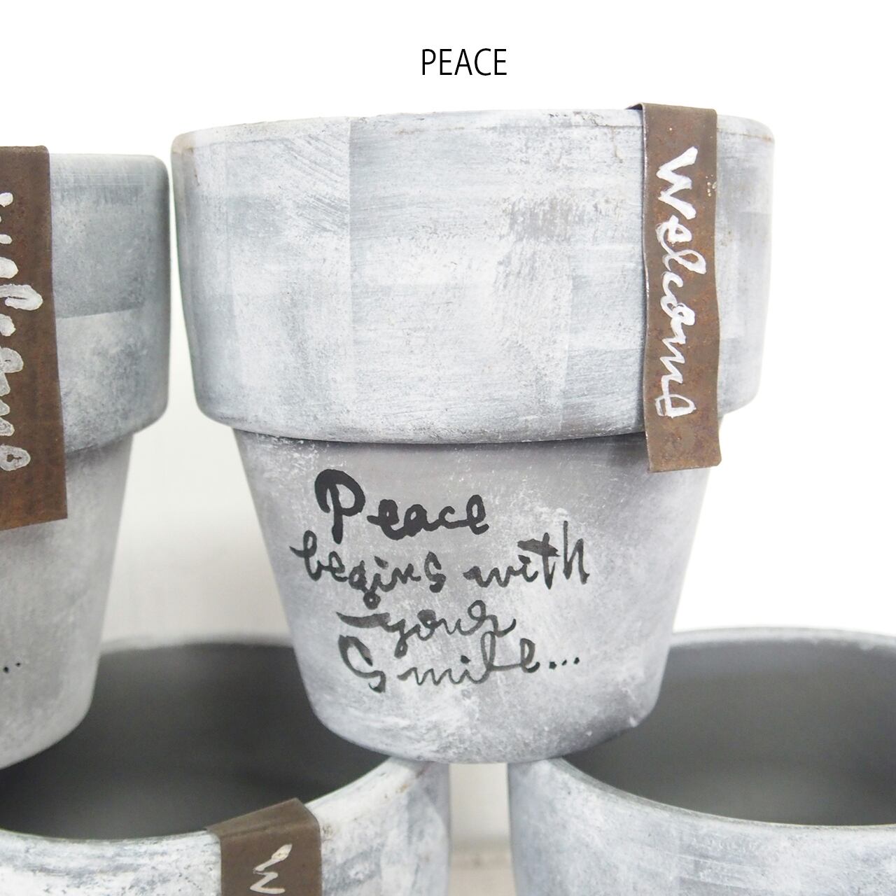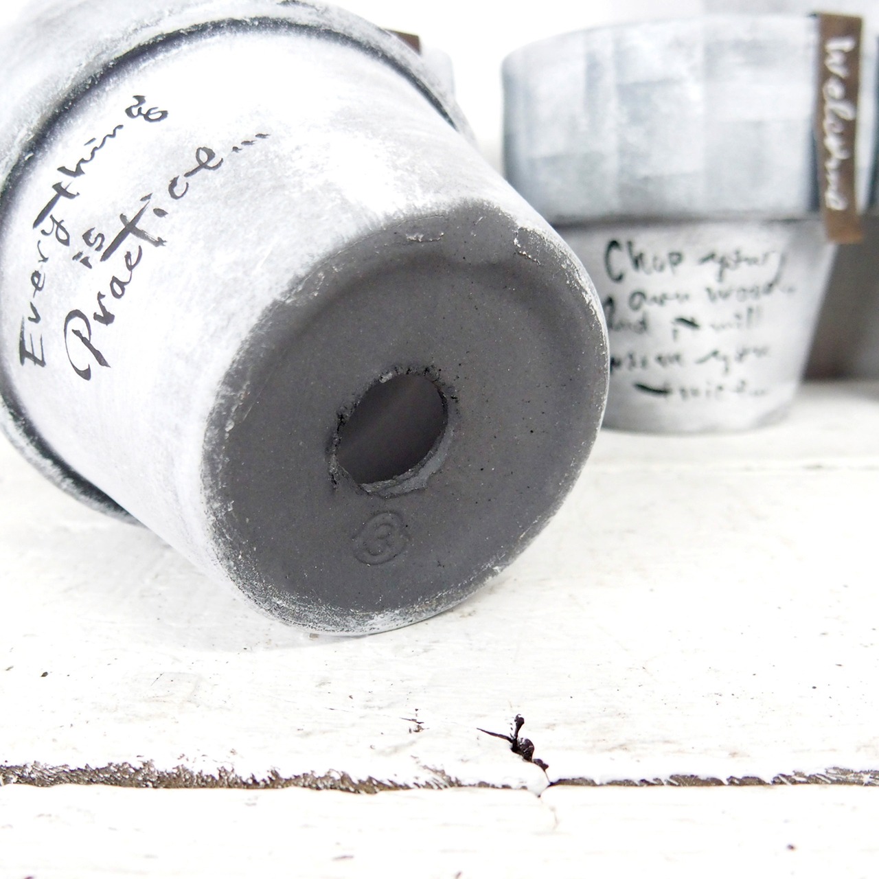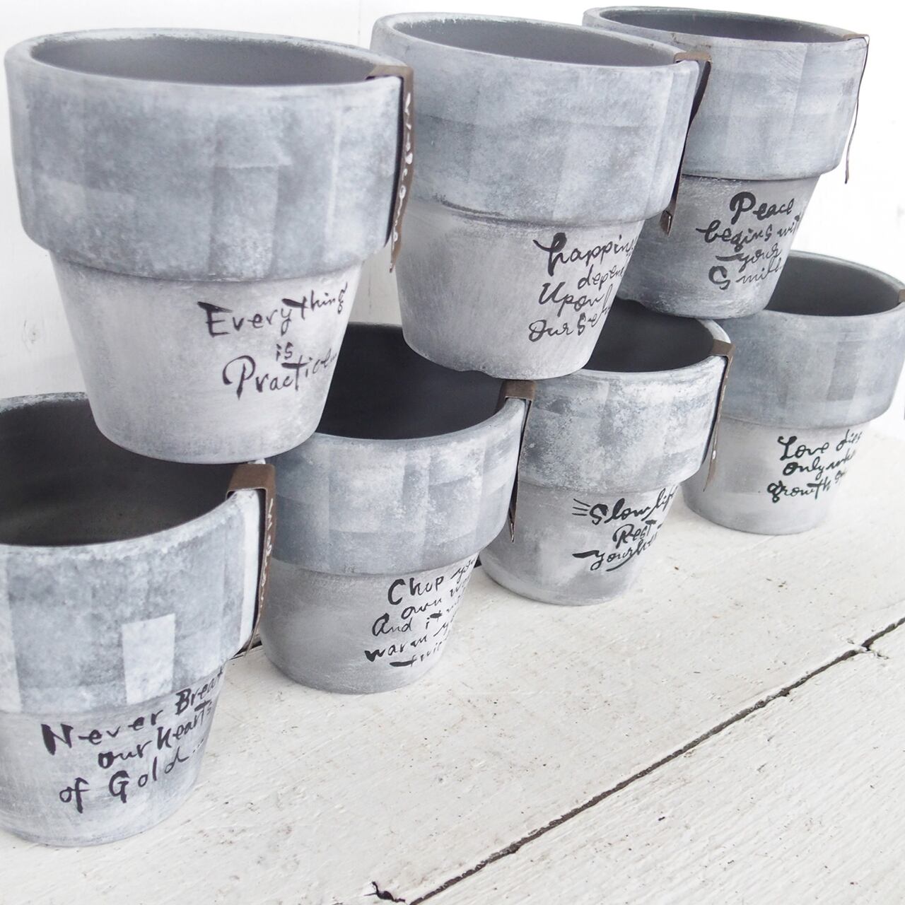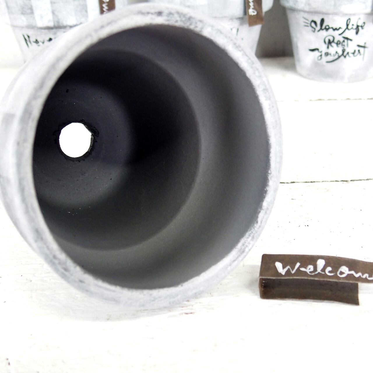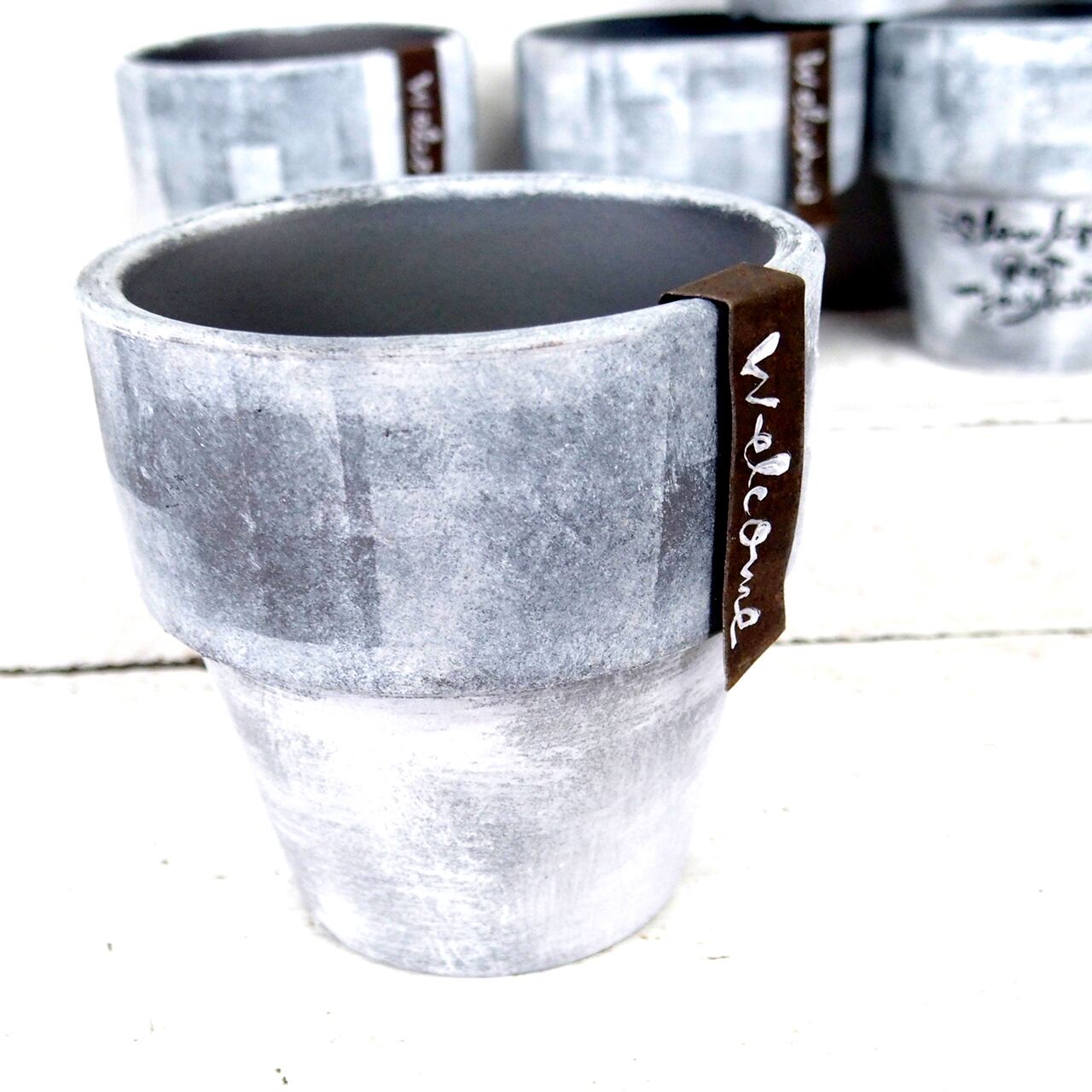 シルバーの鉢をベースに白のモザイクペイントです。