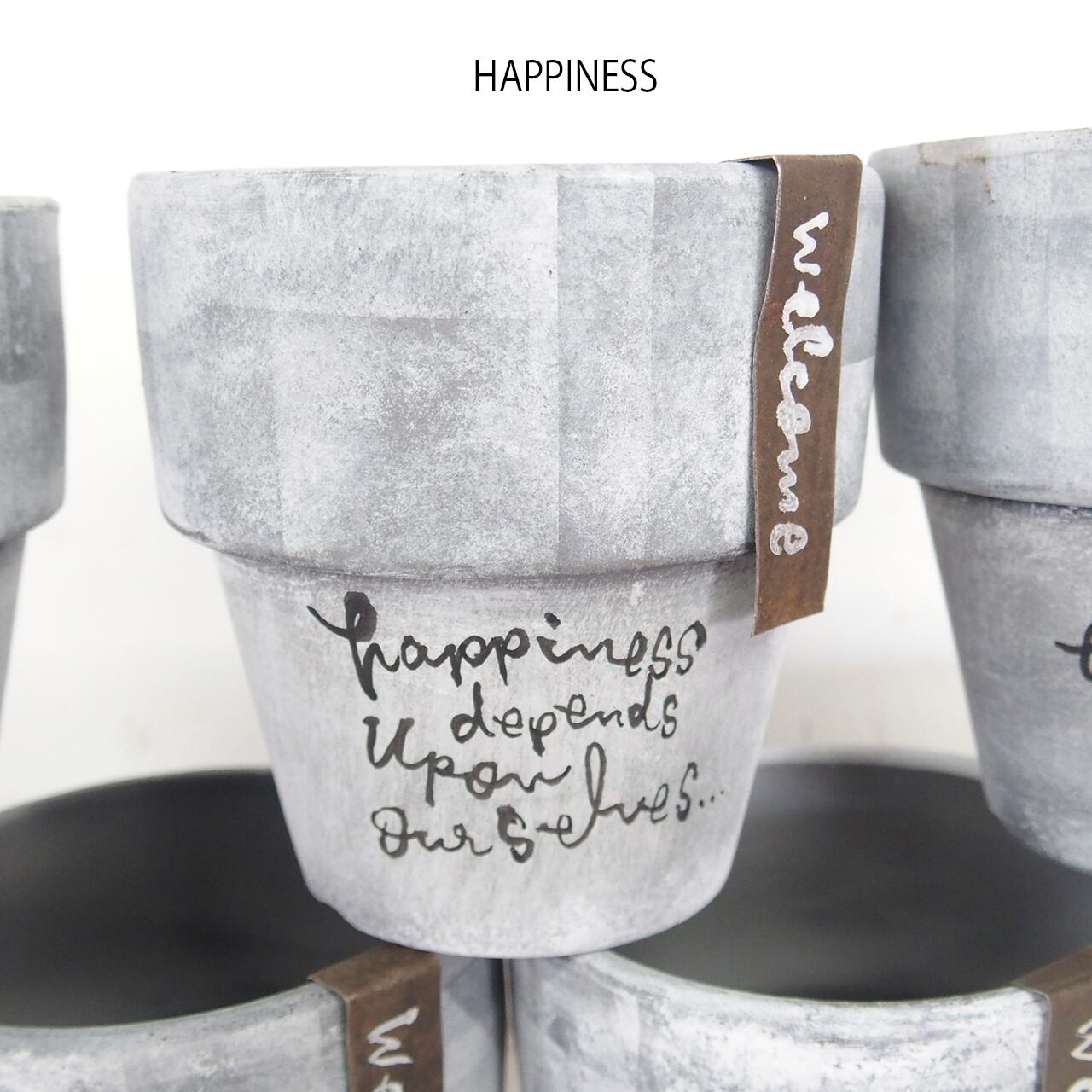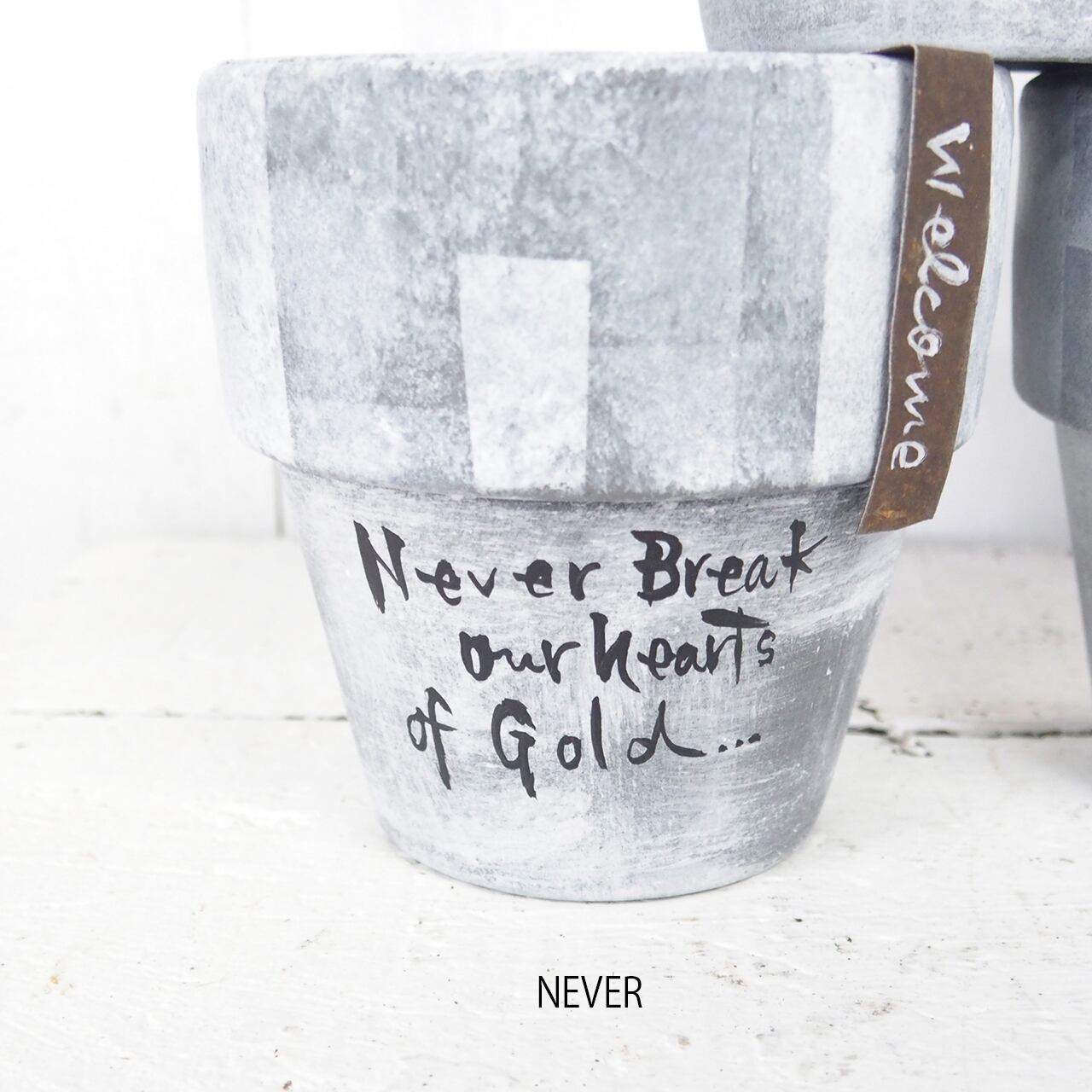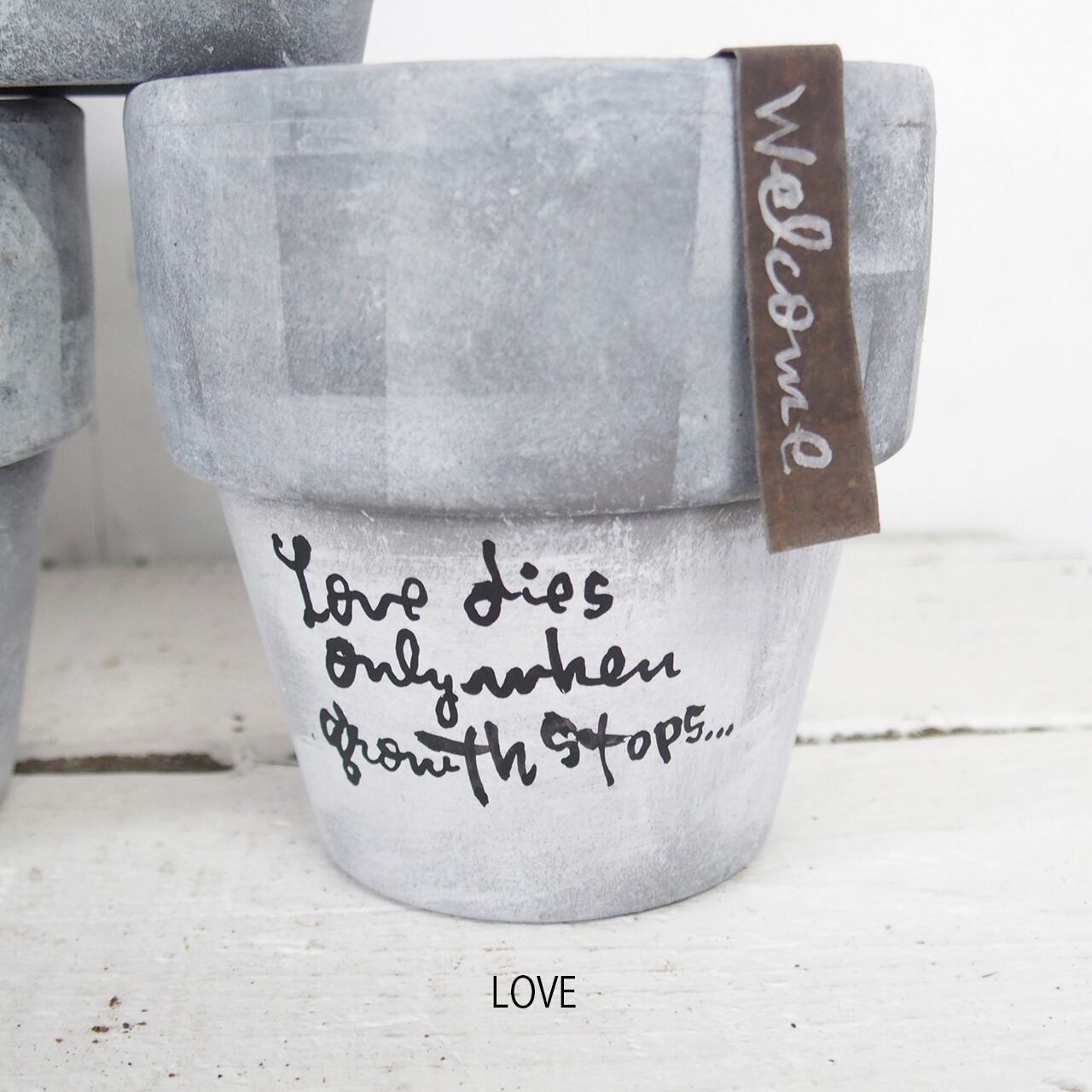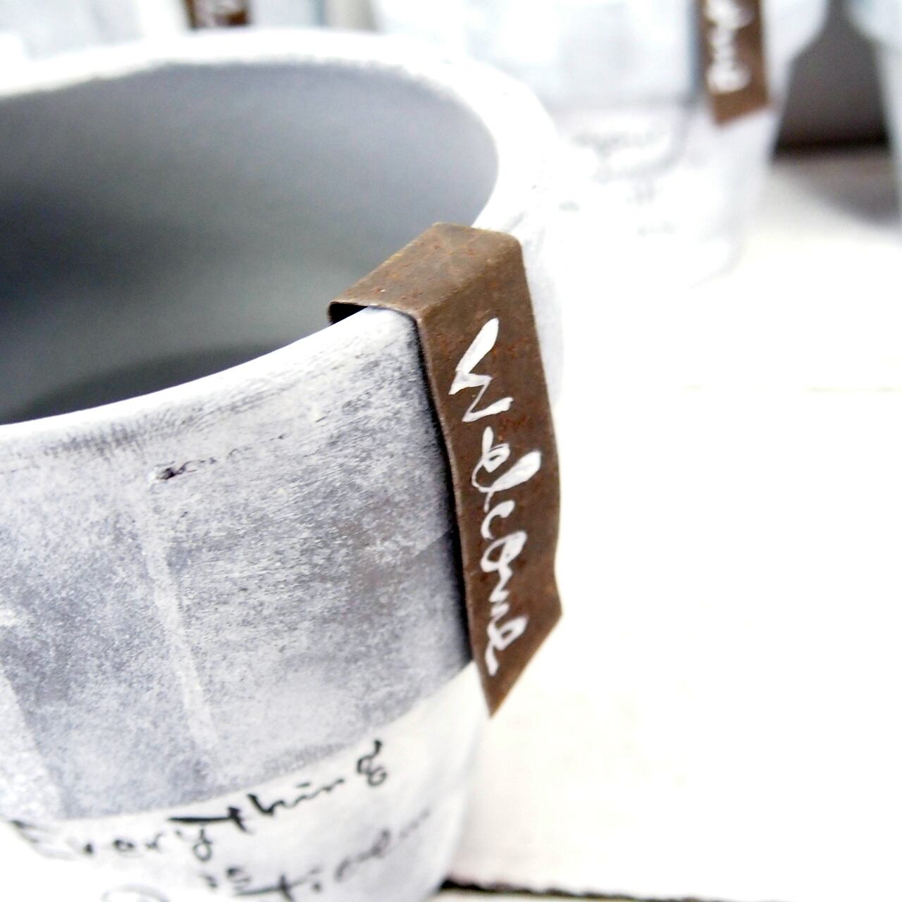 リムの太い可愛い鉢に文字を入れたアレンジ鉢です♪