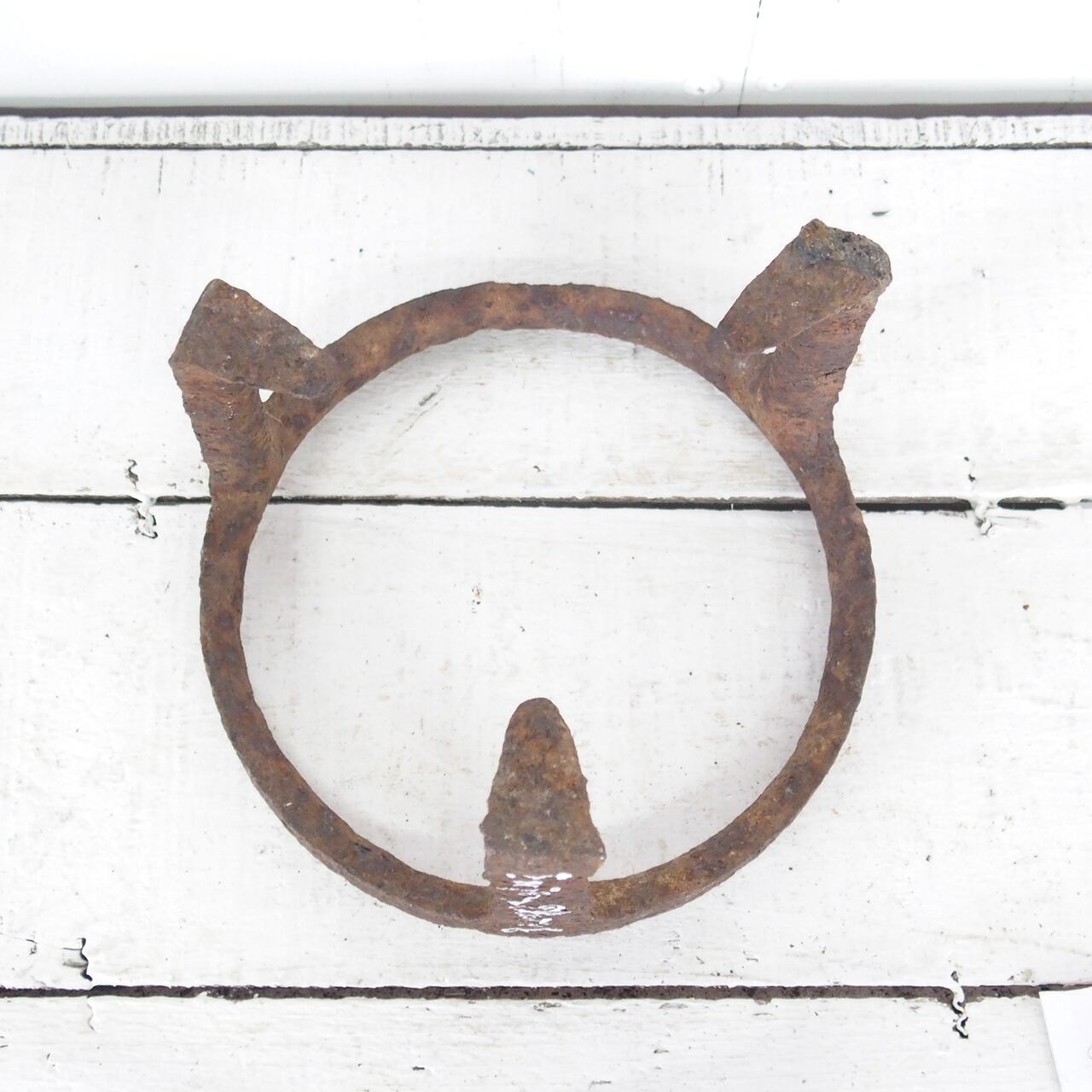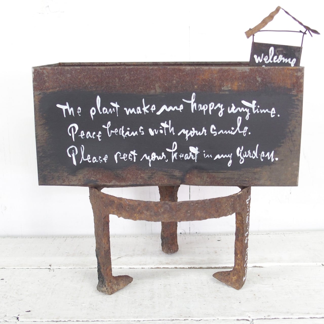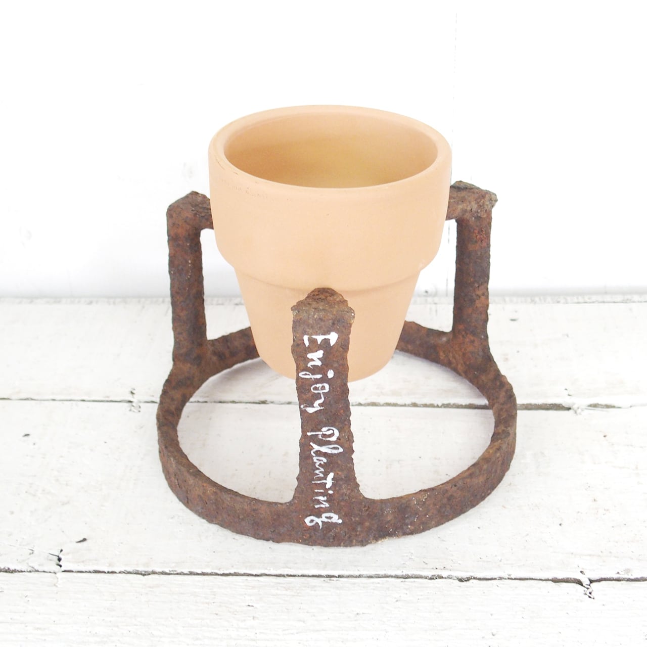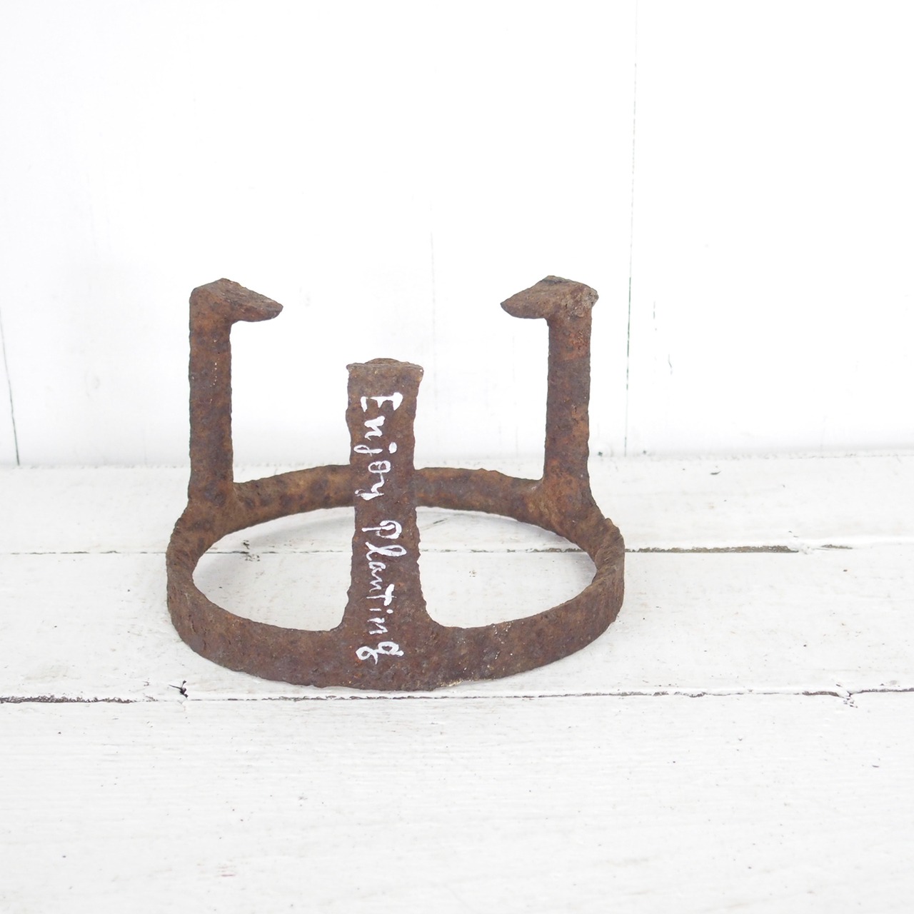 古いサビサビの五徳に文字を入れたシンプルな作品です♪