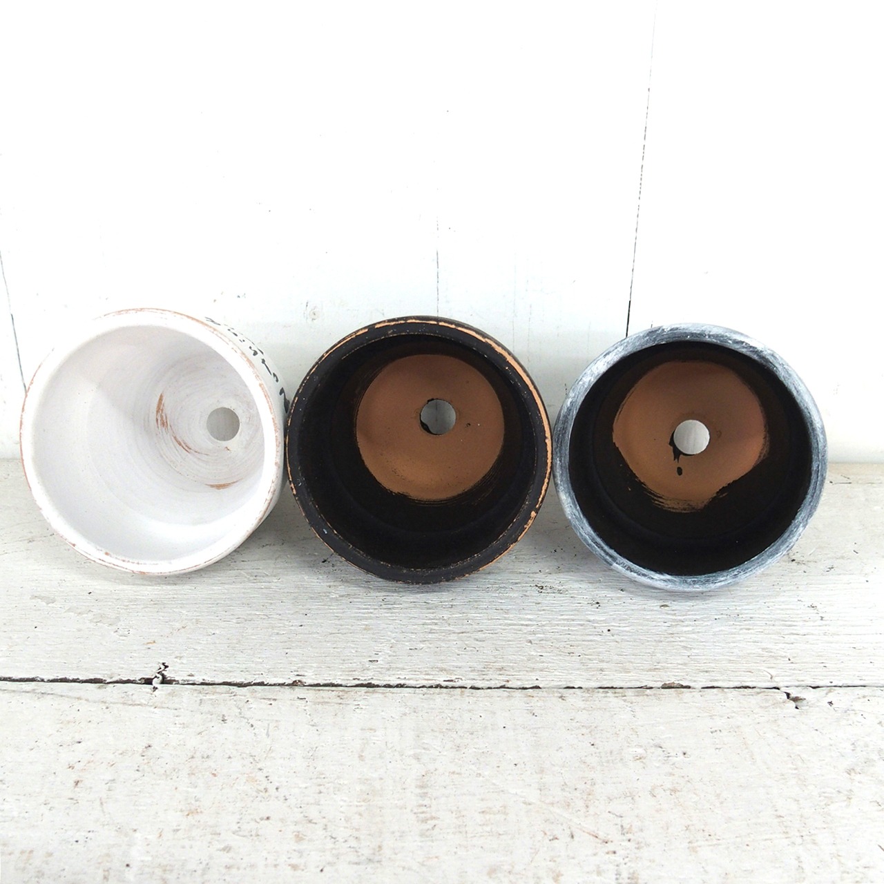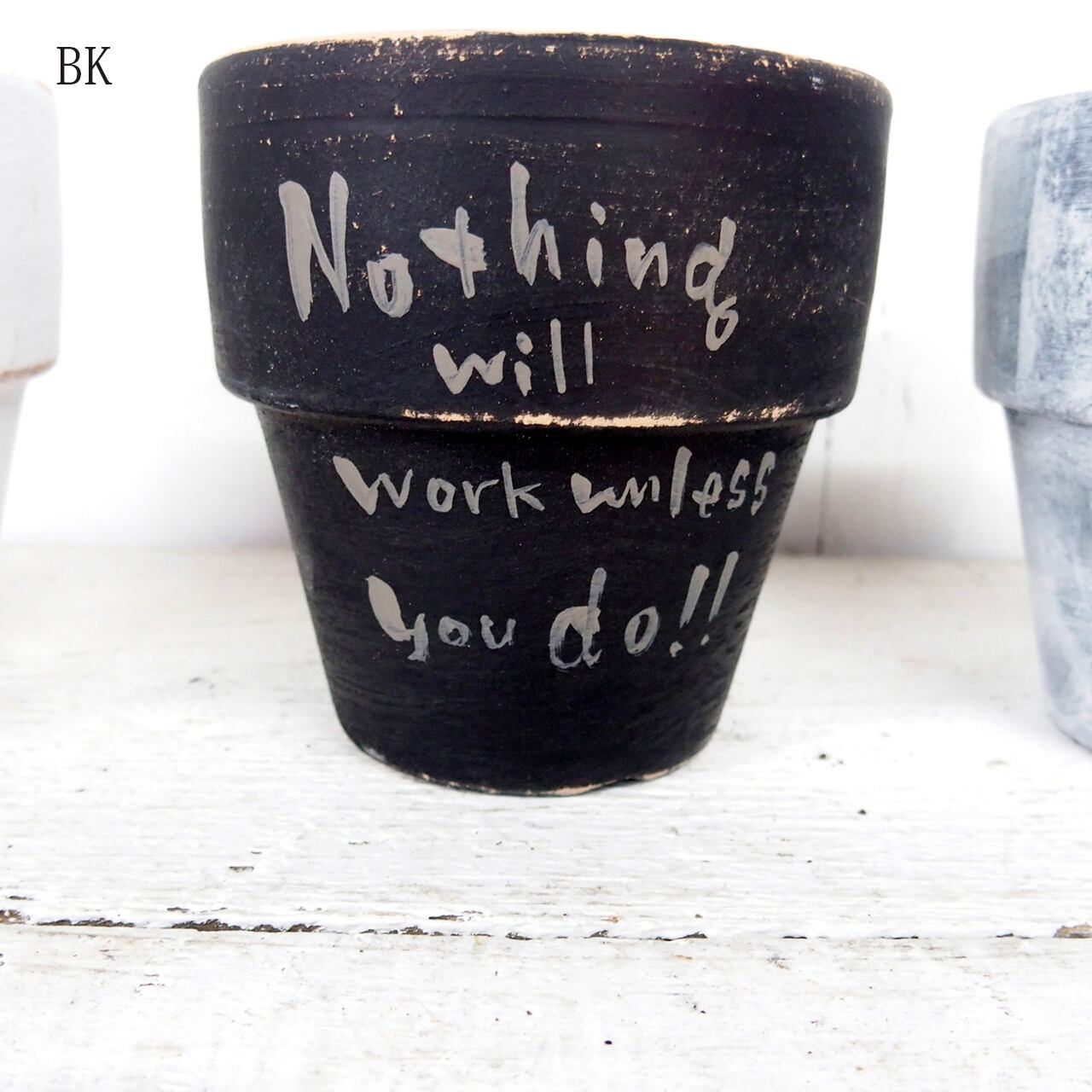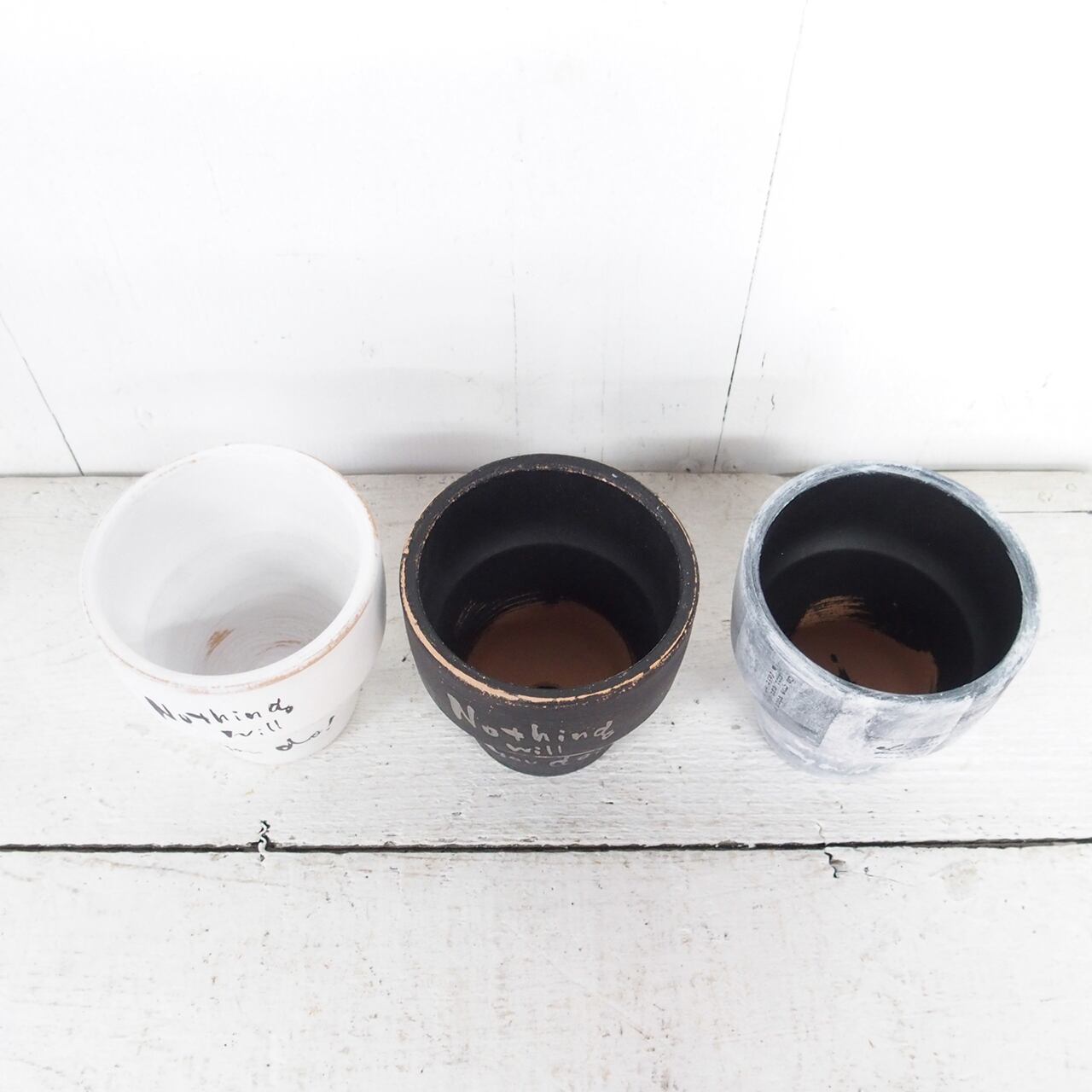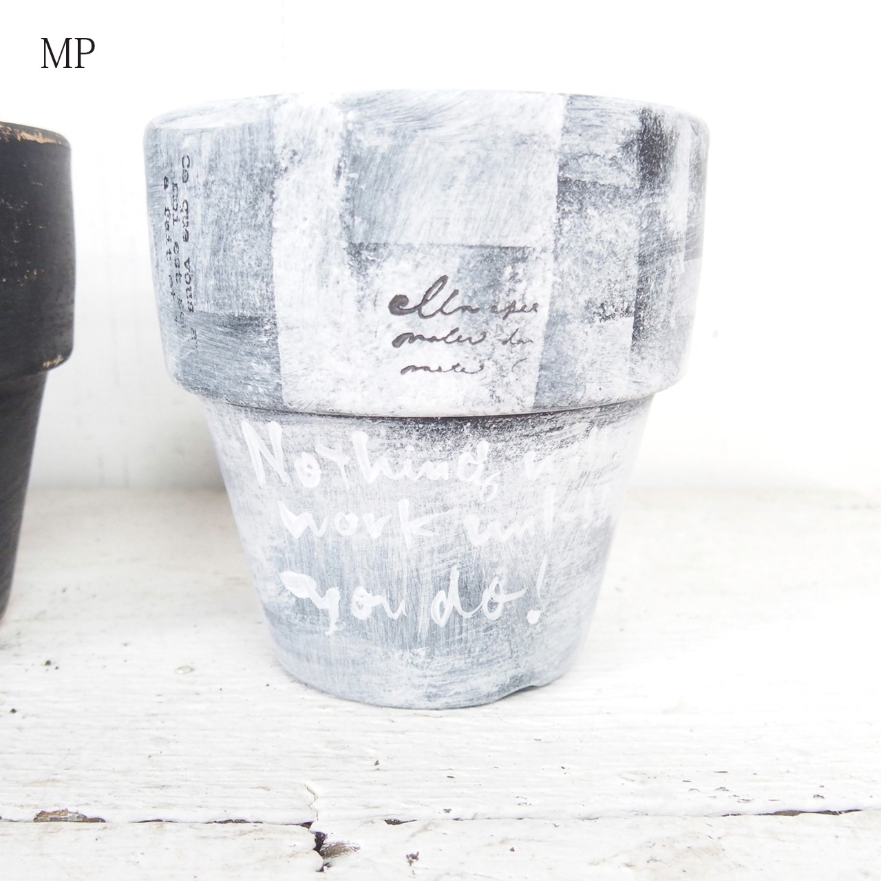 リムの太い可愛い鉢をペイントし文字を入れたアレンジ鉢です♪