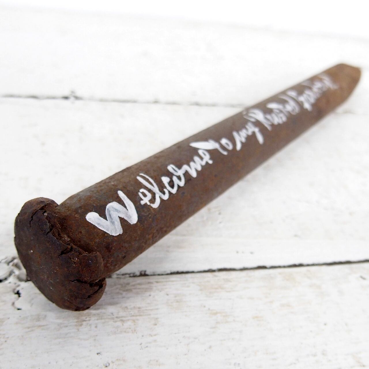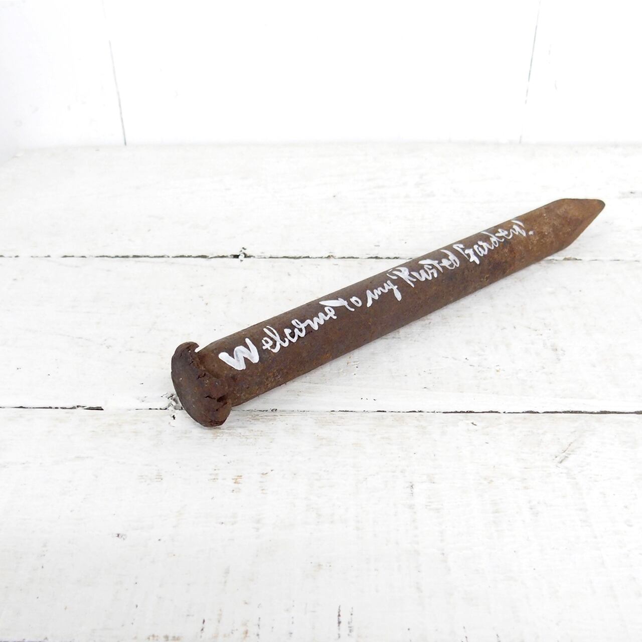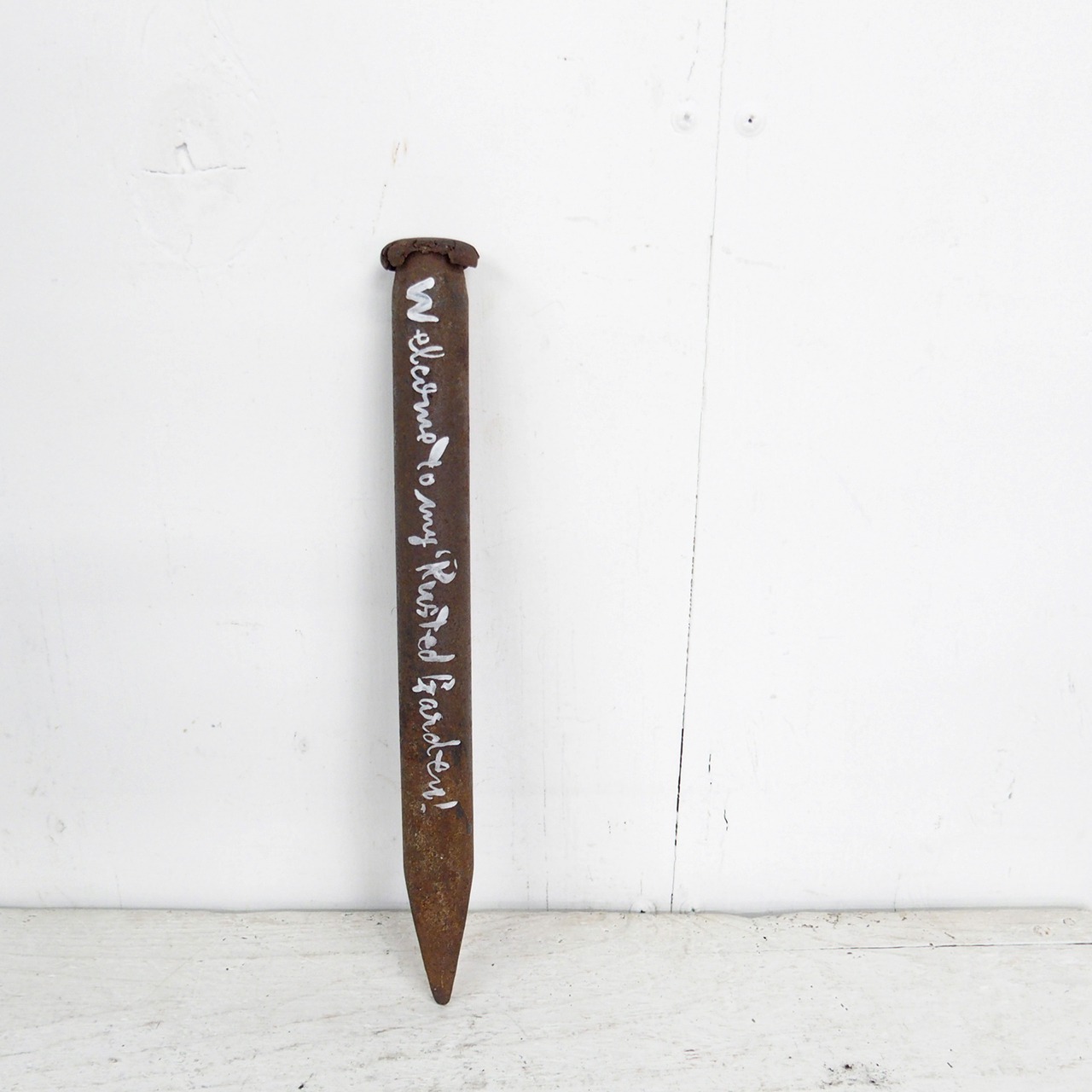 こちらはサビサビの古いたがねに文字を入れたサインです♪