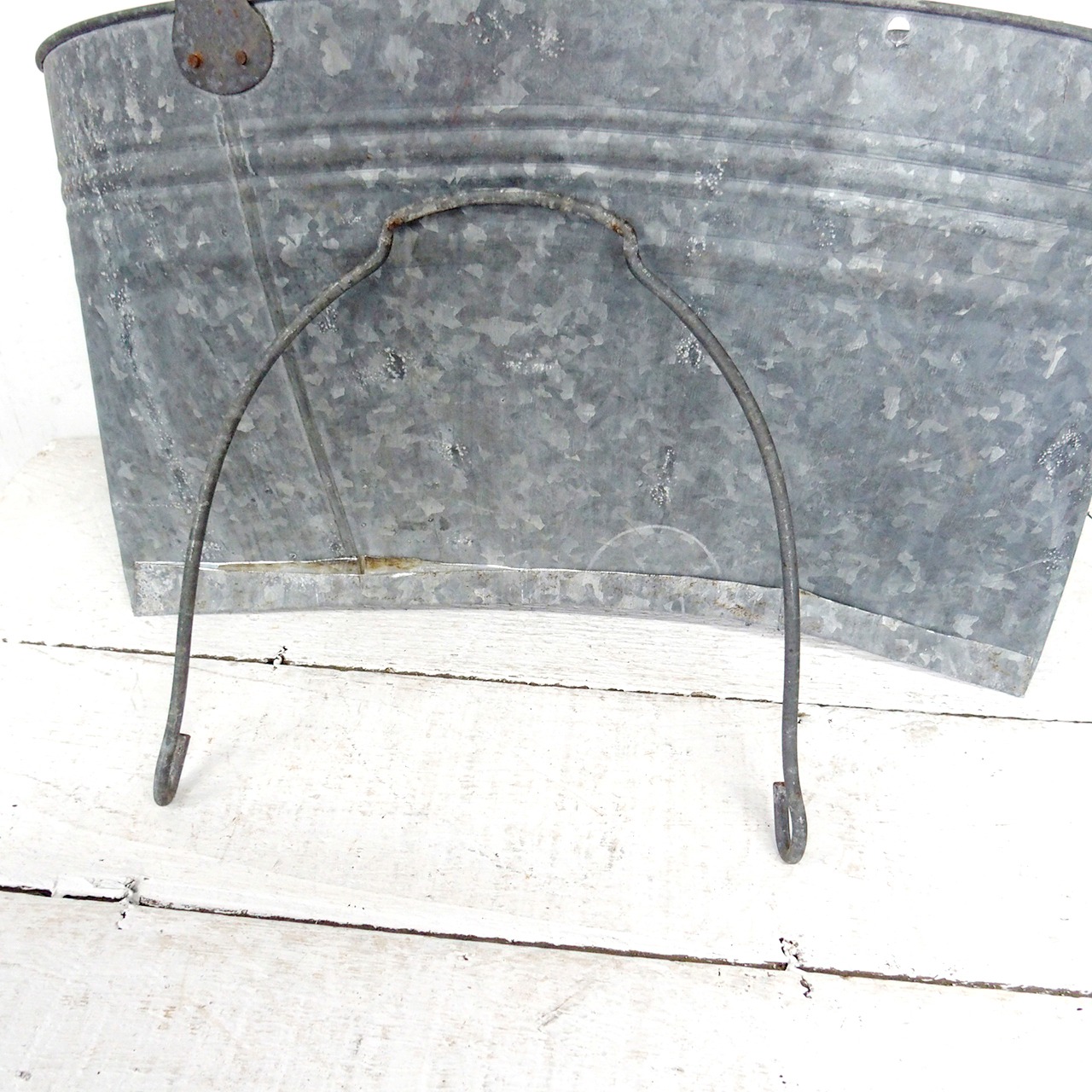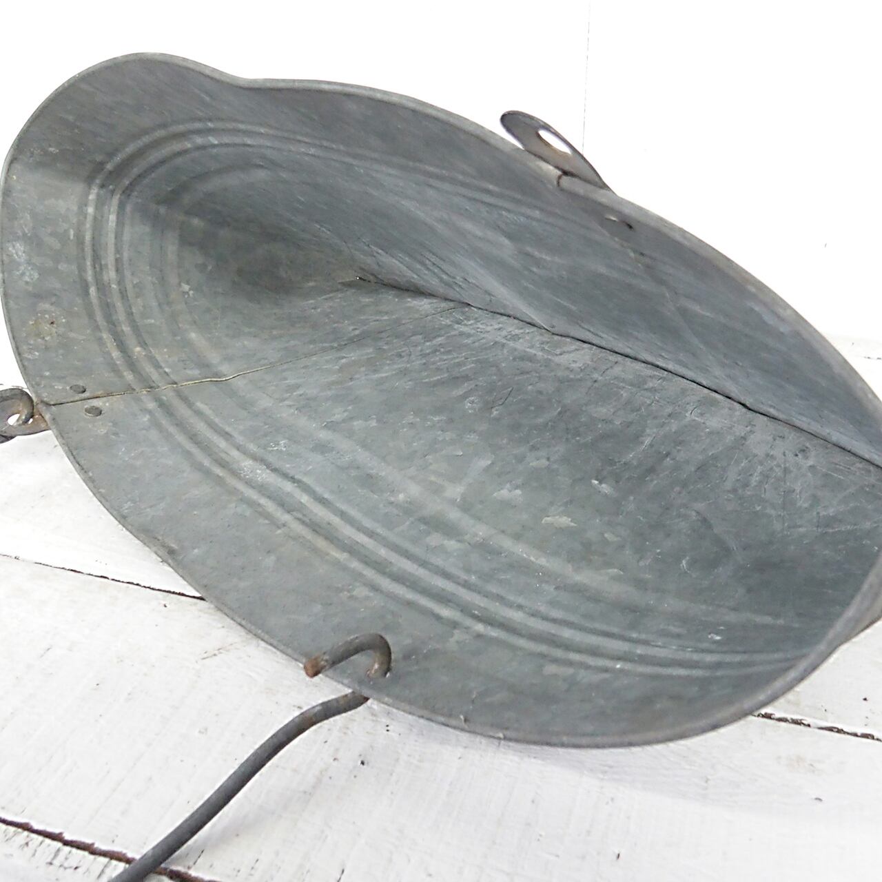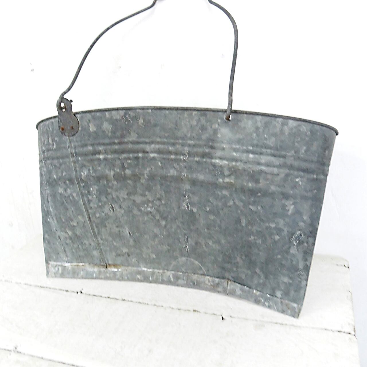 古いブリキのバケツの底を切り取り潰して作った