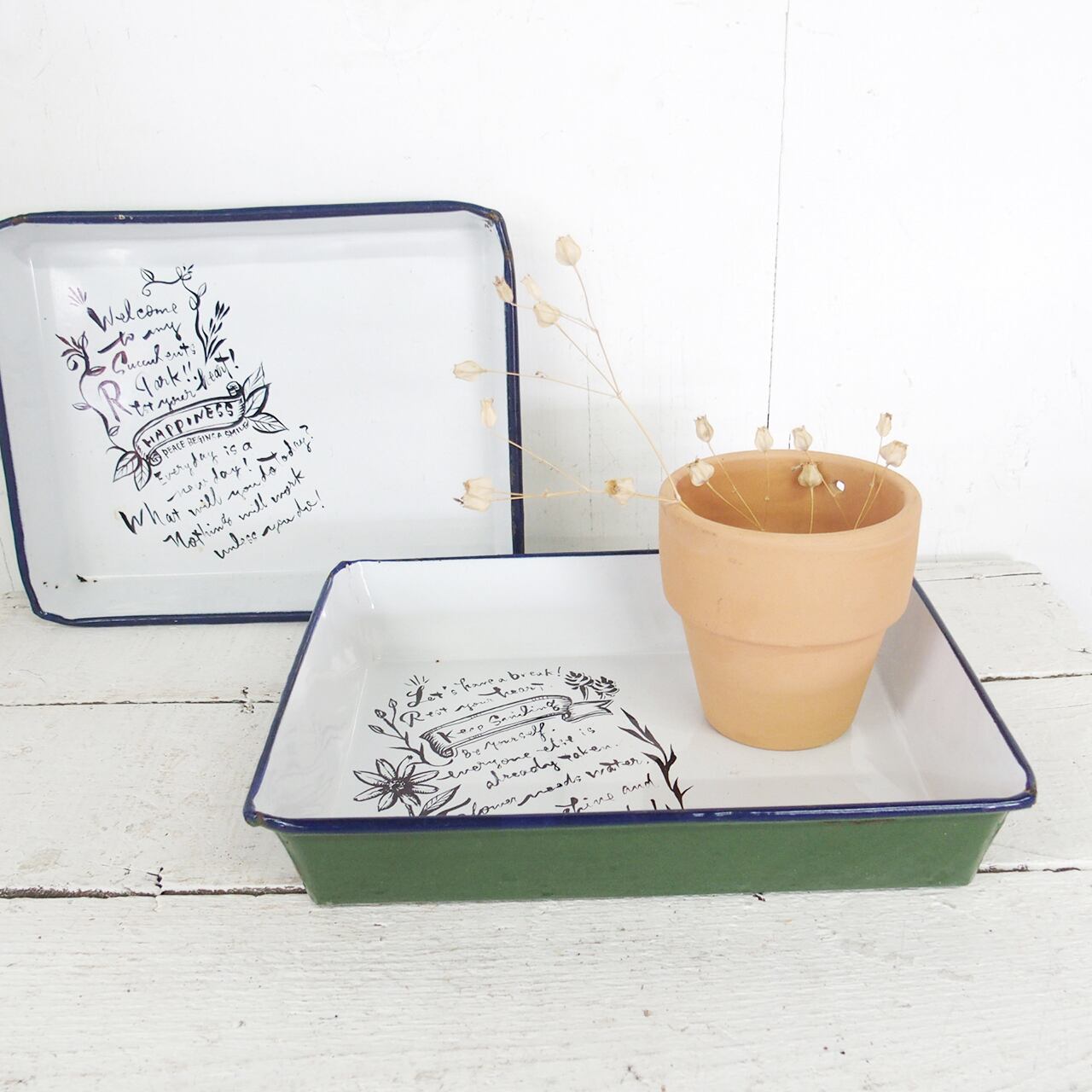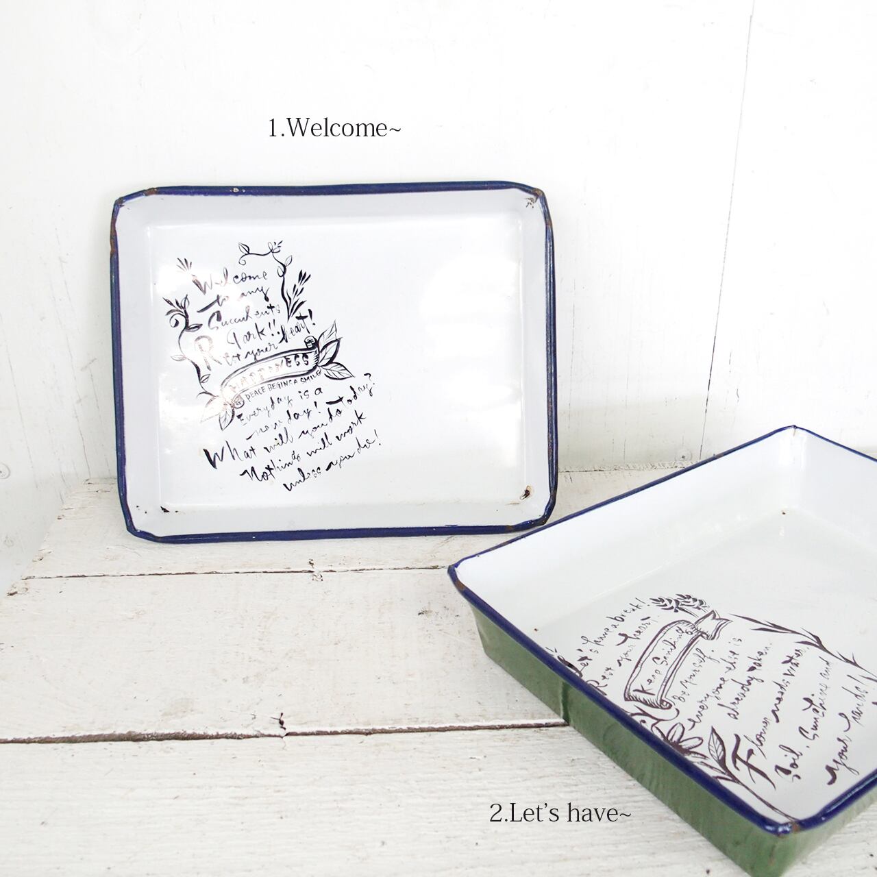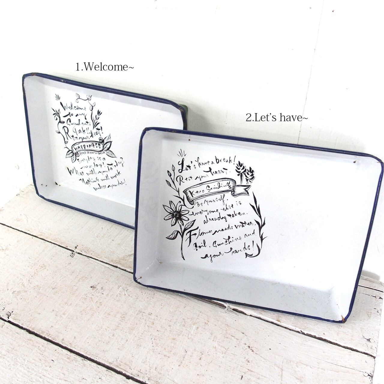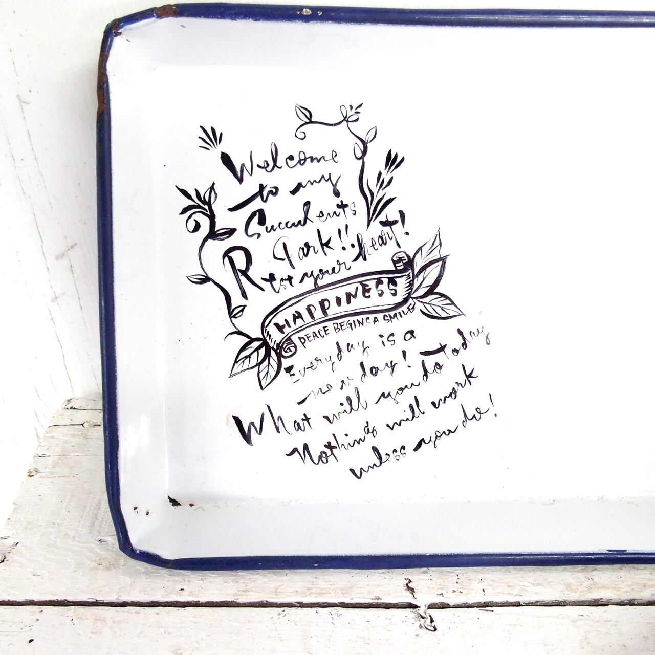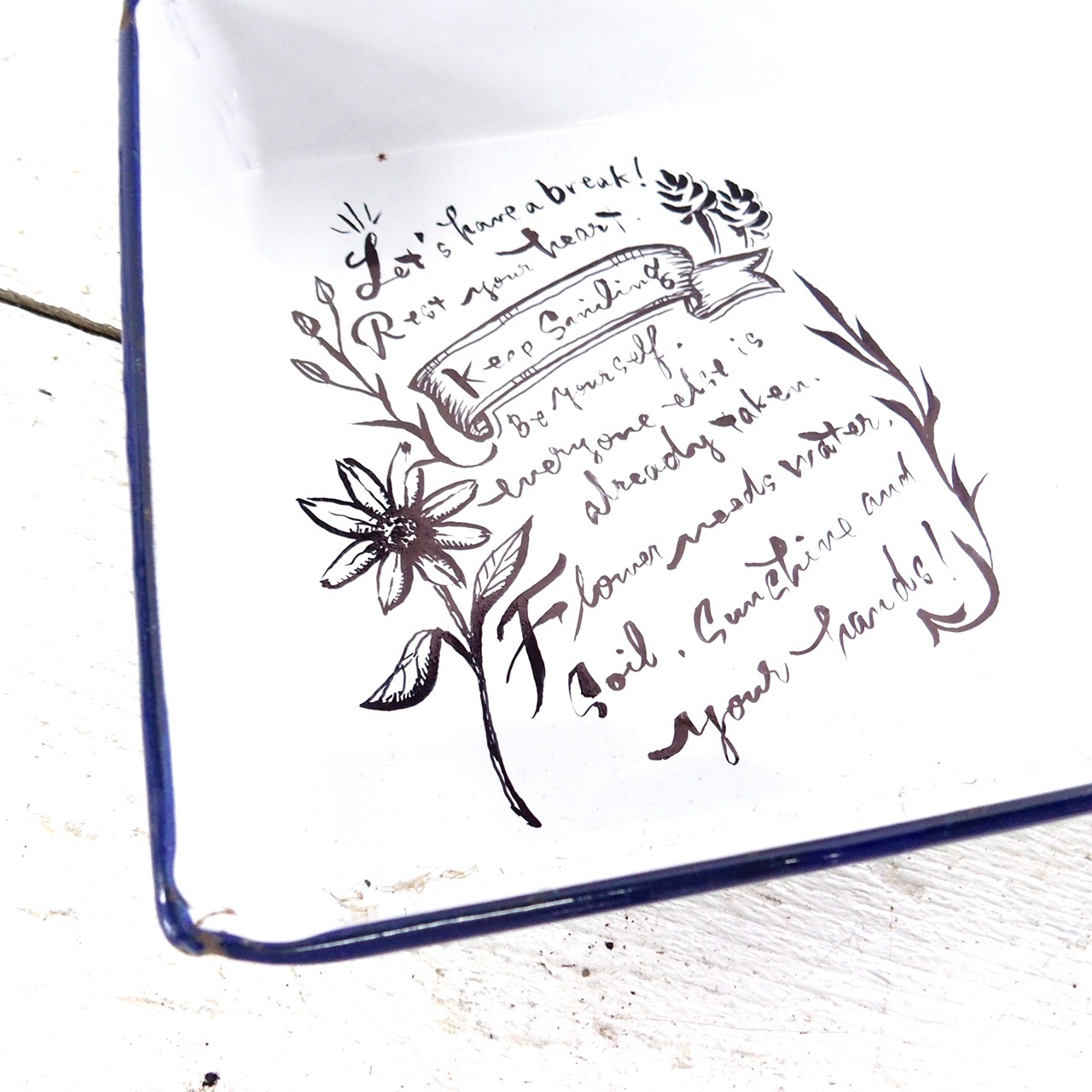 ホーローのバットに文字とイラストを入れたアレンジ作品です♪