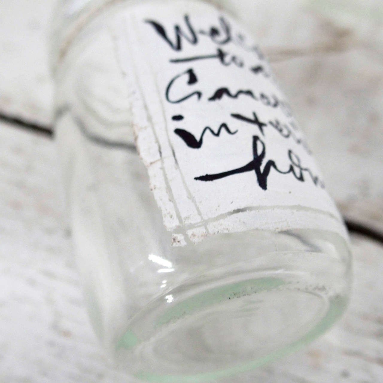 デッドストックの空き瓶(新古品)に文字を入れてアレンジしました♪