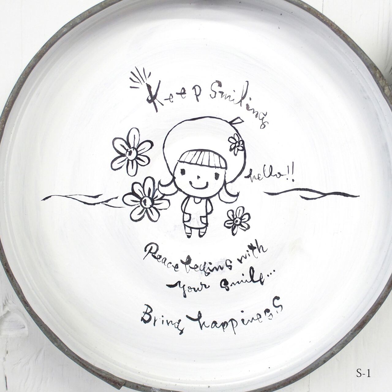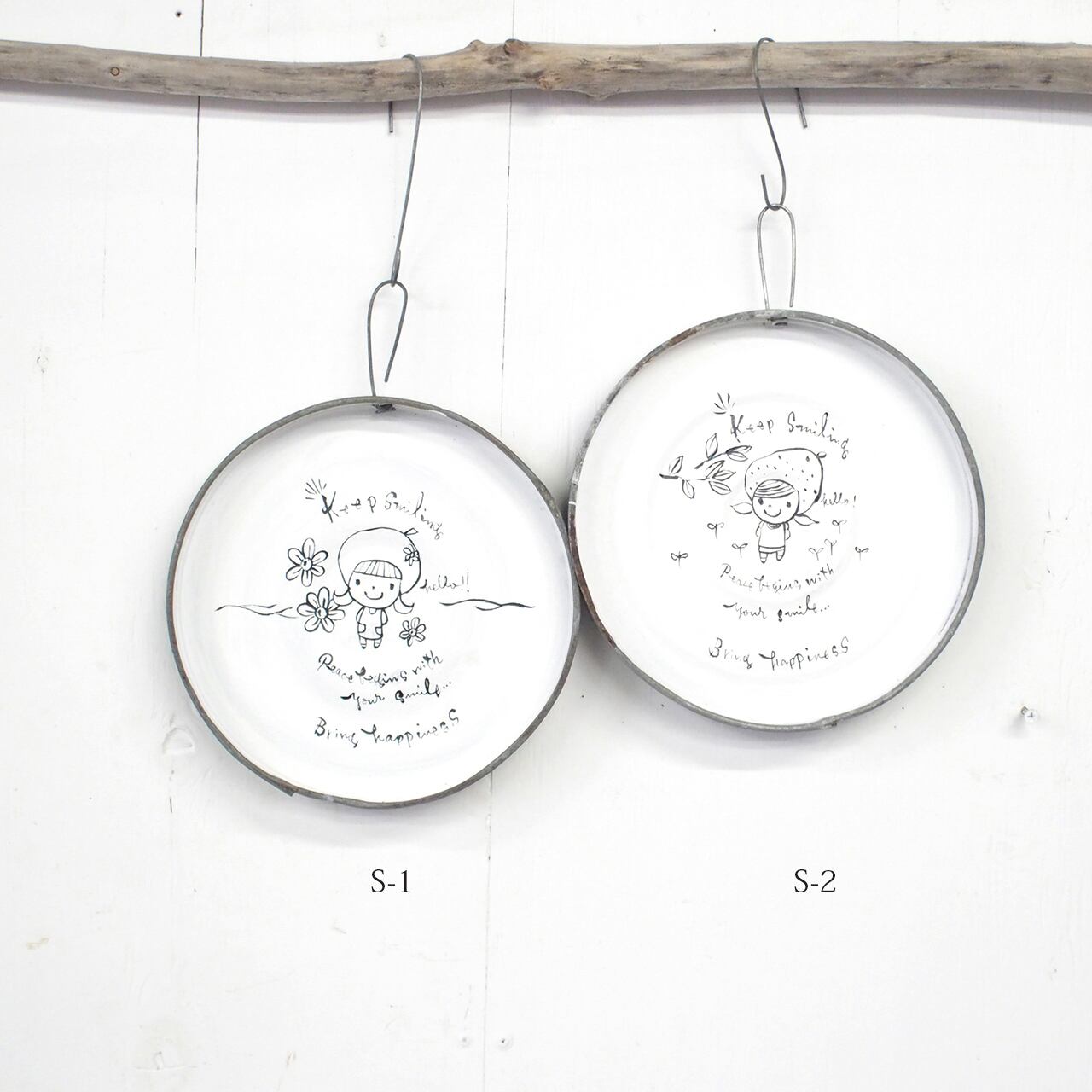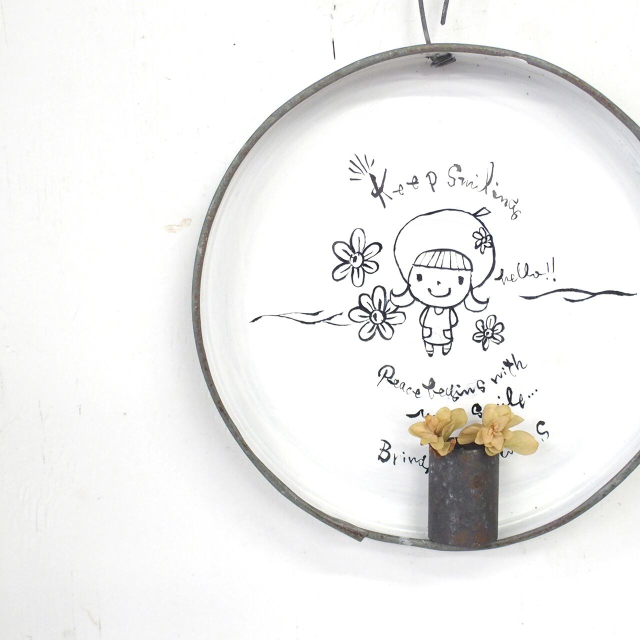【リメイクサイン】ブリキ丸サイン Keep smiling 小サイズ