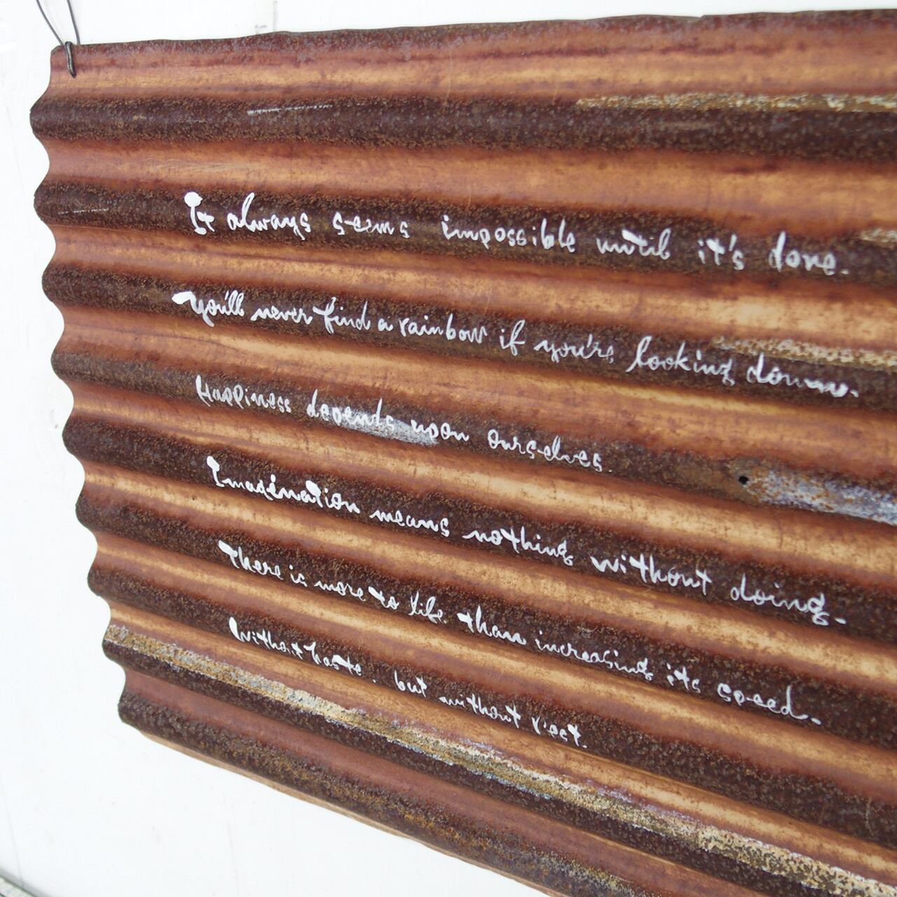 サビサビの波板トタンに文字を入れたシンプルなガーデンサインです♪