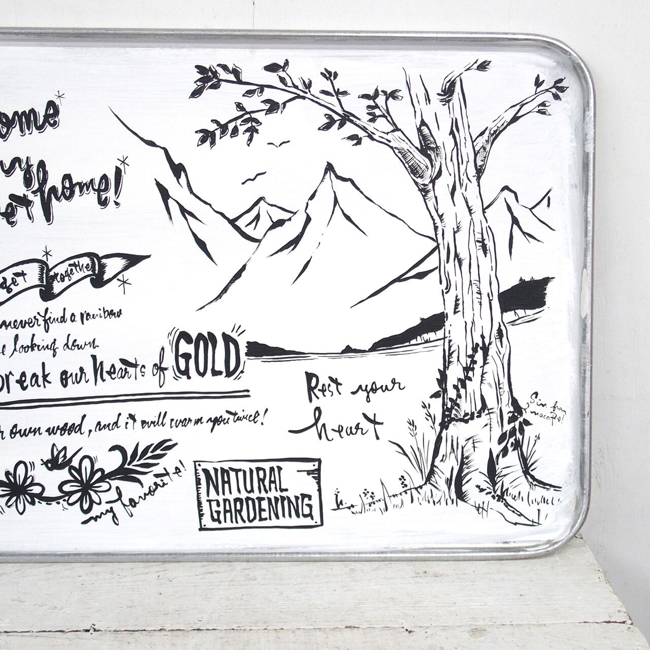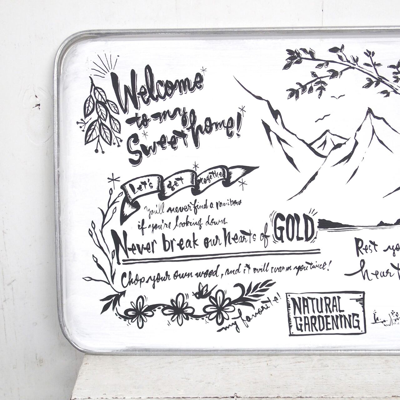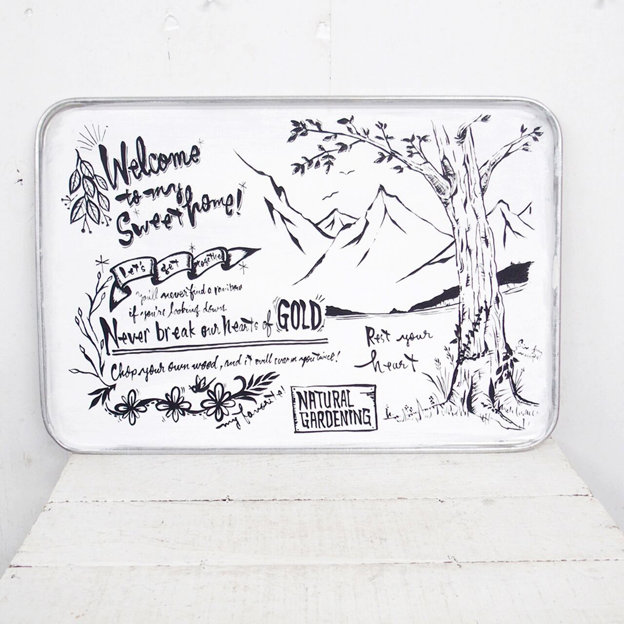 アルミの給食バットの蓋にペイントしたイラストパネルです♪
