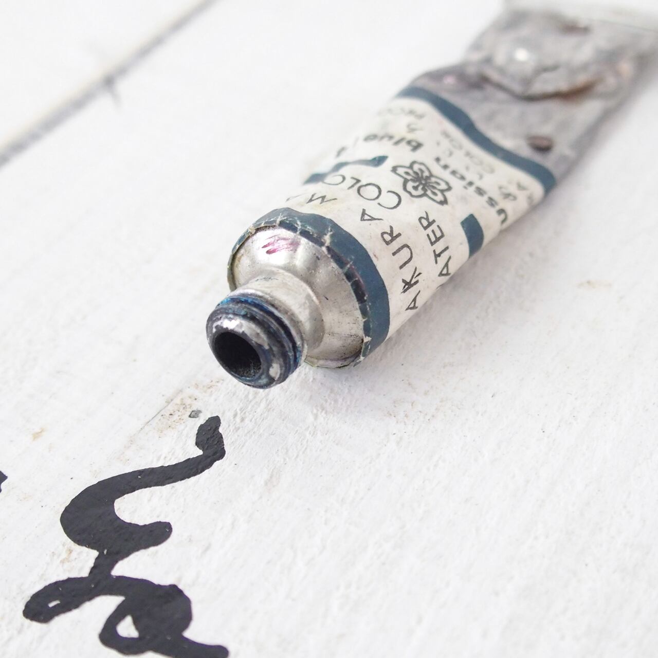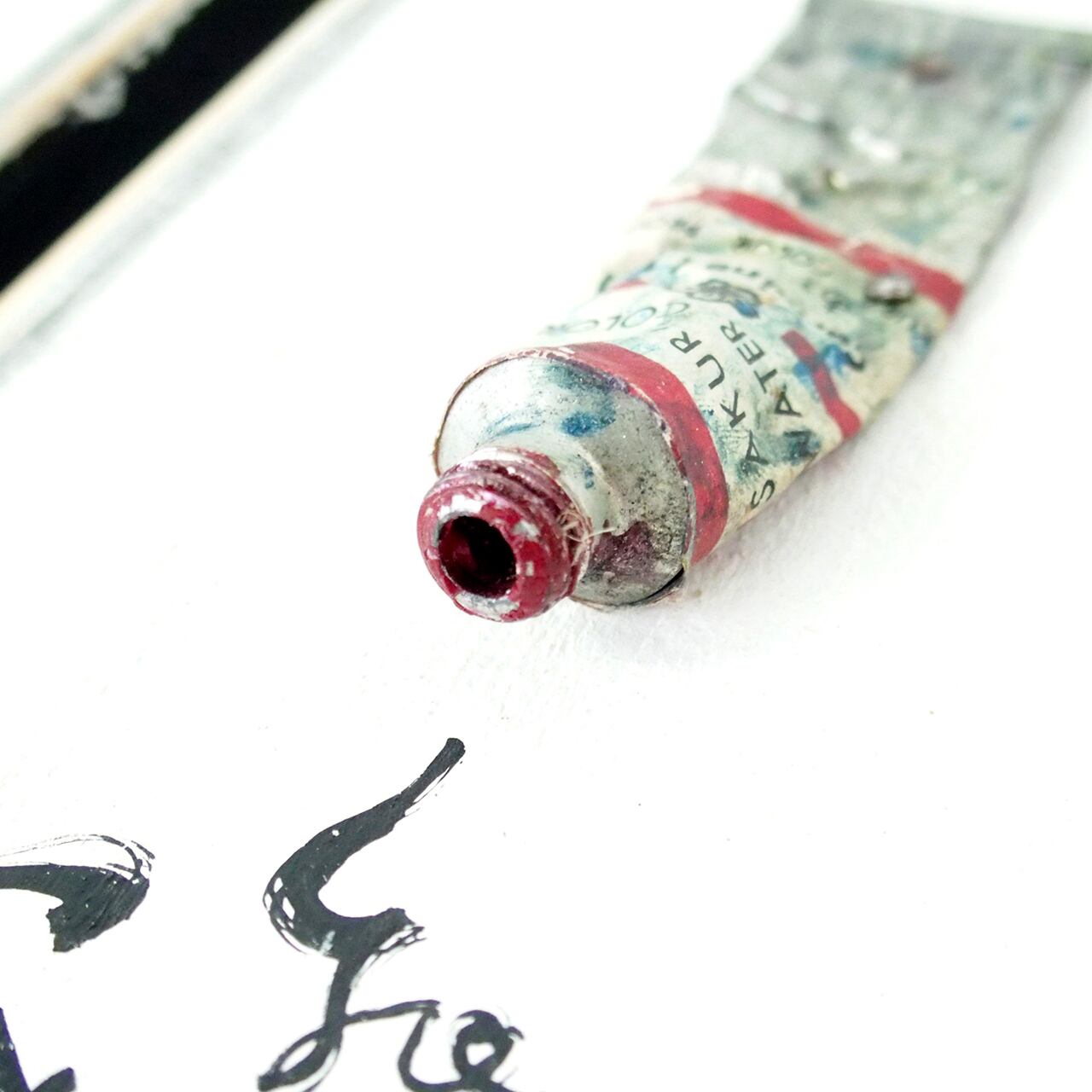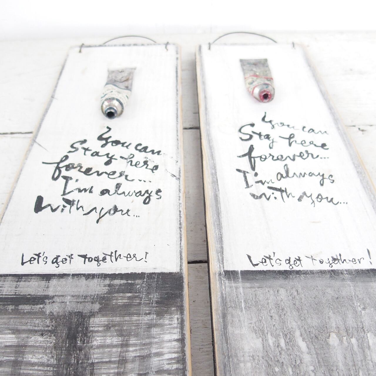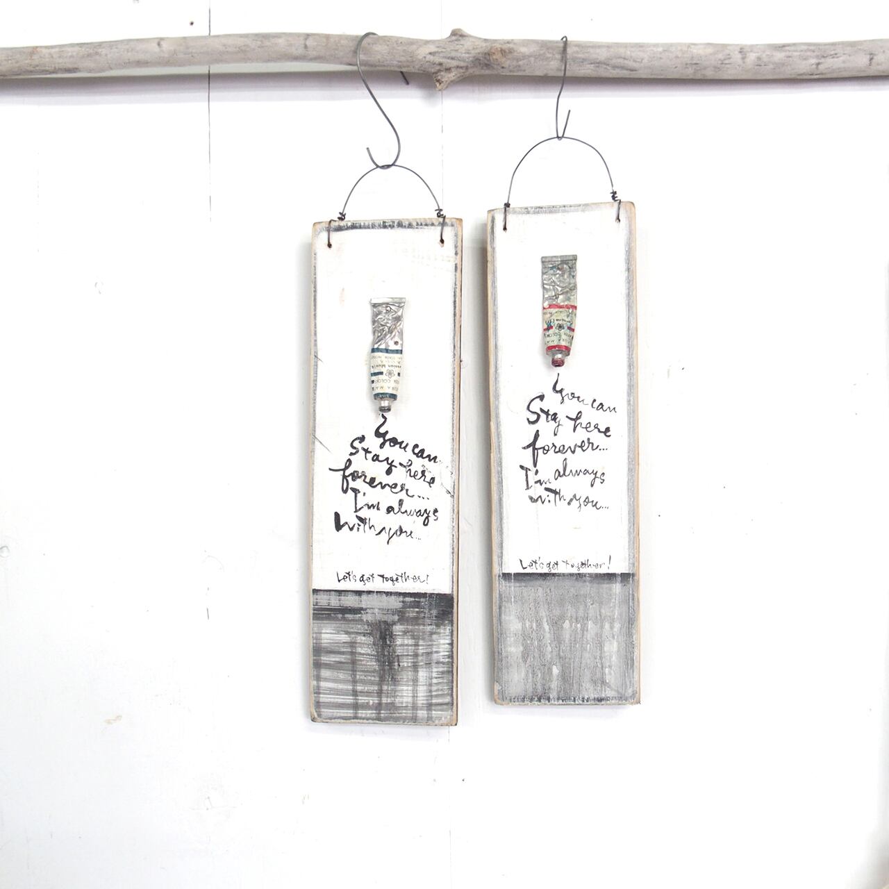 古く固まってしまった絵の具を板に固定して作ったディスプレイ用のボードです♪