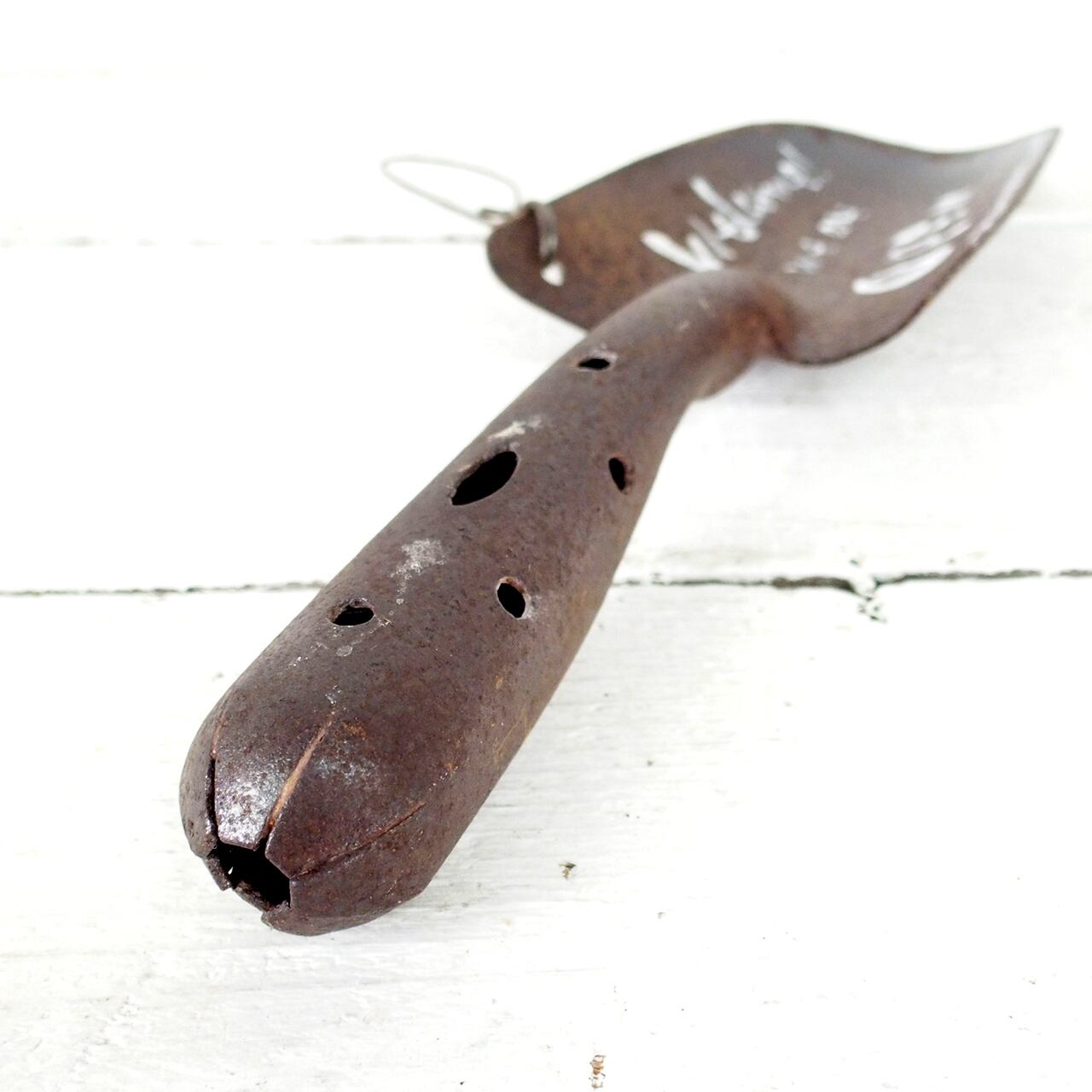 サビサビの移植ごて(小さなスコップ)に文字を入れた